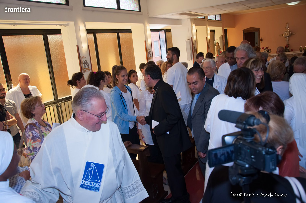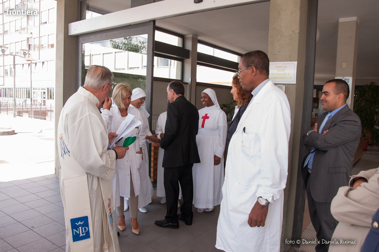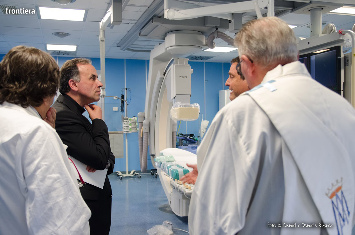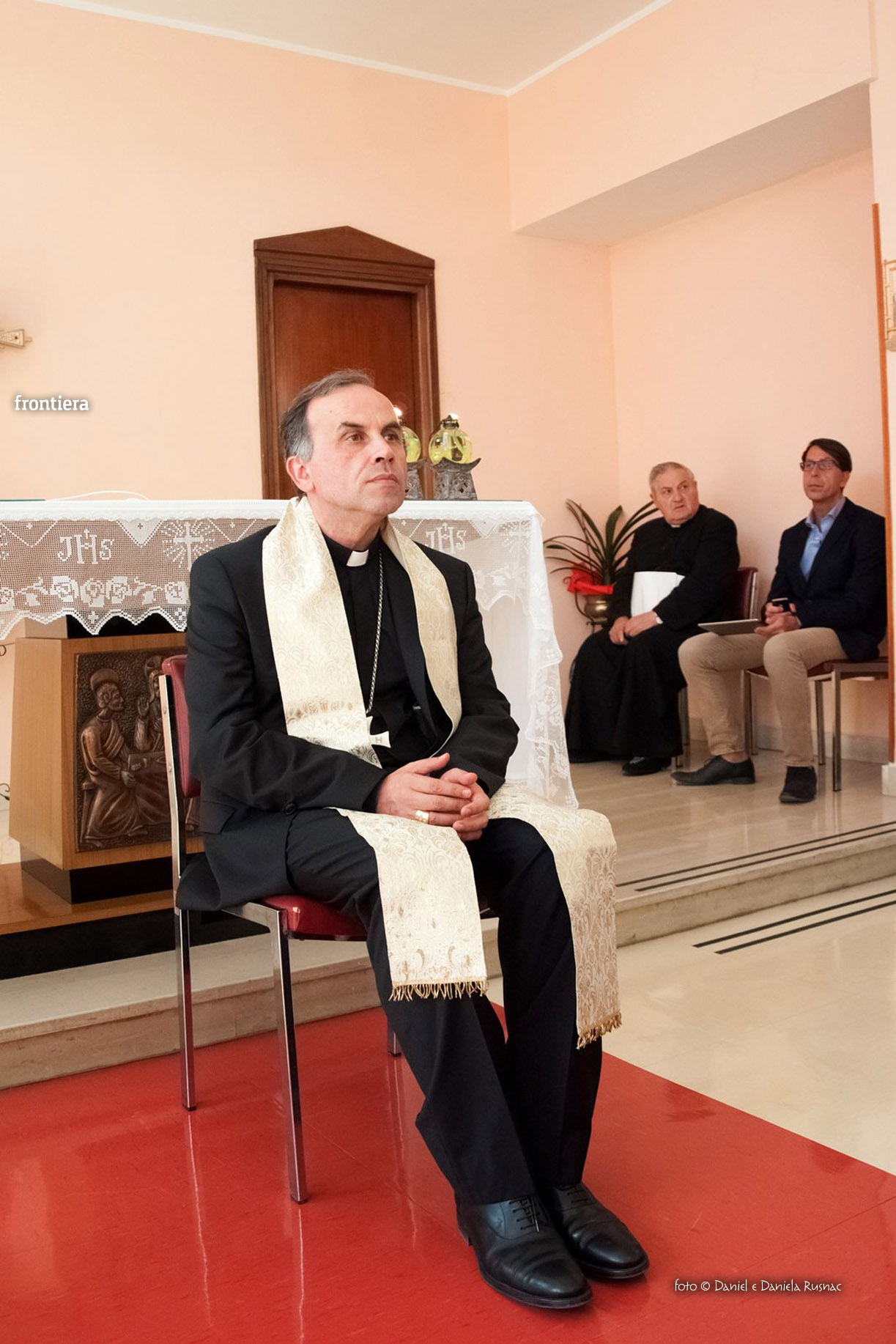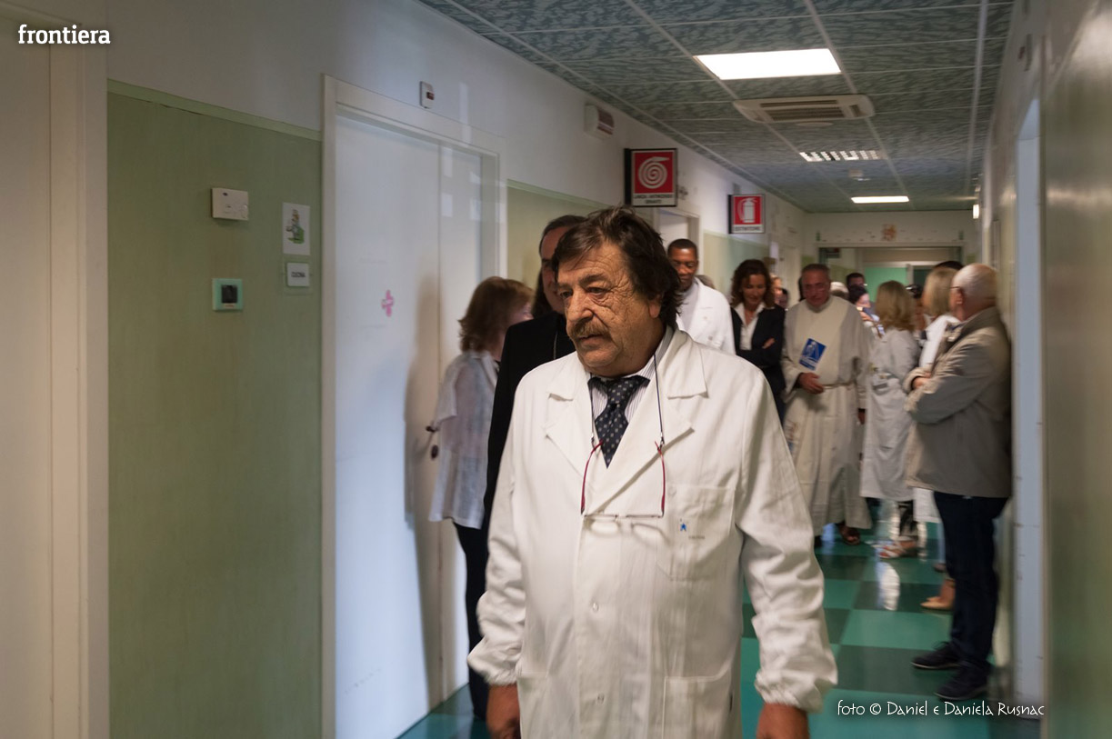 Un momento di preghiera che ha preceduto la visita pastorale ai malati ricoverati al San Camillo de Lellis. Un passaggio nei vari reparti «di indicibile tenerezza» – per usare le parole del diacono Nazzareno Iacopini, responsabile di quella che il vescovo ha chiamato la “Pastorale della Cura” – che ha visto il presule entrare a contatto con le realtà di Emodinamica-Utic, Dialisi, Oncologia, Pediatria, Week Surgery, Ortopedia, Centro trasfusionale e Radioterapia.