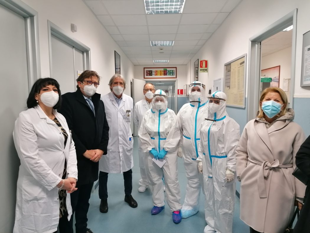 Una visita non solo per i pazienti, ma anche per stare vicino al personale e ringraziare medici e infermieri che ogni giorno affrontano l’emergenza Covid-19.