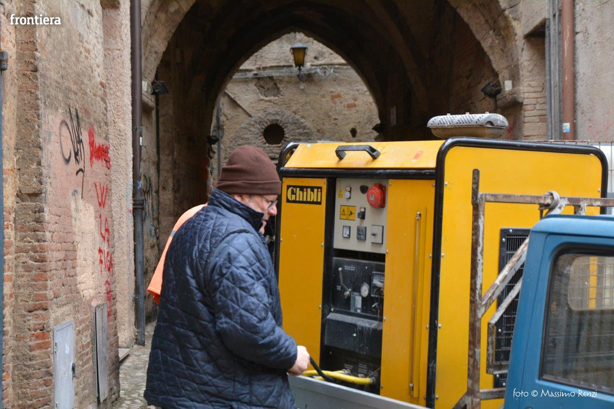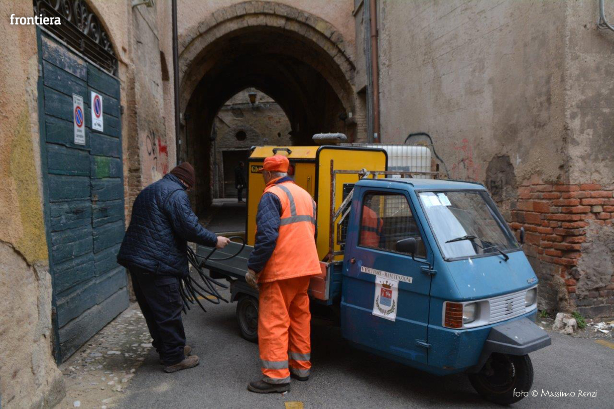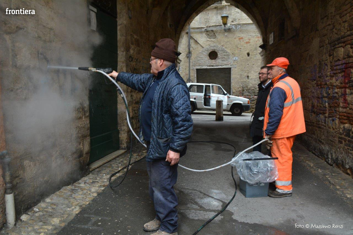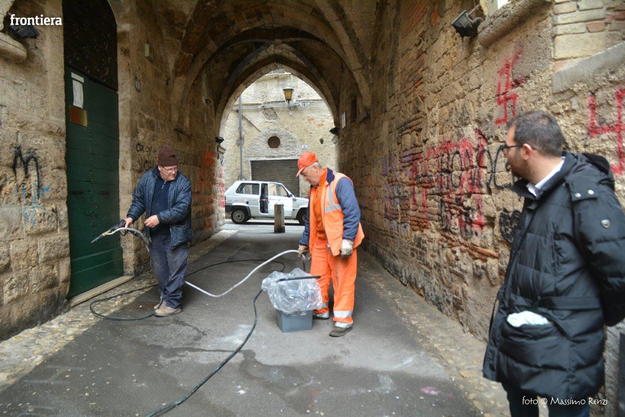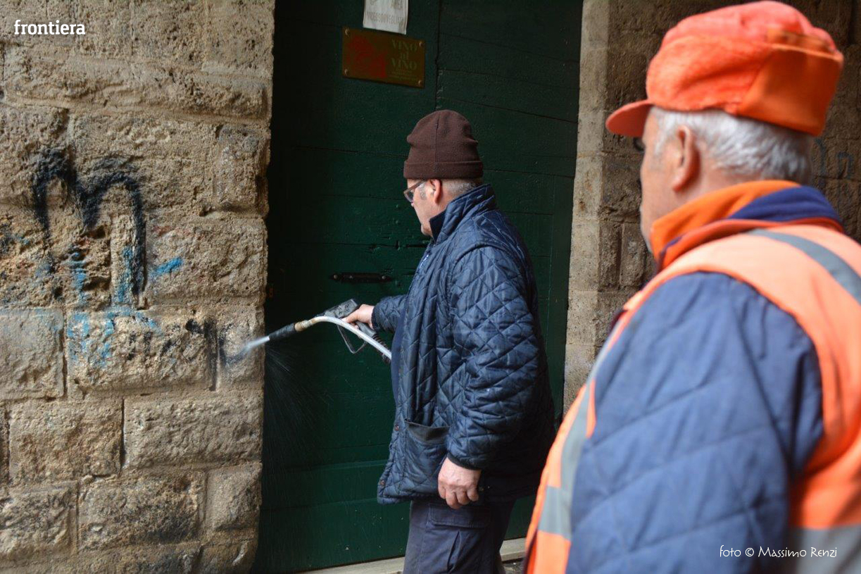 L’assessorato ai lavori pubblici e alle manutenzioni comunica che sono iniziati questa mattina alcuni interventi di bonifica e pulitura dei muri di alcuni edifici storici del centro storico, in particolare sotto l’Arco di Santa Lucia e in via del Porto, imbrattati dai vandali nelle scorse settimane. Gli operai dell’Amministrazione comunale stanno operando anche in altre zone della città e nel pomeriggio gli interventi proseguiranno con l’impiego dei mezzi di ASM Spa.