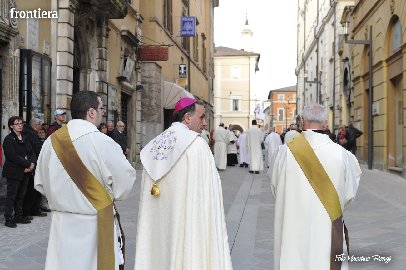 Nel tardo pomeriggio di domenica 3 aprile, seconda di Pasqua, il vescovo Domenico ha presieduto in Cattedrale il pontificale per la festa della Madonna del Popolo. Alla celebrazione eucaristica ha fatto seguito una partecipata processione per le vie del centro storico di Rieti.