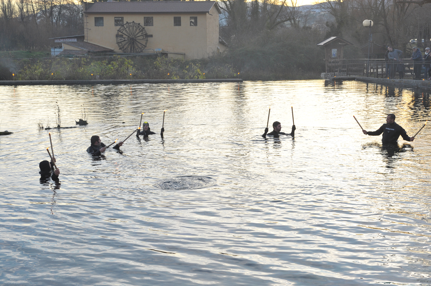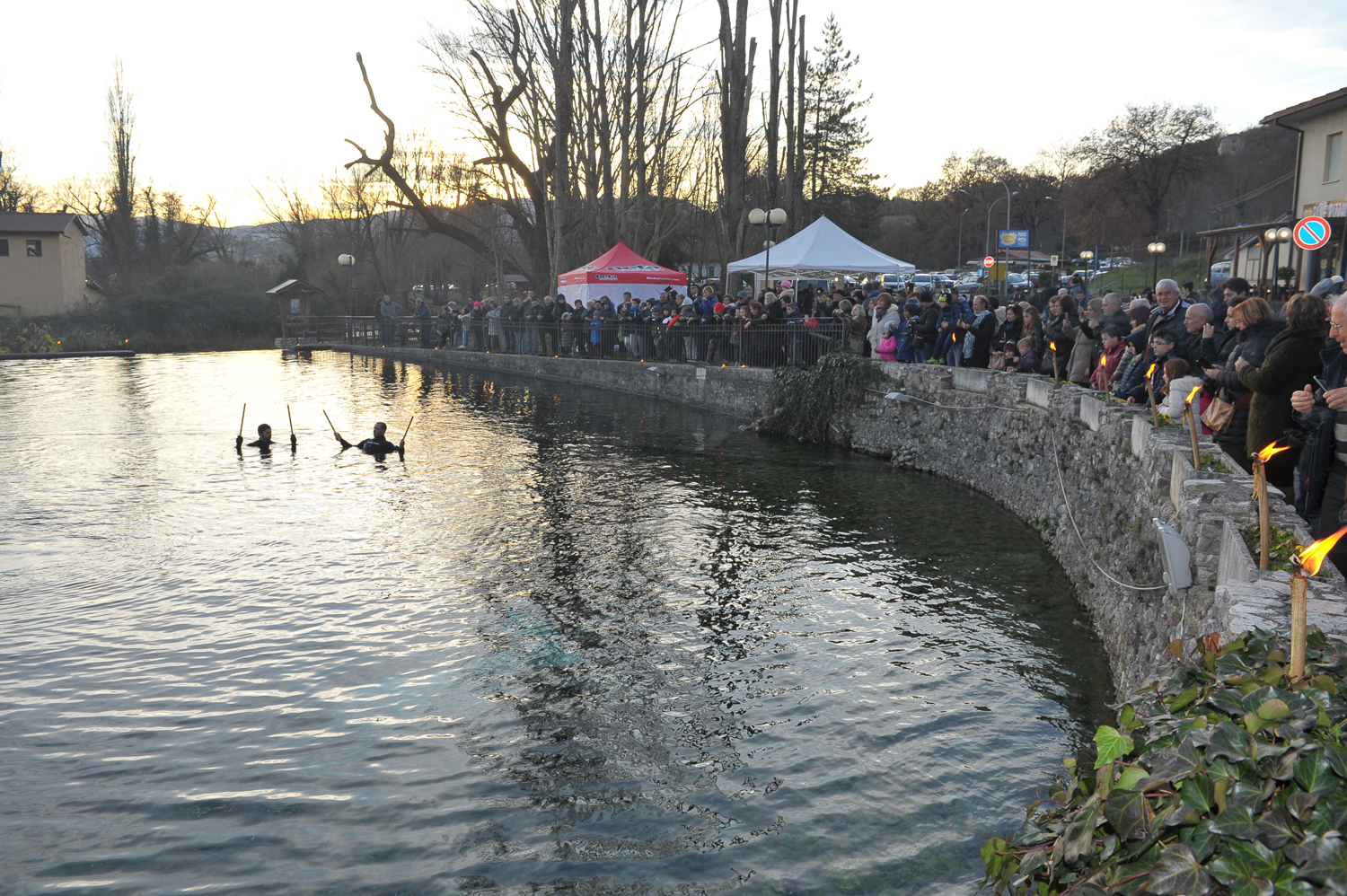 In un sabato pomeriggio assolato a ridosso del Natale, nelle acque limpide della sorgente di Santa Susanna di Rivodutri in cui nuotano eleganti cigni bianchi, è stato inaugurato per il ventiduesimo anno consecutivo il presepe subacqueo. Nata da un’idea del Club Sommozzatori di Rieti, che da sempre ne cura l’allestimento, quest’anno la manifestazione ha assunto un significato particolare, cadendo proprio nel centro della prima edizione del progetto della Valle del Primo Presepe, che ha come primo obiettivo quello di risvegliare la consapevolezza della peculiarità storica e spirituale del primo presepe francescano, interpretato poi nel tempo nelle più varie trasposizioni.