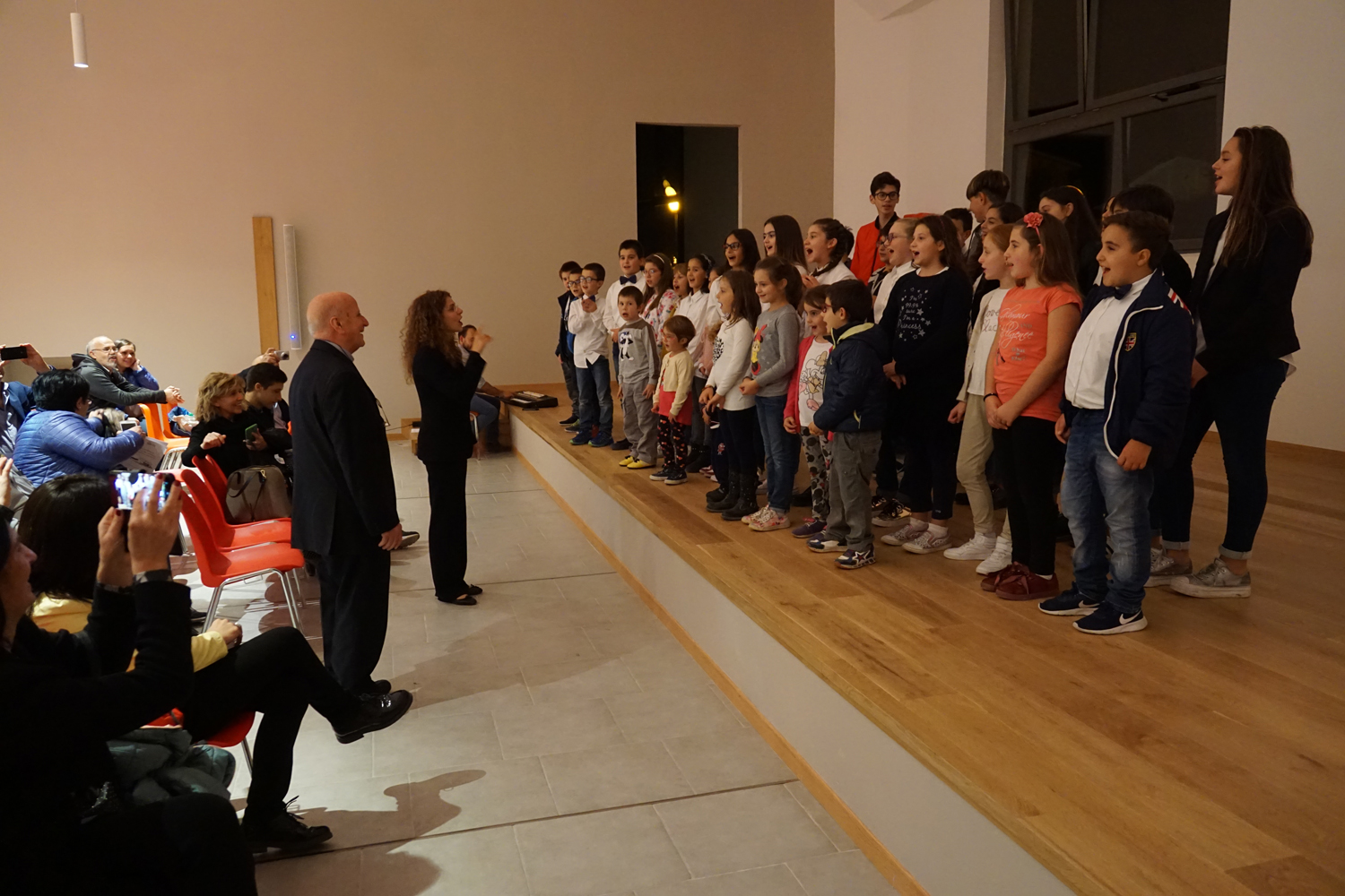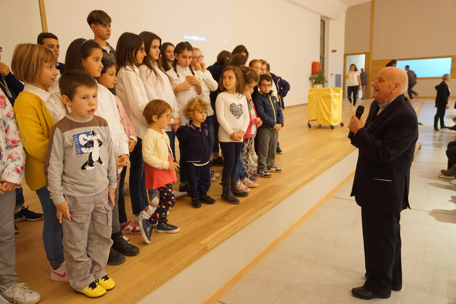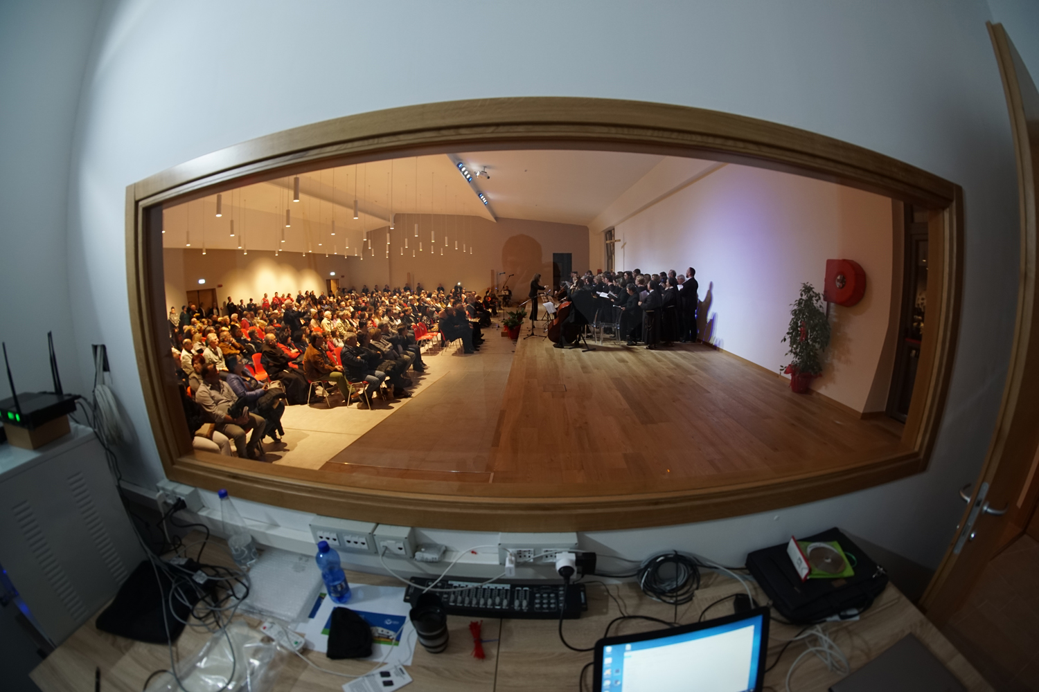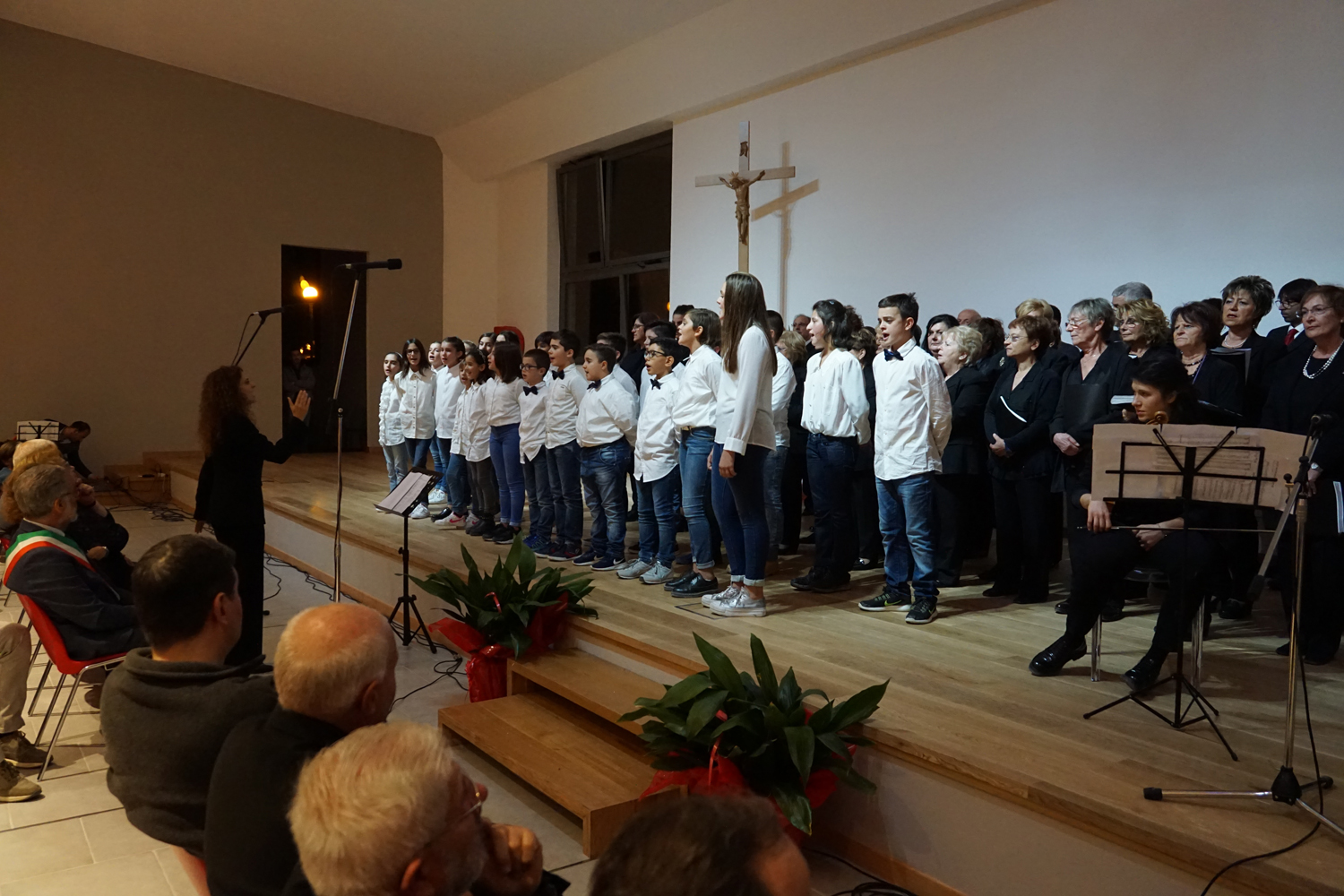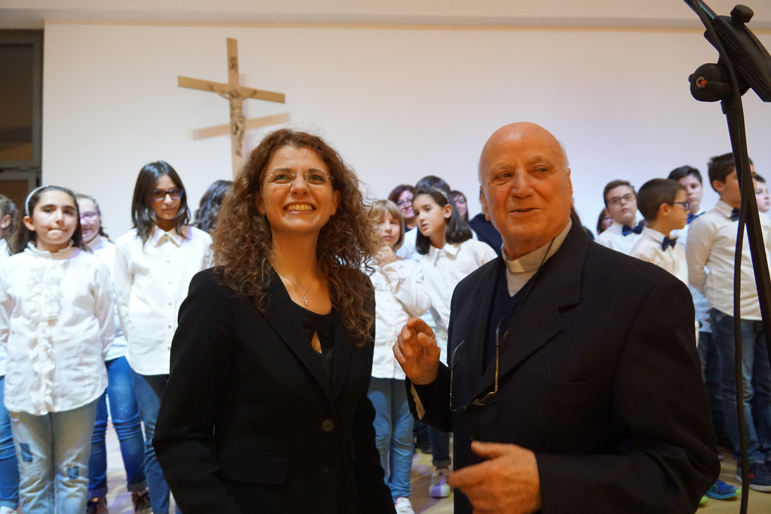 L’ingresso dei convenuti è avvenuto attraverso il bel giardino interno, dal quale prendono luce le aule per il catechismo e le altre attività, disposte su due ali. Un corridoio centrale conduce nel grande salone già sperimentato con i due incontri pastorali diocesani dello scorso settembre e dello scorso anno. Ad accogliere il corteo il canto del coro diocesano, rafforzato da una piccola compagine strumentale di archi e fiati, affidata a giovani e talentuosi musicisti.