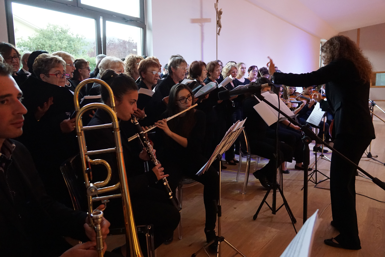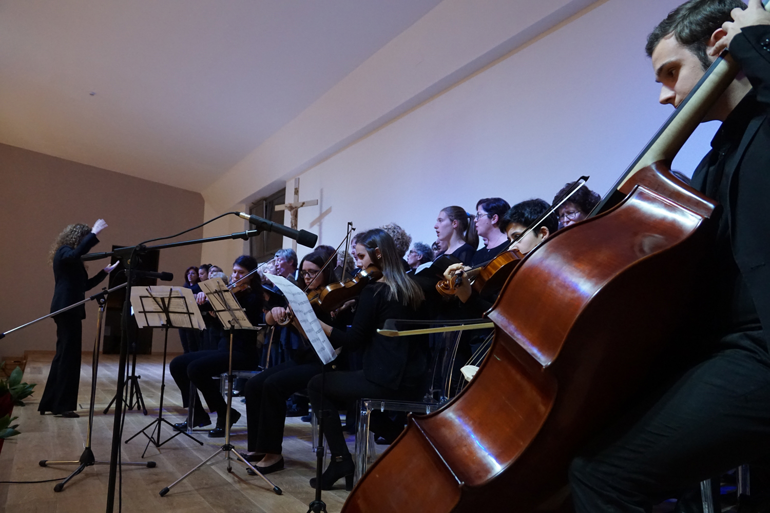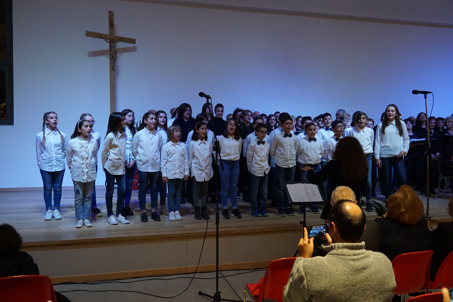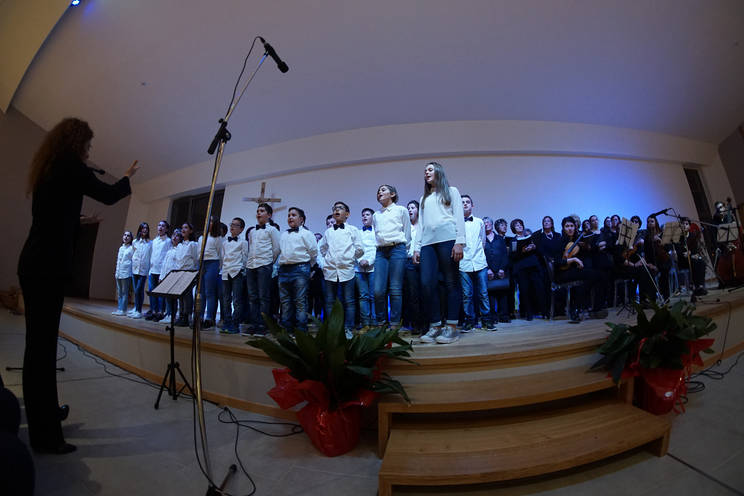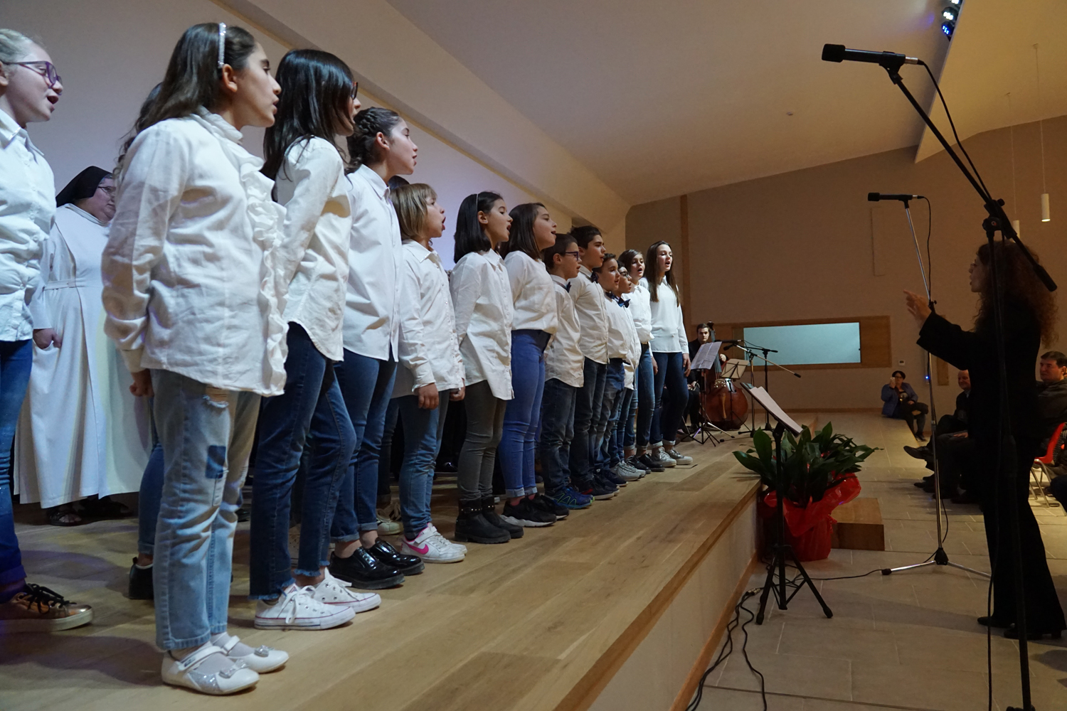 L’ingresso dei convenuti è avvenuto attraverso il bel giardino interno, dal quale prendono luce le aule per il catechismo e le altre attività, disposte su due ali. Un corridoio centrale conduce nel grande salone già sperimentato con i due incontri pastorali diocesani dello scorso settembre e dello scorso anno. Ad accogliere il corteo il canto del coro diocesano, rafforzato da una piccola compagine strumentale di archi e fiati, affidata a giovani e talentuosi musicisti.