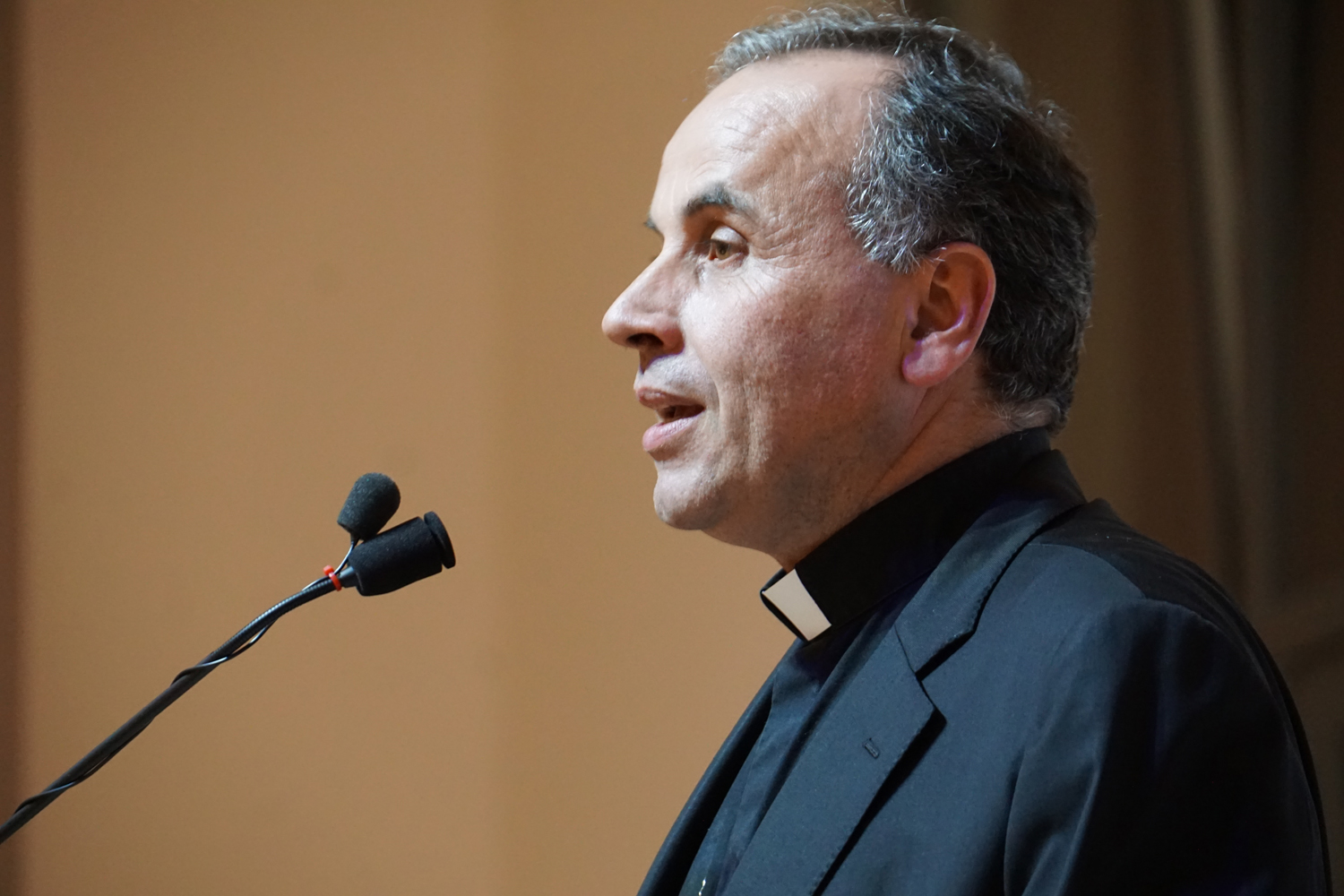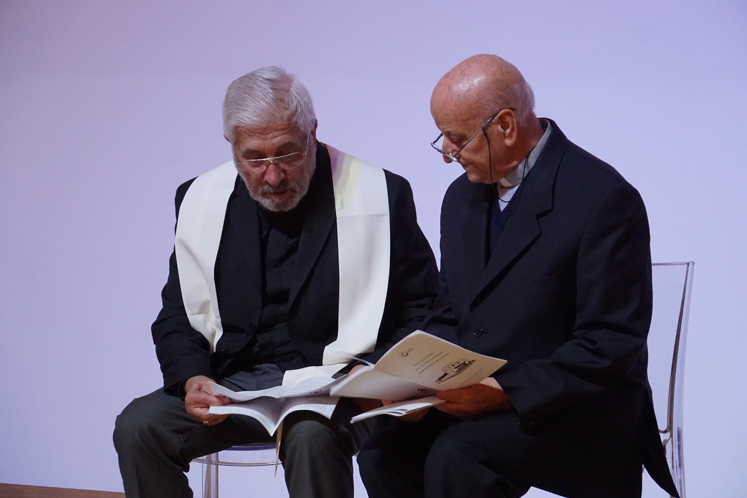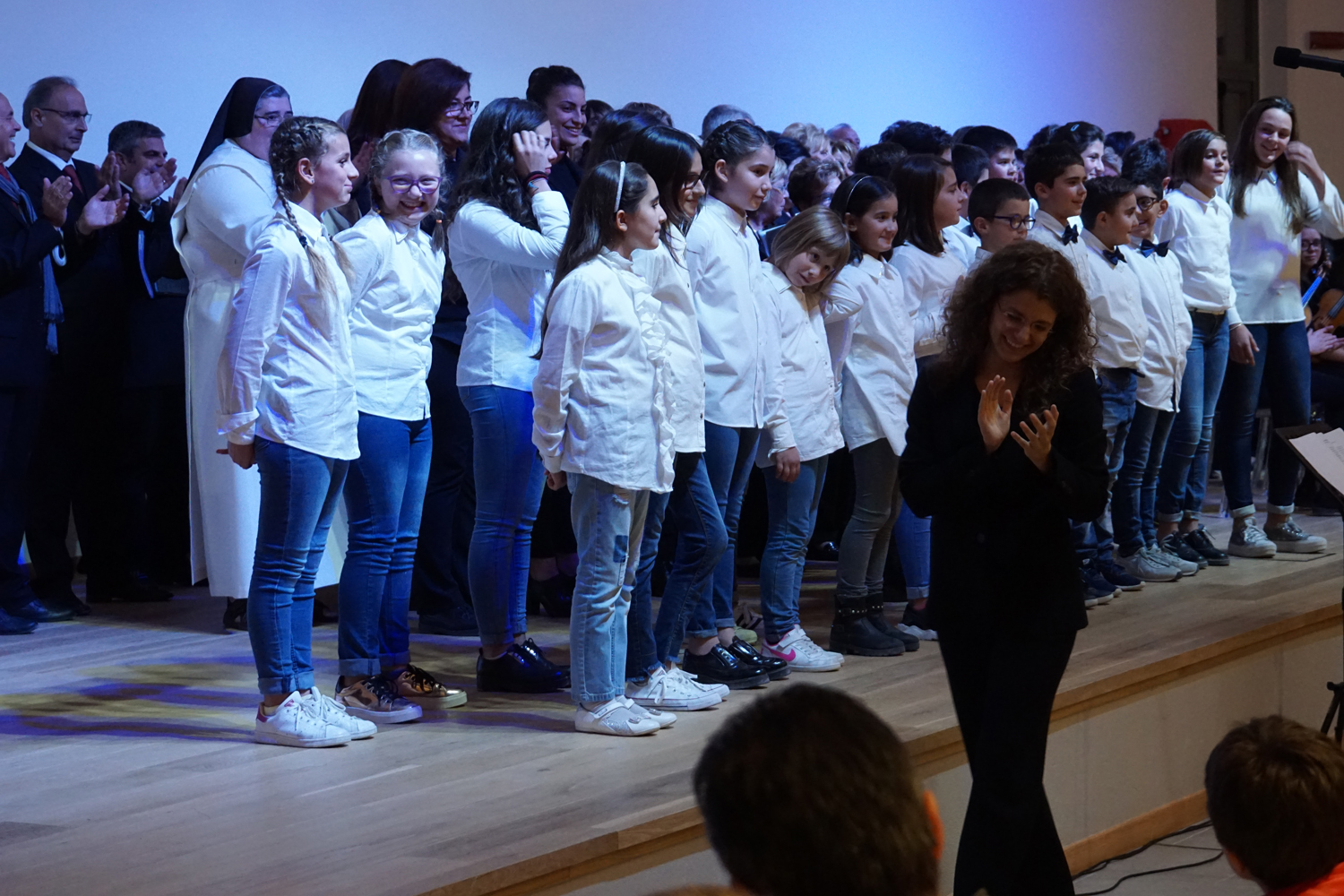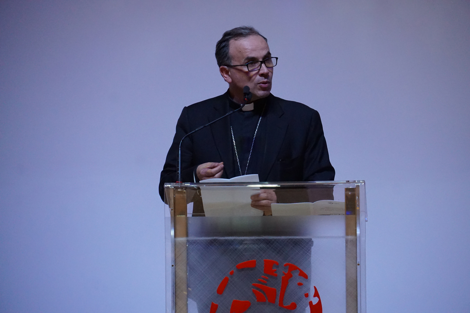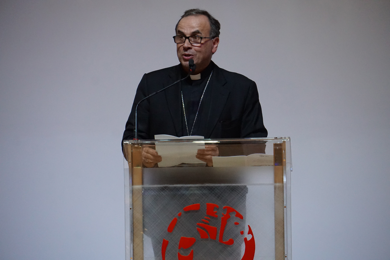L’ingresso dei convenuti è avvenuto attraverso il bel giardino interno, dal quale prendono luce le aule per il catechismo e le altre attività, disposte su due ali. Un corridoio centrale conduce nel grande salone già sperimentato con i due incontri pastorali diocesani dello scorso settembre e dello scorso anno. Ad accogliere il corteo il canto del coro diocesano, rafforzato da una piccola compagine strumentale di archi e fiati, affidata a giovani e talentuosi musicisti.