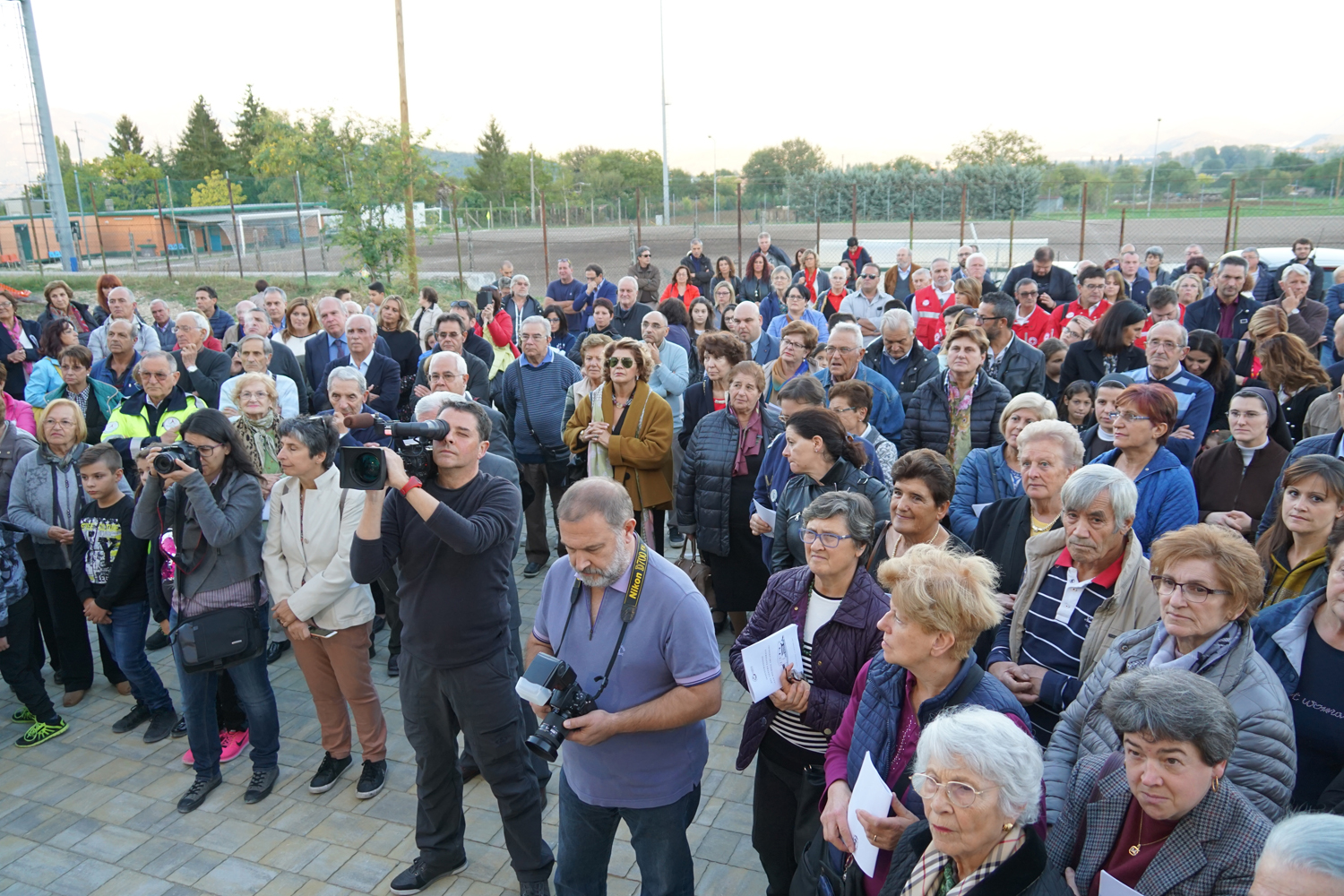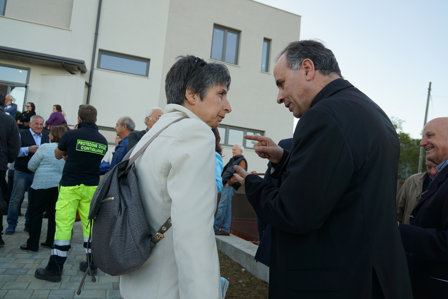 Concluso il momento liturgico, i temi della storia e delle prospettive del Centro pastorale sono tornati negli interventi di approfondimento svolti da mons Ercole e dall’architetto Paolo Lancia, progettista del centro, conclusi dal discorso di mons Pompili, che ha preso inizio dalla posizione “geografica” dell’edificio, collocato tra una casa di riposo e il campo sportivo.