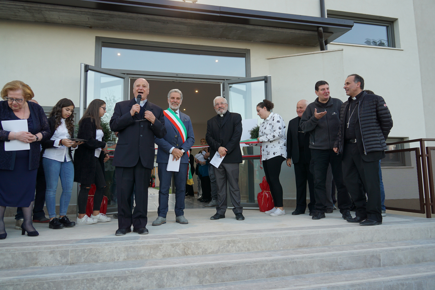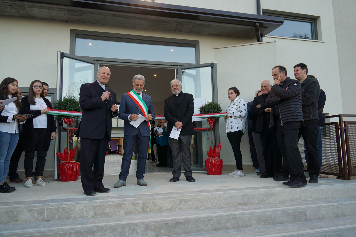 Un lungo percorso, in cui non sono mancati difficoltà e ostacoli, sfiorato nel suo breve discorso di accoglienza dalla signora Simonetta Di Pietro, che ha parlato a nome della comunità parrocchiale, e subito ripreso in chiave amministrativa dal Primo cittadino, che poco prima di attraversare la soglia ha confessato l’orgoglio di avere la struttura nel proprio comune.