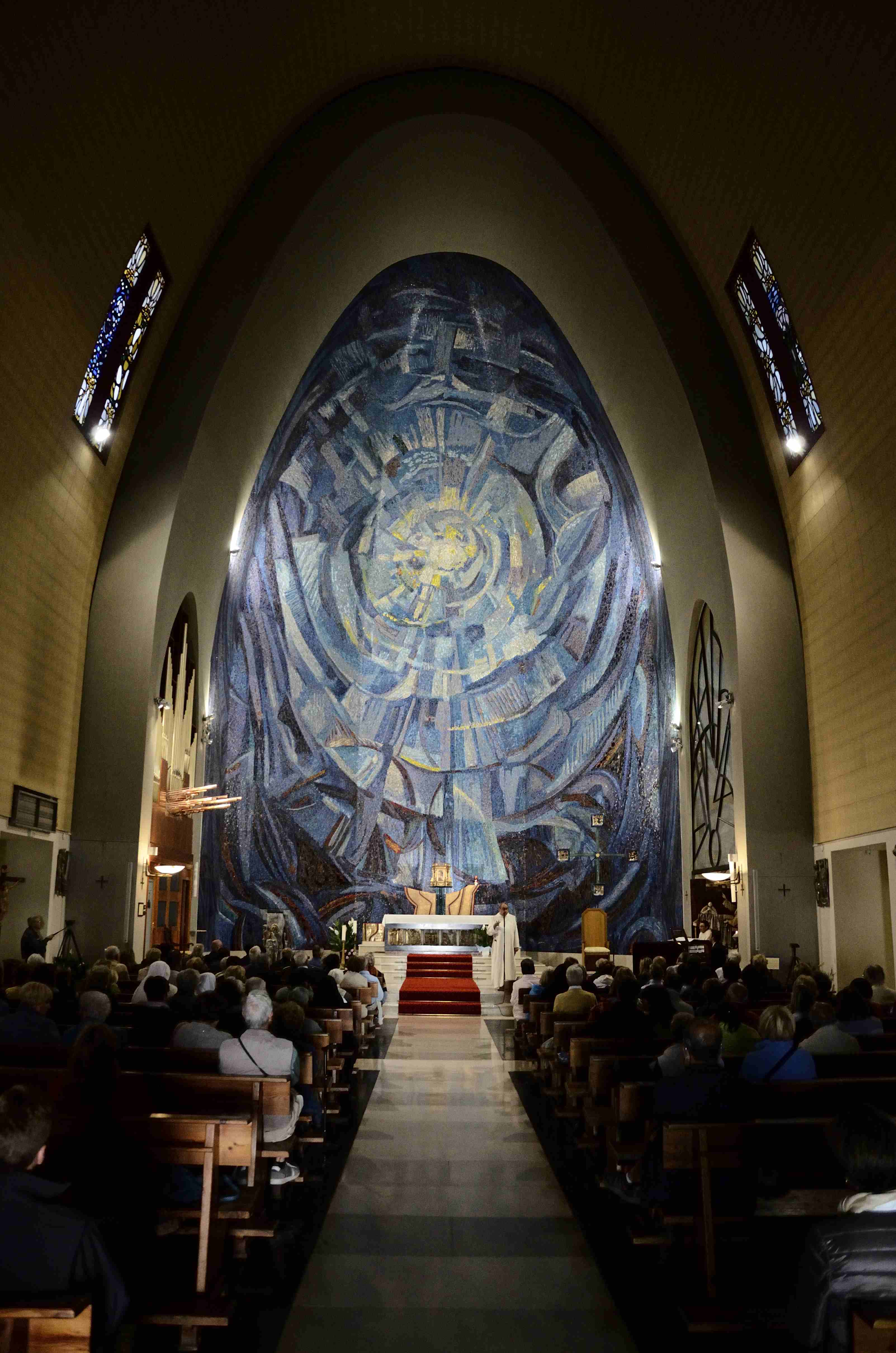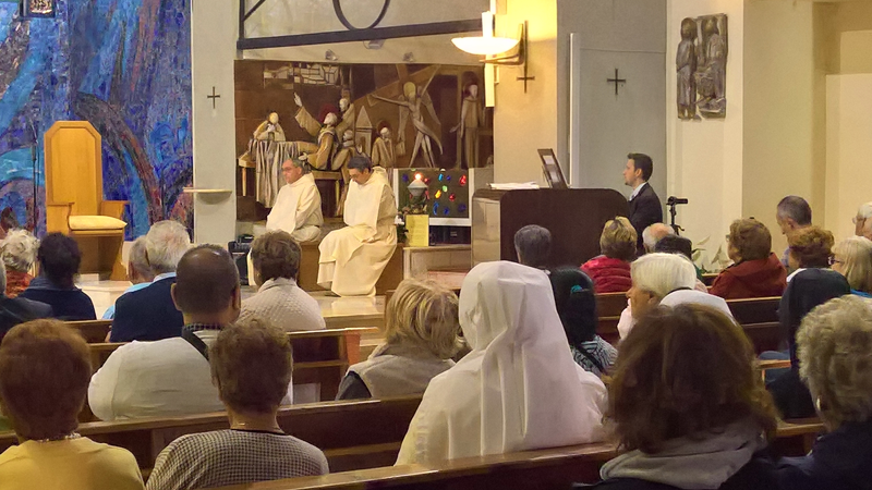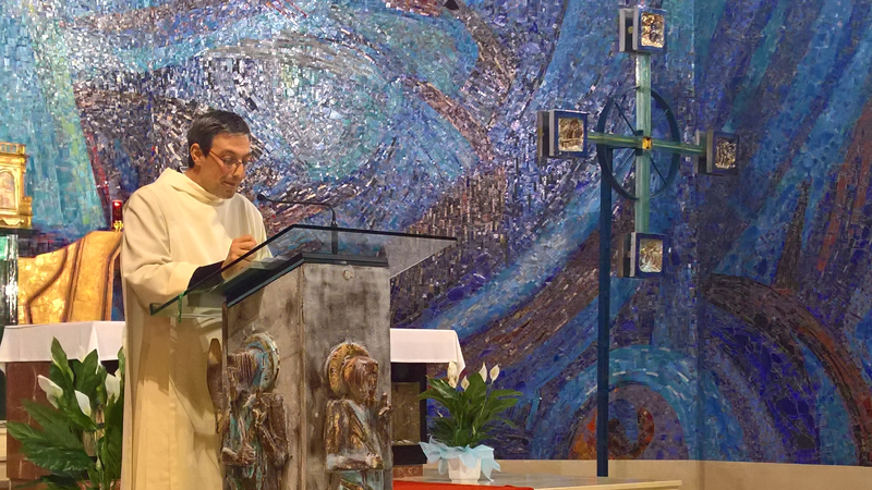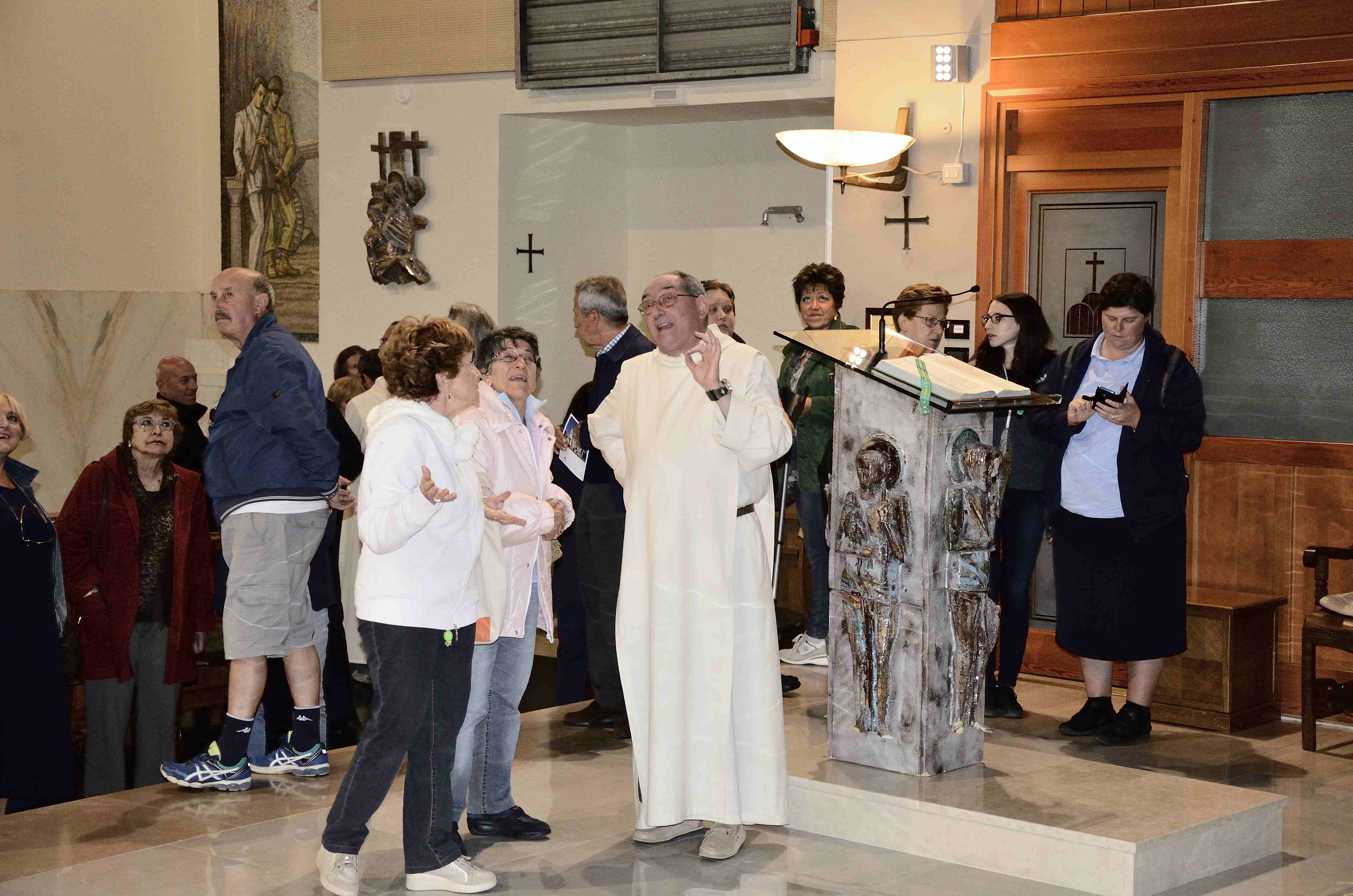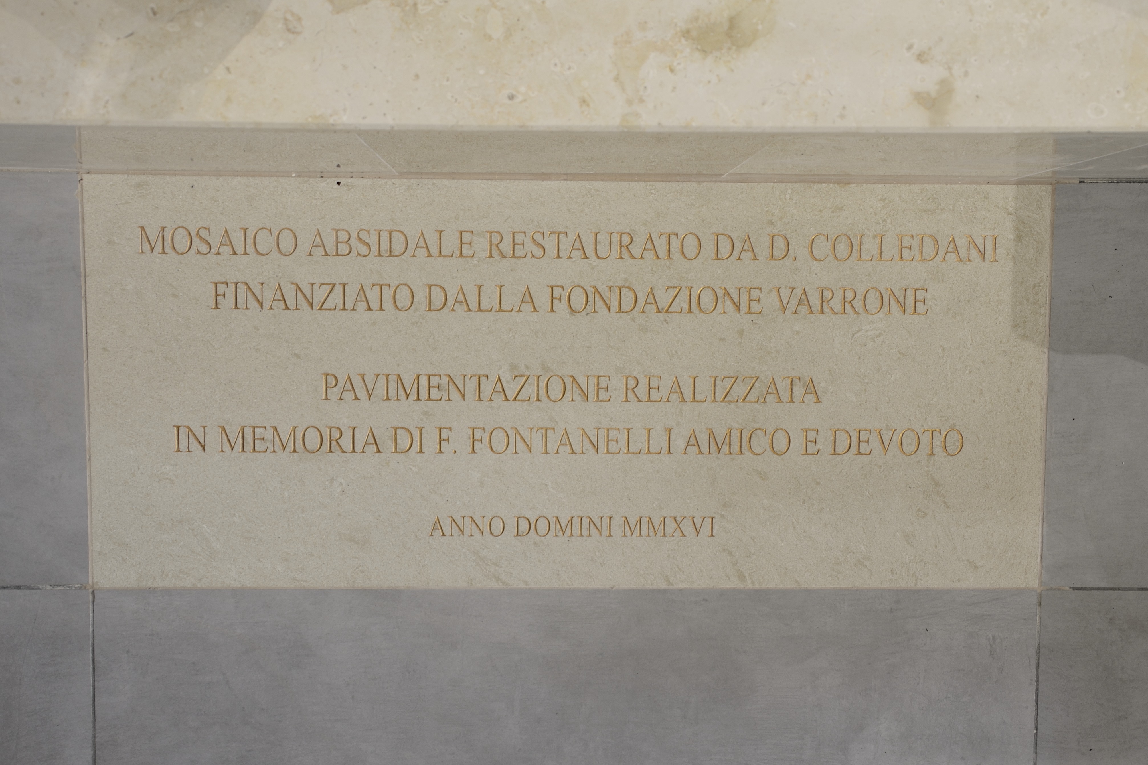 Il pomeriggio che ha raccolto nella chiesa di San Francesco un’attenta assemblea ha permesso ai presenti di godere le meditazioni di padre Mariano riguardo la genesi, i significati, la bellezza del mosaico, ripercorrendo il lavoro di restauro che ha poi lasciato la spiacevole sorpresa di trovare il pavimento del presbiterio, una volta smontato l’imponente ponteggio necessario per i lavori, completamente rovinato. Occasione colta per provvedere a una nuova pavimentazione, utilizzando una materiale innovativo che consente di ammirare meglio ila lucentezza che i riflessi del mosaico offrono al visitatore del maestoso templum pacis. Con la nuova pavimentazione si è provveduto anche alla sistemazione dell’intera area presbiterale, eliminando la vecchia sede (inutilizzata in quanto troppo arretrata) e collocando in modo definitivo la nuova sede su apposito piedistallo marmoreo, oltre a restaurare l’artistico ambone decorato con i bassorilievi raffiguranti i quattro evangelisti sistemandolo anch’esso nella definitiva posizione.