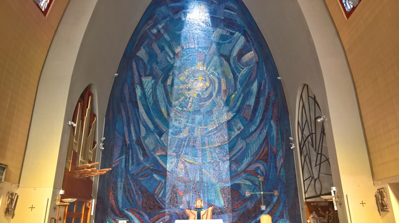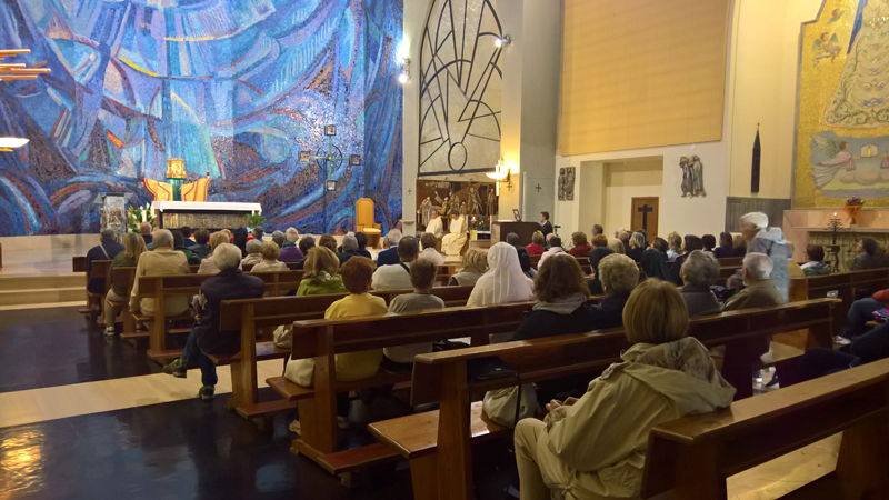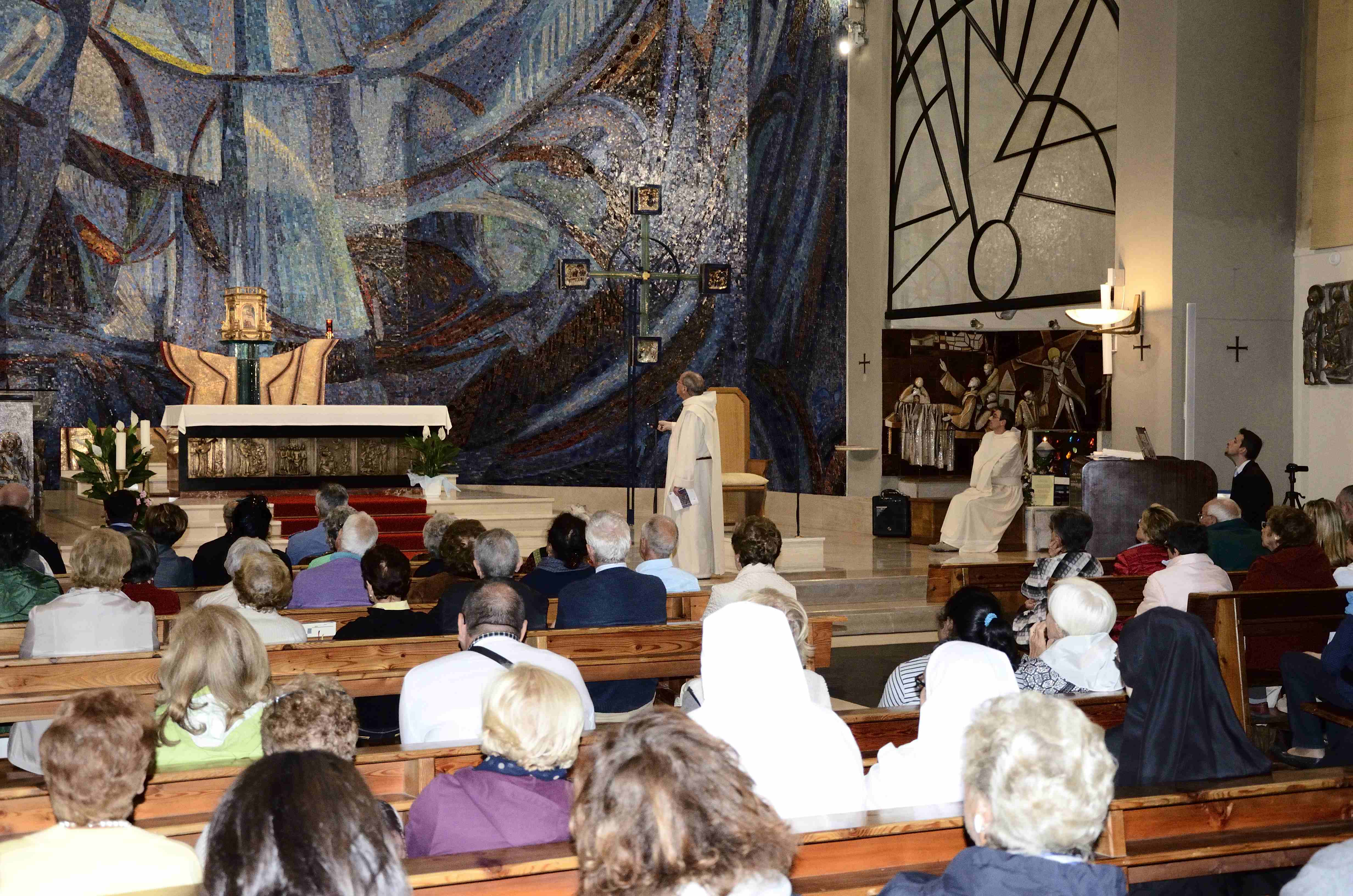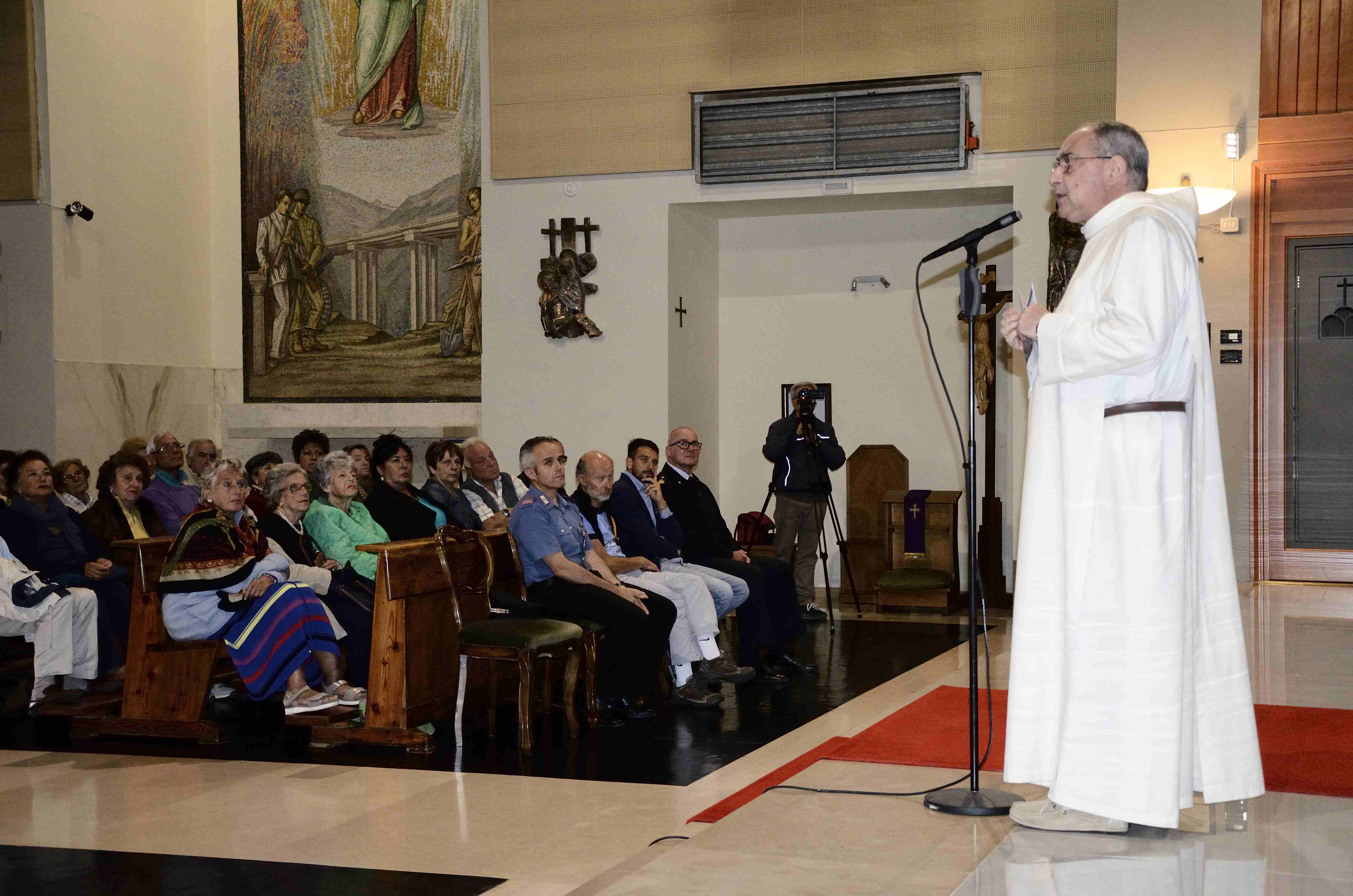 È con quello stile poetico e intenso che gli è congeniale che padre Mariano Pappalardo inizia a raccontare di quelle tessere dell’immensa opera che impreziosisce la parete di fondo del tempio terminillese dedicato al Patrono d’Italia. Con queste parole inizia “Il mosaico absidale tra sogno e realtà”, con cui il superiore della Fraternità monastica della Trasfigurazione offre un appassionato incipit all’opuscoletto stampato dalla parrocchia terminillese in occasione della inaugurazione del restauro dell’opera che tempo e umidità avevano danneggiato. Lo scritto a firma di padre Mariano è stato letto dal confratello padre Luca Scolari in apertura della cerimonia con cui, nel pomeriggio del 12 agosto, si è voluto salutare il ritorno del mosaico all’iniziativa splendore, realizzato grazie al contributo della Fondazione Varrone.