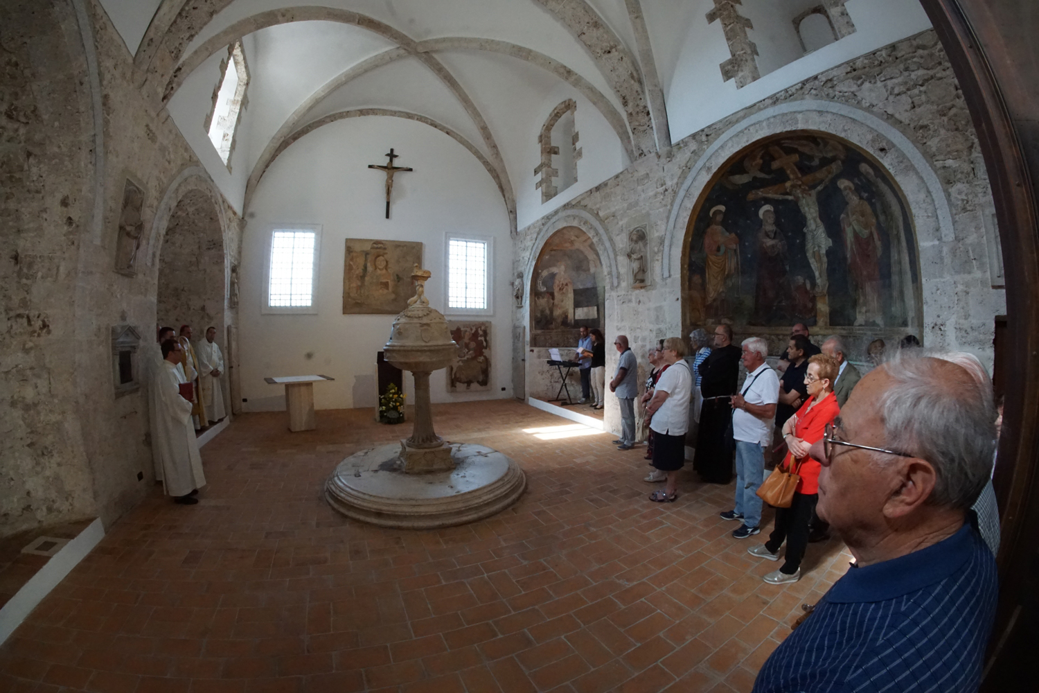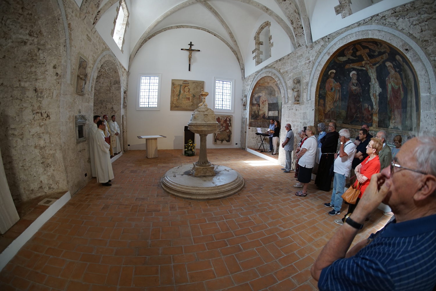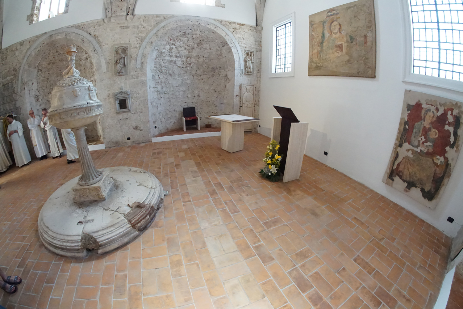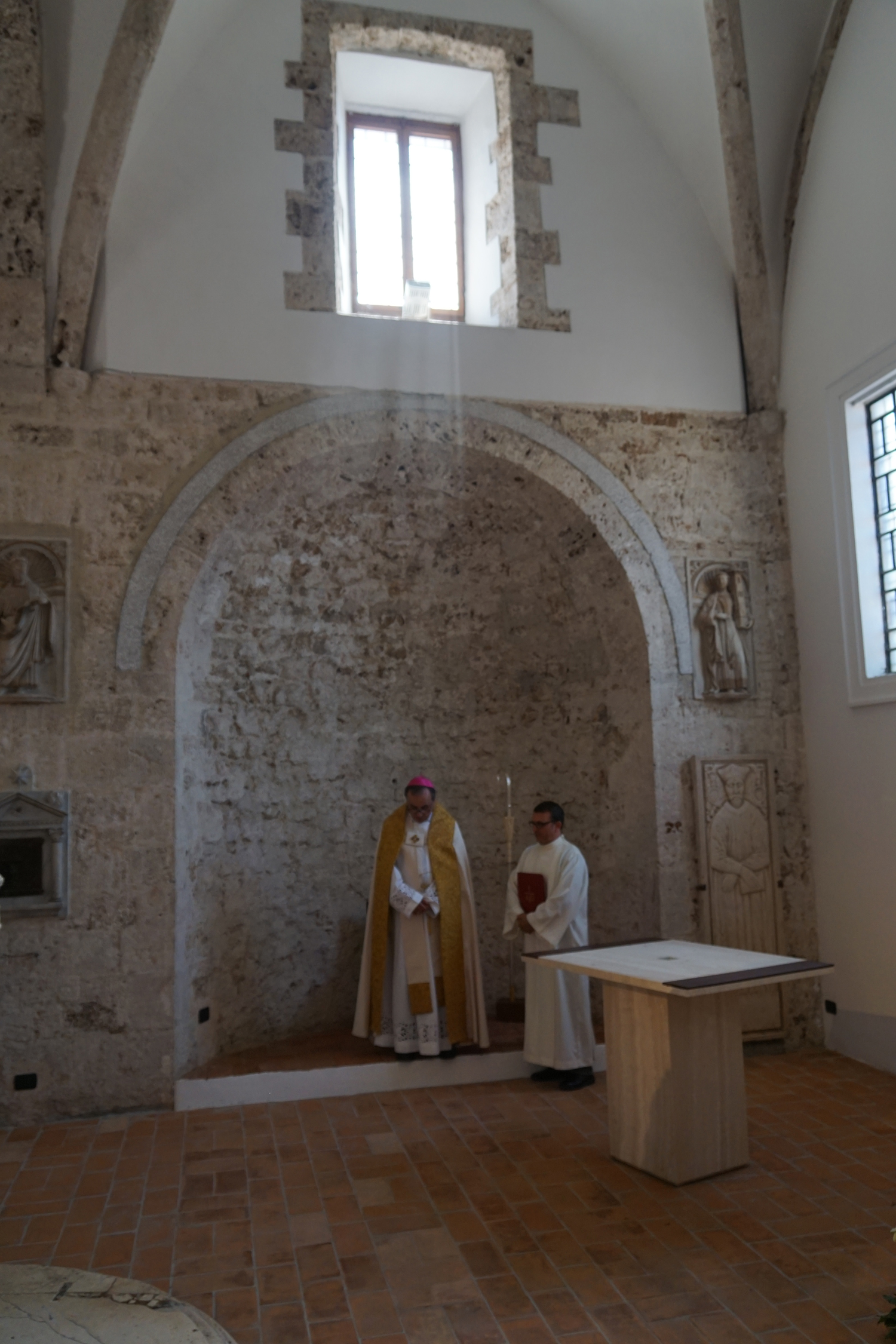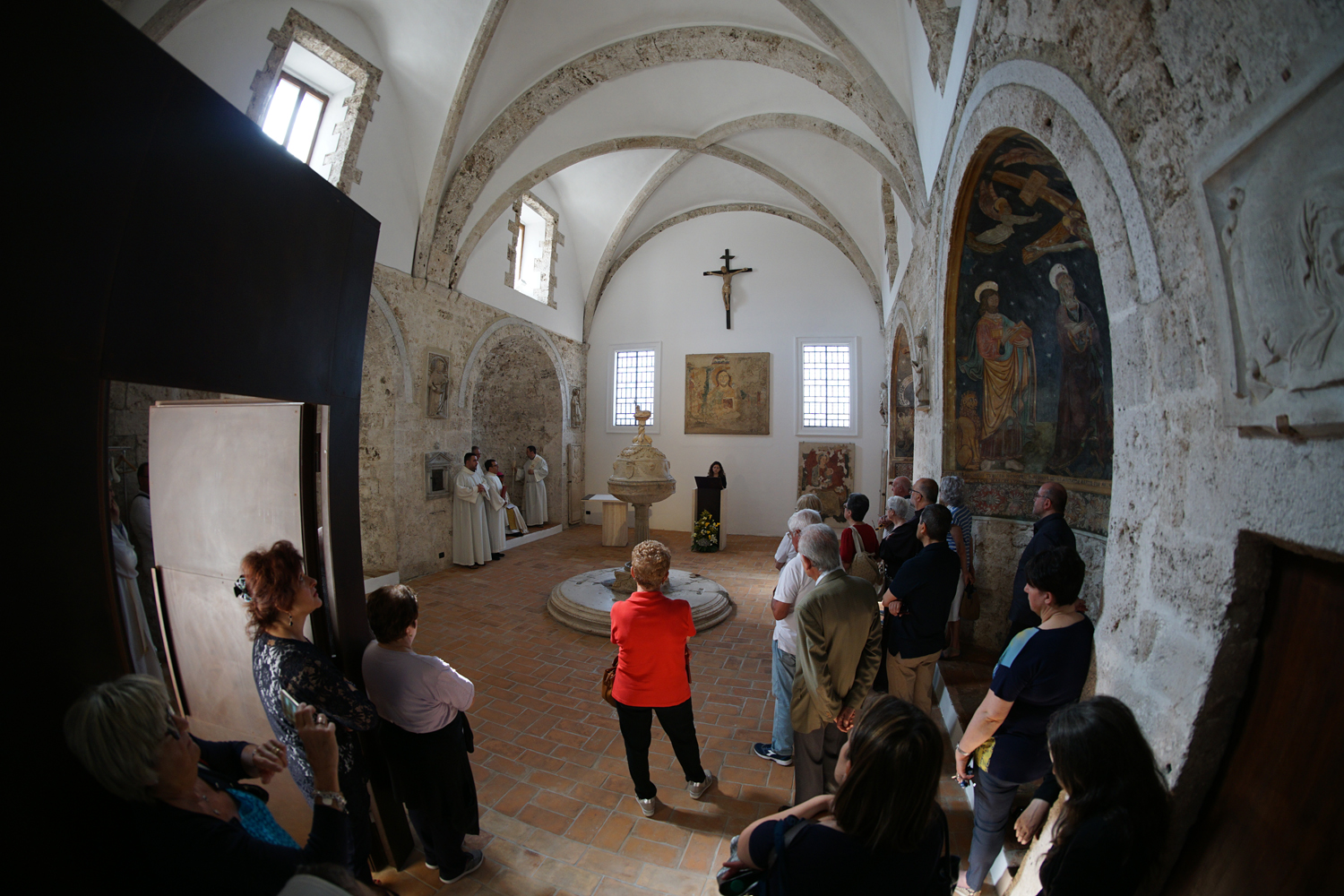 La messa della solennità è stata poi presieduta dal parroco di Santa Maria in Cattedrale, don Paolo Maria Blasetti, ma al Battista anche don Domenico non ha mancato di volgere per qualche istante il pensiero: «Il Precursore – ha detto il vescovo – è il portico tra la prima e la nuova Alleanza. La sua figura vigorosa e disinteressata ci aiuti a ritrovare due qualità oggi necessarie per la Chiesa: la serietà di chi sa che Dio va cercato con tutto noi stessi e insieme il disinteresse che ci porta a fare un passo indietro quando si tratta di difendere gli interessi della vita che Dio ci ha donato». E ha poi concluso con un invito a emozionarsi, forse a sua volta impressionato dall’armonia essenziale del luogo nel quale parlava: «“Verrà un giorno in cui gli uomini non potranno pronunciare il nome di Gesù senza piangere”, ha scritto Georges Bernanos. Preghiamo perché questo spazio che torna alla luce sia per noi l’ambiente in cui ritrovare questa emozione che soltanto può sostenerci nel nostro cammino”».