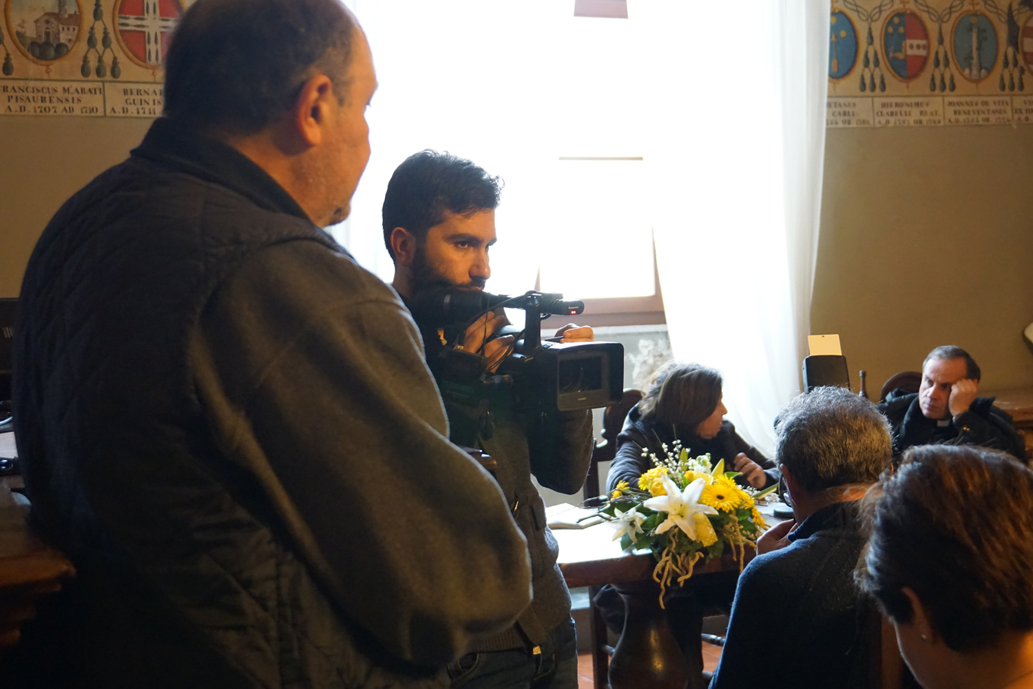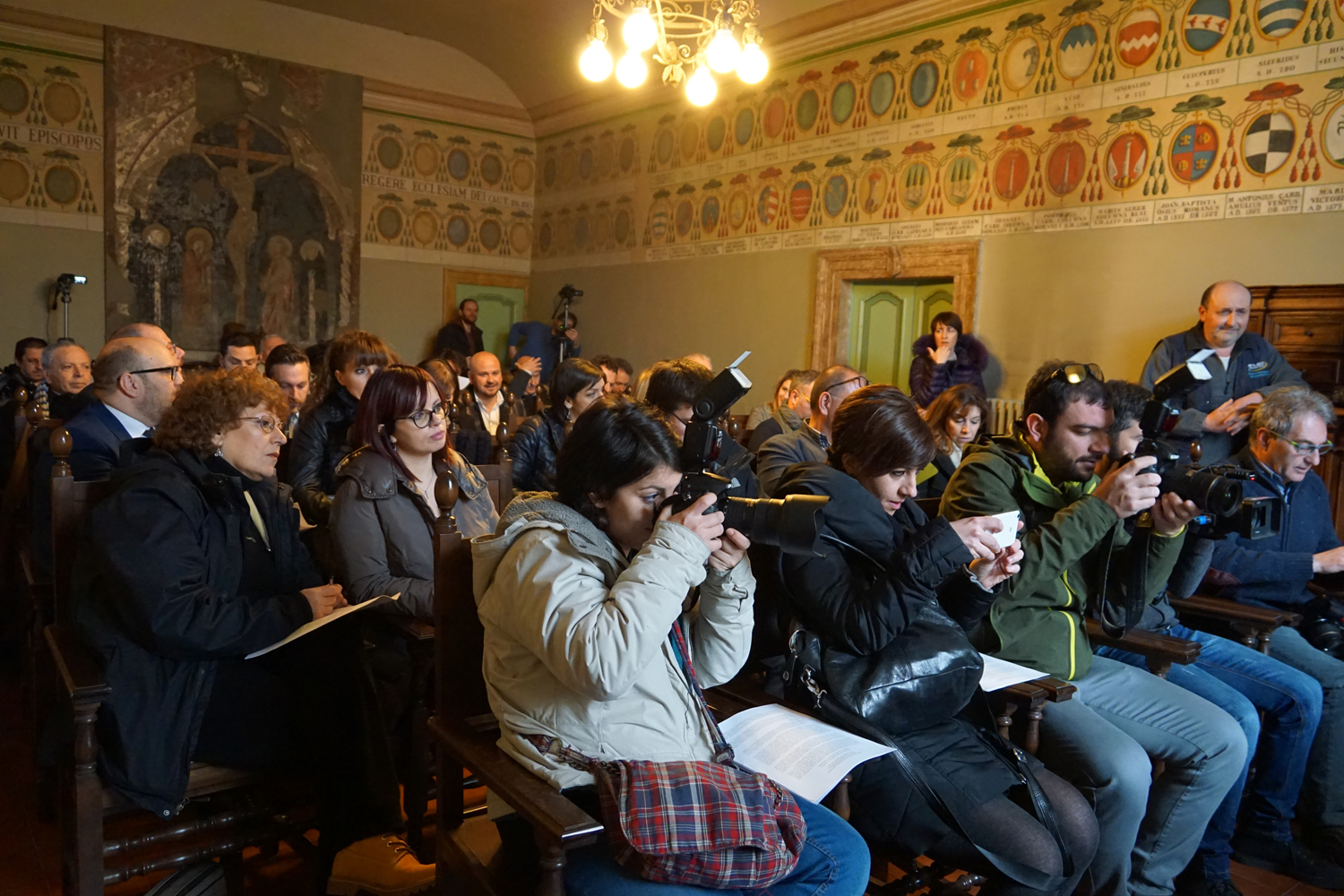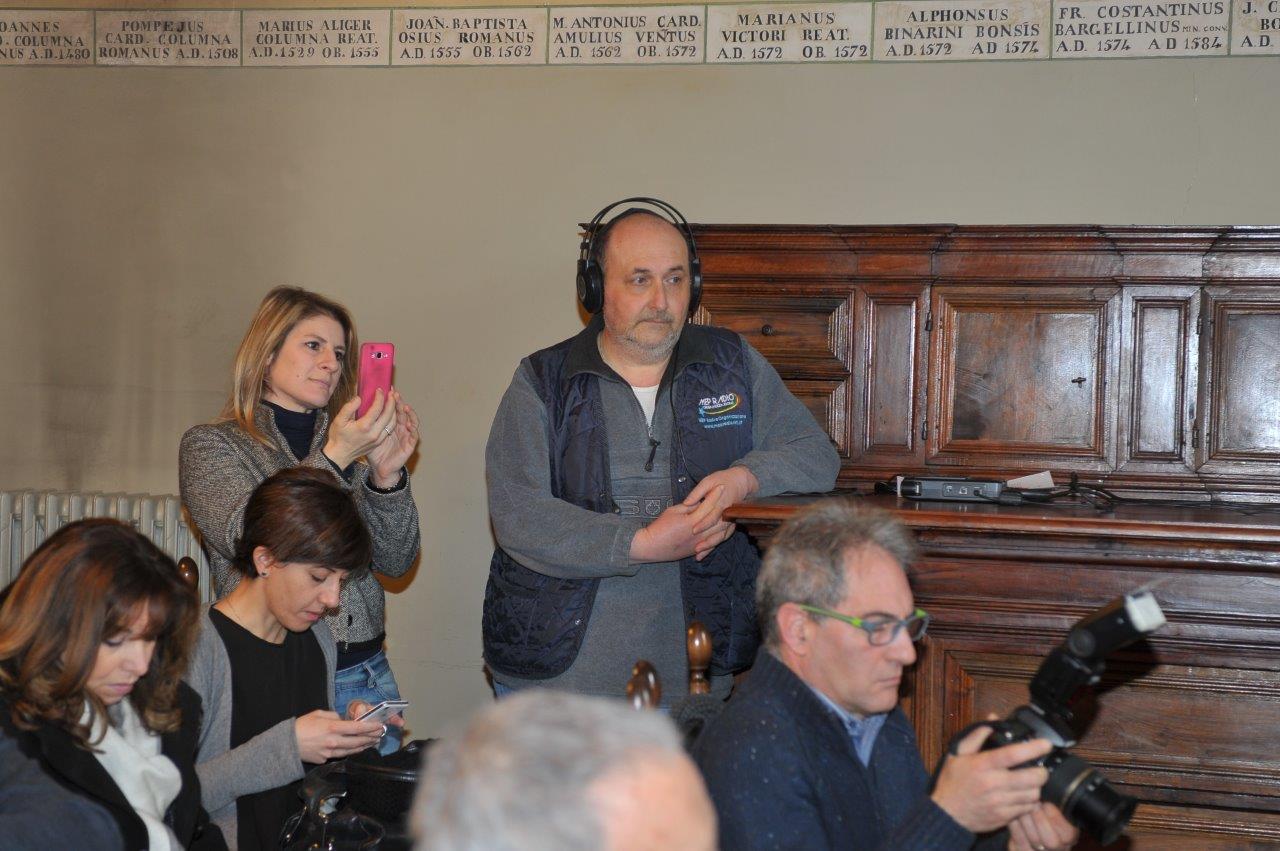 È stato un momento interessante quello dell’incontro del vescovo con i giornalisti e gli operatori della comunicazione, svolto ieri mattina nel salone degli stemmi del palazzo papale di Rieti. Perché cronisti, direttori di testata, operatori video e fotoreporter del panorama locale si sono incontrati e confrontati – non succede spesso – per discutere su come cavare da ogni notizia uno sguardo di speranza e fiducia.