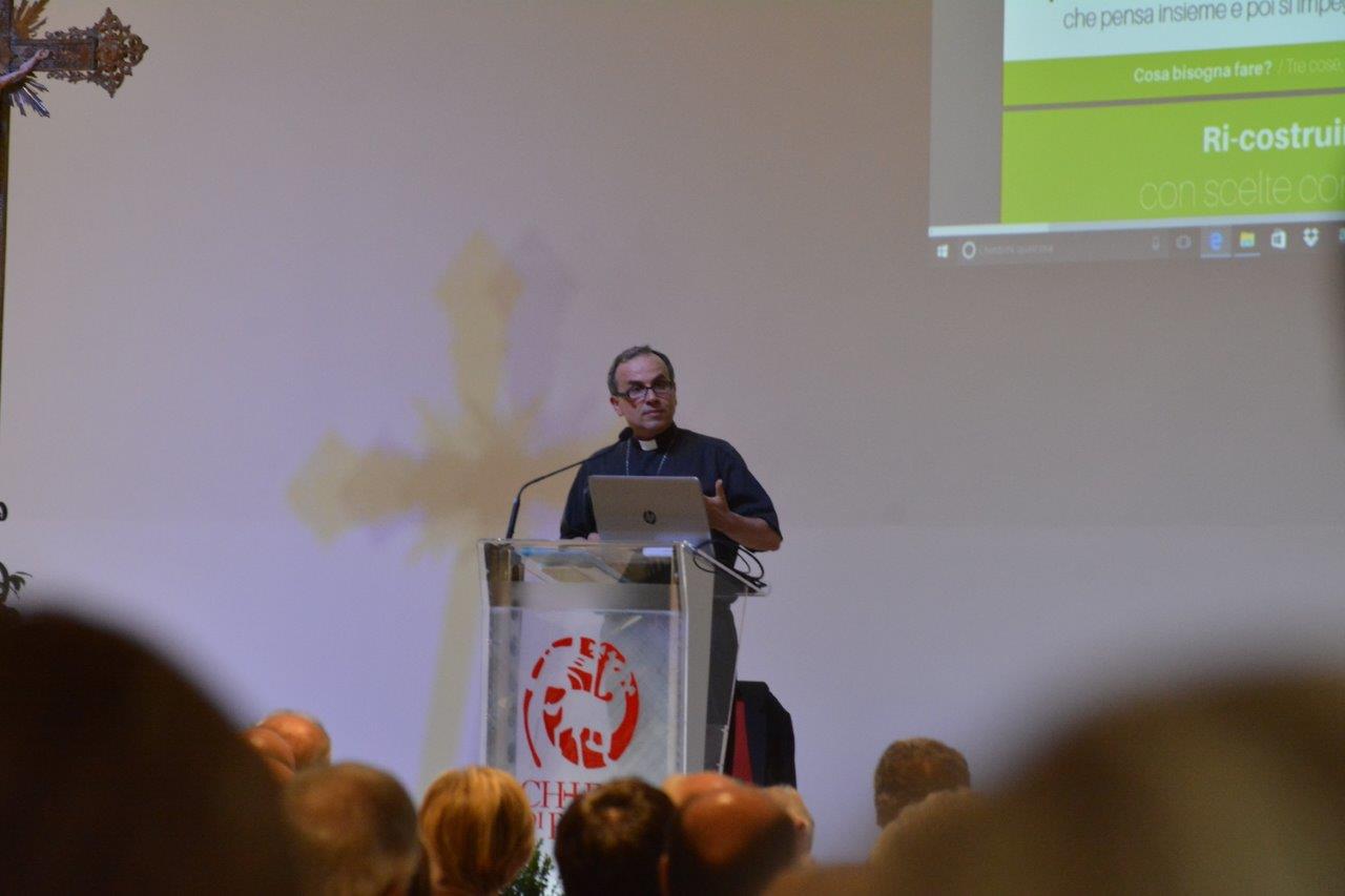 «Tutto riparte dall’abbraccio di un adulto verso una bambina che sostiene e che solleva» ha spiegato il vescovo Domenico introducendo le sue conclusioni. «La bambina è il simbolo della speranza, della Chiesa, dell’umanità che non si arrende e riprende il cammino. L’adulto dice che accompagnare è ritrovare il legame tra le generazioni».