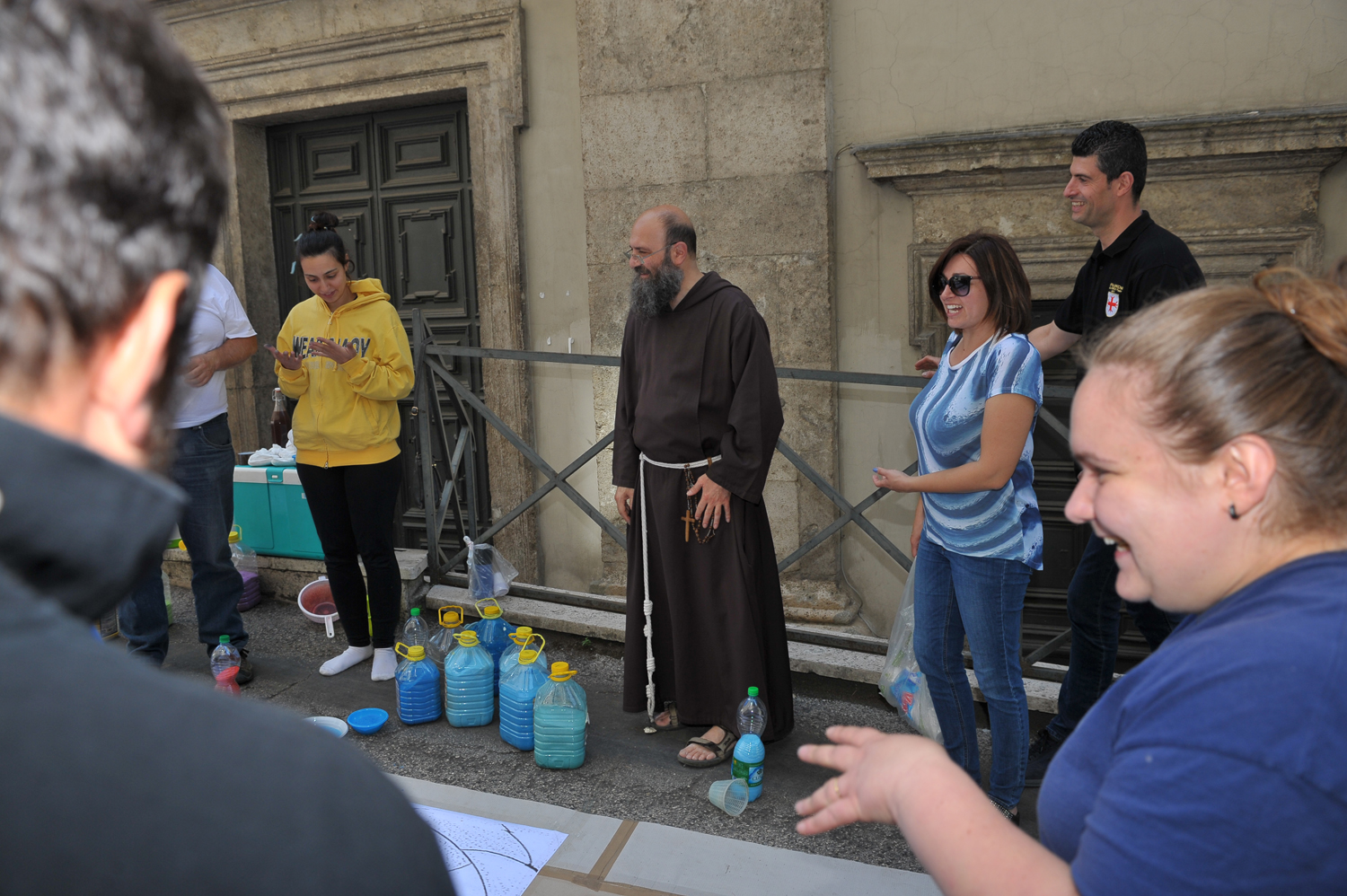 Un progetto comune che diventa unione, festa, amicizia, collaborazione. Dalla scelta del soggetto passando per il disegno preparatorio e poi verso la realizzazione, le infiorate contribuiscono a tenere uniti i quartieri, combattendo indenni attraverso le epoche contro lo spopolamento e la mancata conoscenza perfino del vicino di pianerottolo. Così, dalla signora che prepara succulenti viveri per rifocillare tutti, ai bambini che sminuzzano le corolle, ai giovani che mettono in pratica le fresche nozioni di disegno tecnico per riportare in prospettiva il disegno, fino alle allegre signore chine sulle figure, ognuno è coinvolto nonostante il sole cocente, in un clima di gioia ed entusiasmo che non scemerà fino a tarda sera, quando l’opera colorata e ormai compiuta farà da colorato tappeto per il passaggio del santo più amato dai reatini.