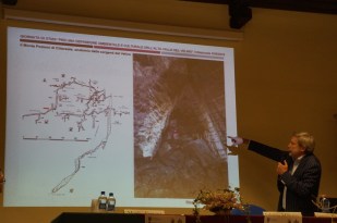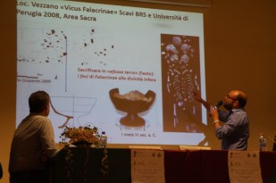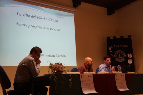 Dopo il coffee break è iniziata la sezione dedicata al contesto archeologico, presieduto dal professore di Topografia Antica Alessandro Jaia. Nel primo intervento Carlo Virili ha fatto un repertorio delle evidenze preromane. A seguire un’analisi di un’eccezionale iscrizione Etrusca ritrovata ad Amatrice da parte di Enrico Benelli del CNR. I tre contributi successivi sono stati dedicati alla Villa dei Flavi e alla così detta Villa di Tito, rispettivamente a Cotilia e Castel Sant’Angelo, da parte degli archeologi Simone Nardelli, Alessandro Betori e Martin Beckmann e Myles McCallum. Al termine della pausa pranzo i lavori sono ripresi con la relazione di Francesca Lezzi (archeologa) sulla via Salaria nel circondario di Cittaducale. Agli archeologi Emanuele Nicosia e Carlo Virili è spettato un intervento a proposito dei nuovi dati su un’infrastruttura sul Rio Rapelle ad Antrodoco.