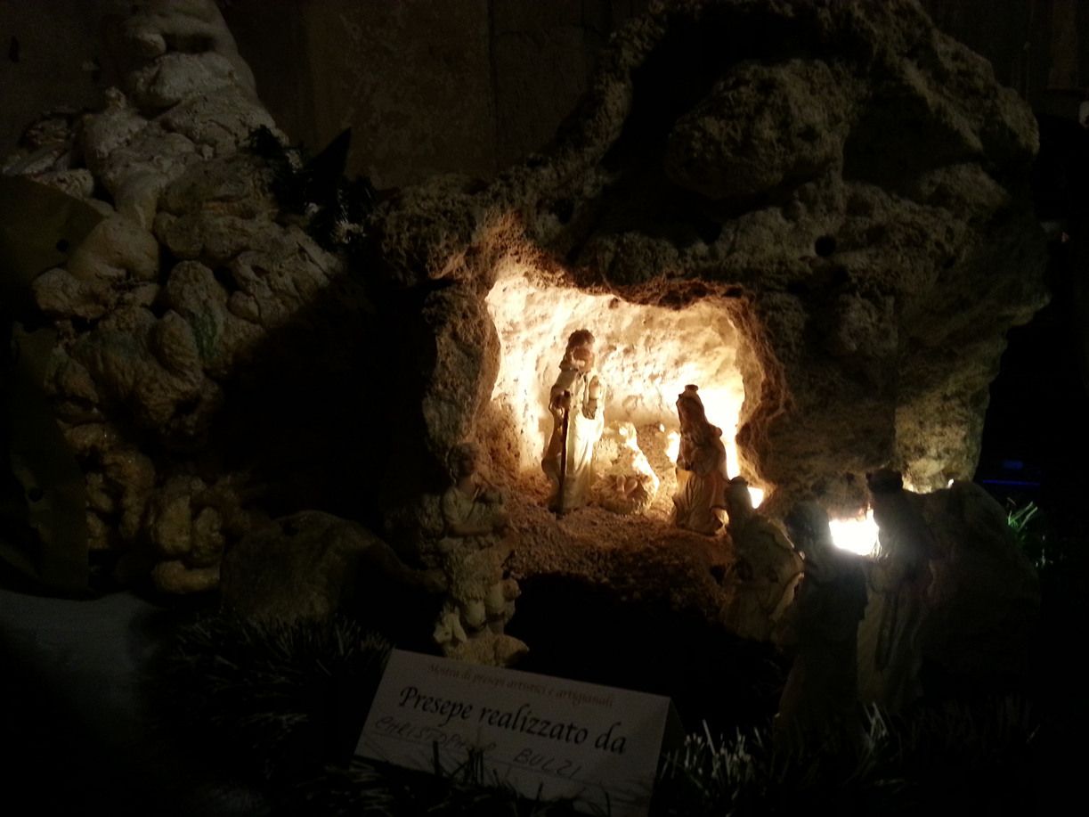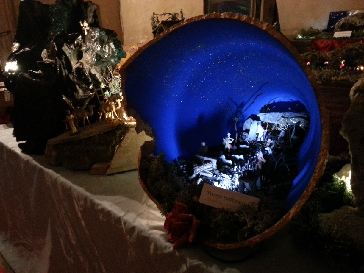 Sono ben 30 presepi in mostra, di varie dimensioni, realizzati tutti artigianalmente con materiali differenti dal legno alla plastica, dalla pietra al sughero, dalla carta alla pasta sale. Un trionfo di luci e colori, in un’atmosfera che avvolge totalmente lo spettatore chiamato a fare un giro dentro ai presepi.