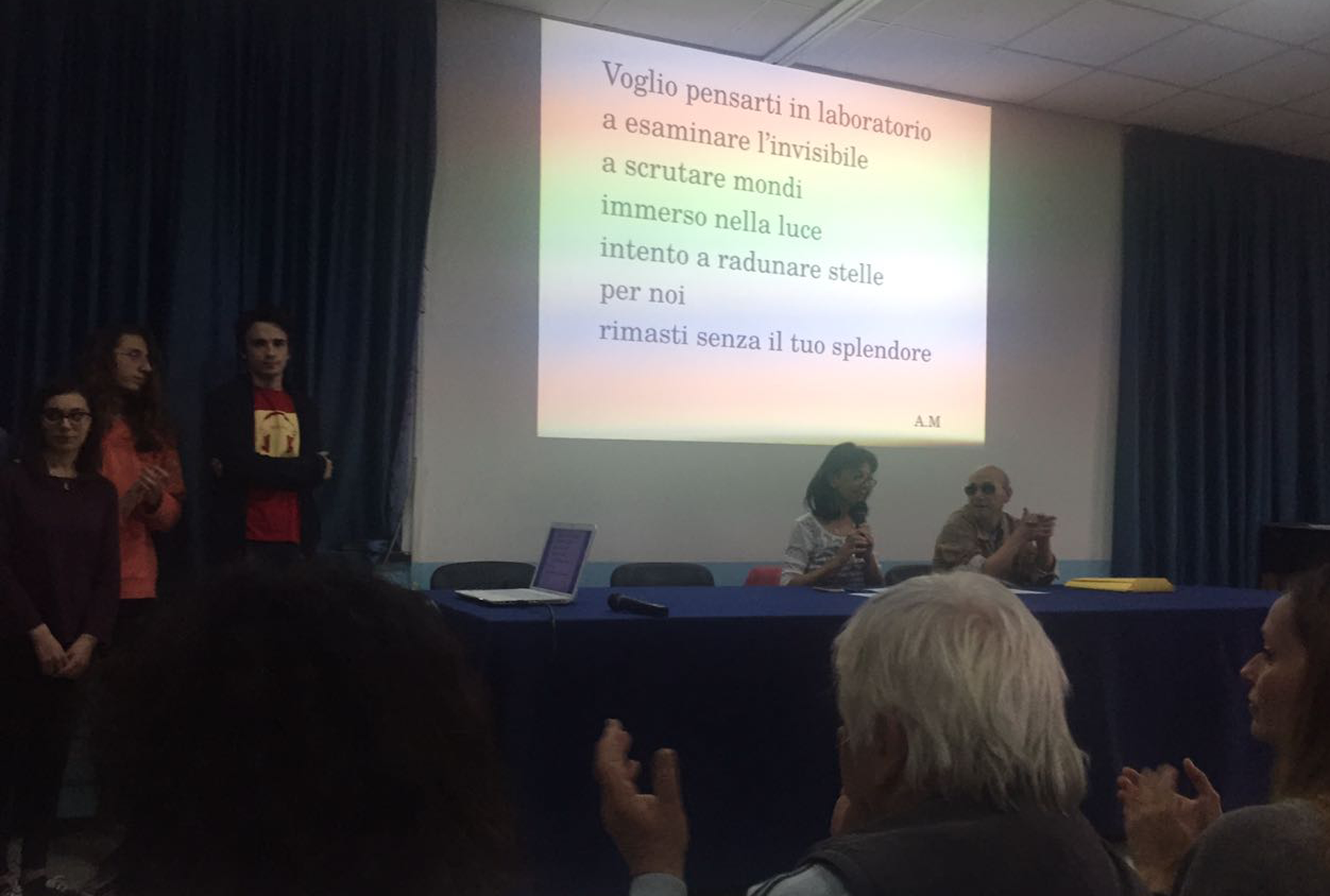 Si sono stretti intorno ai genitori di Lorenzo insegnanti, studenti oltre alla preside Santarelli e alla famiglia Di Flavio. Il momento di memoria è stato arricchito dalla lettura di una poesia scritta dal prof. Sergio Carmesini.