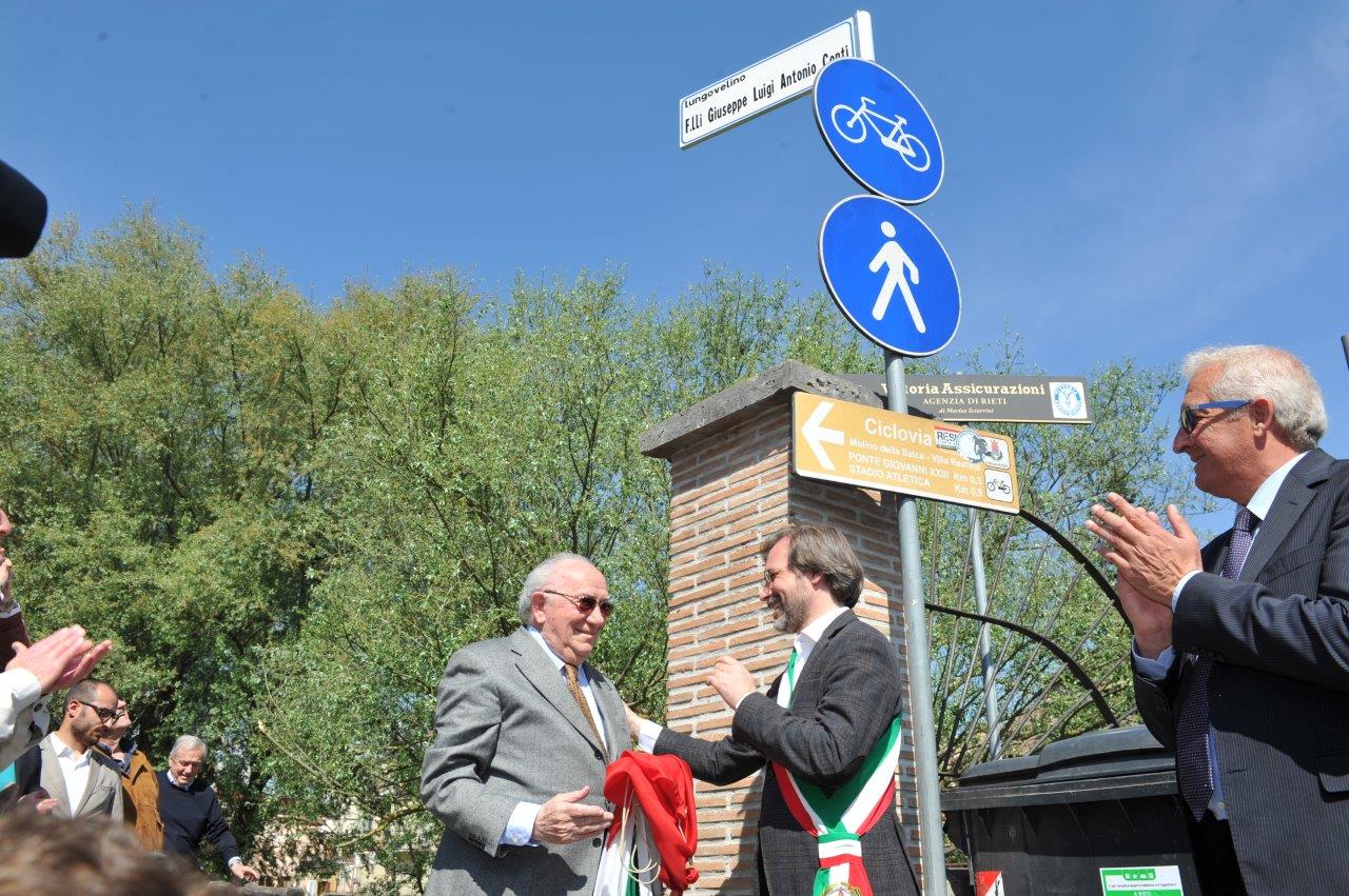 Durante la mattinata del 7 maggio, il sindaco di Rieti, Simone Petrangeli, ha intitolato alla memoria dei vivaisti Giuseppe, Luigi e Antonio Conti, il tratto di lungovelino che va dal Ponte Romano al ponte Giovanni XXIII. Il tratto di ciclovia, si chiamerà “Lungovelino F.lli Giuseppe Luigi, Antonio Conti”.