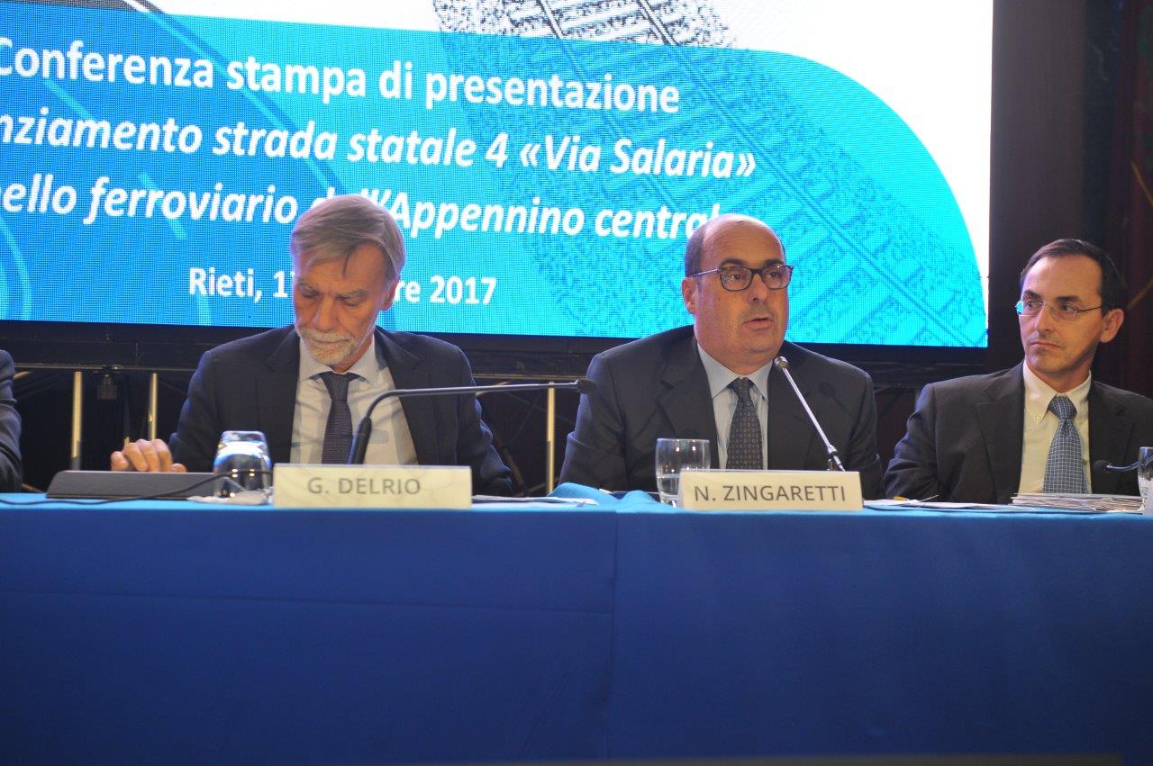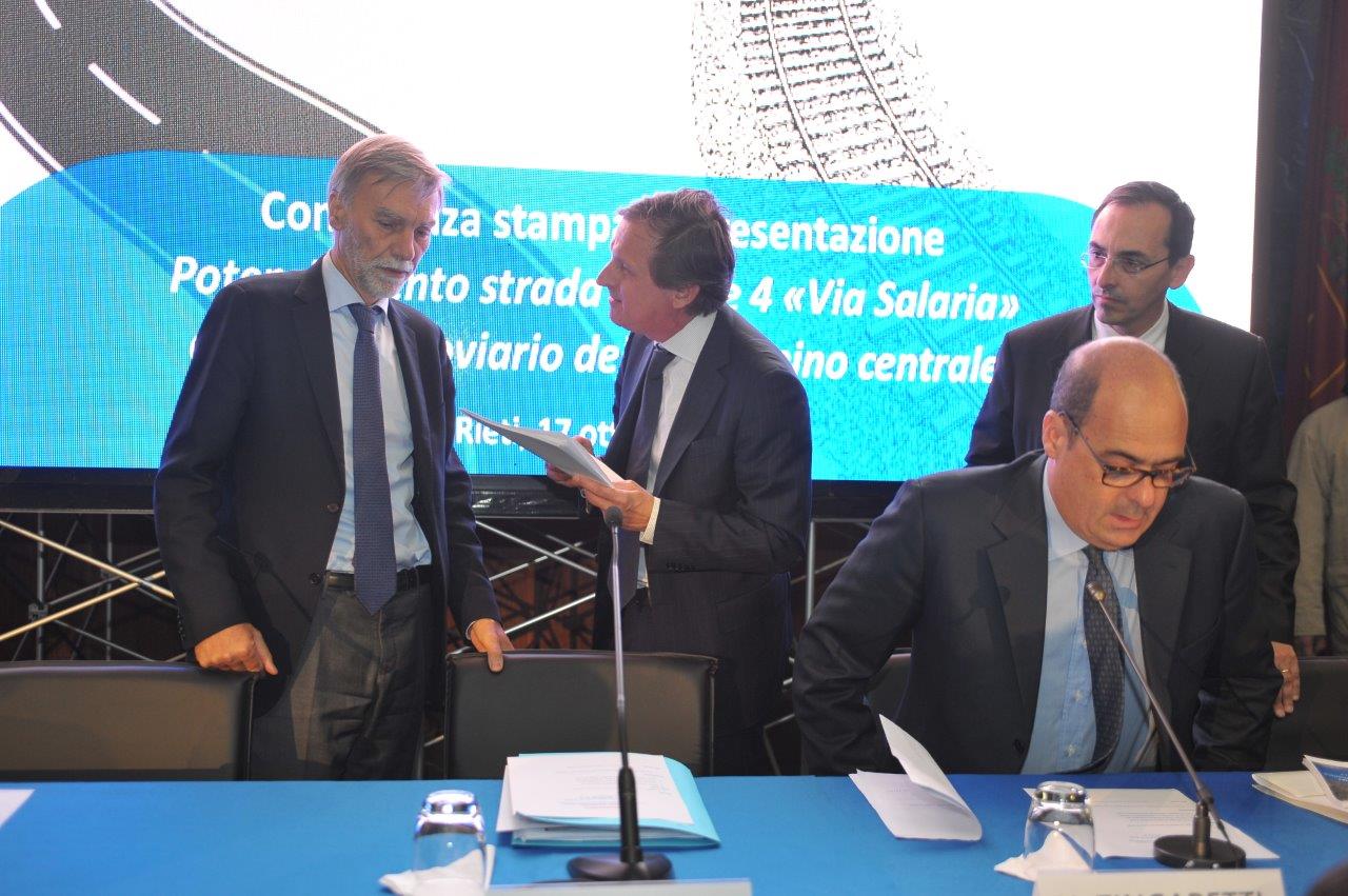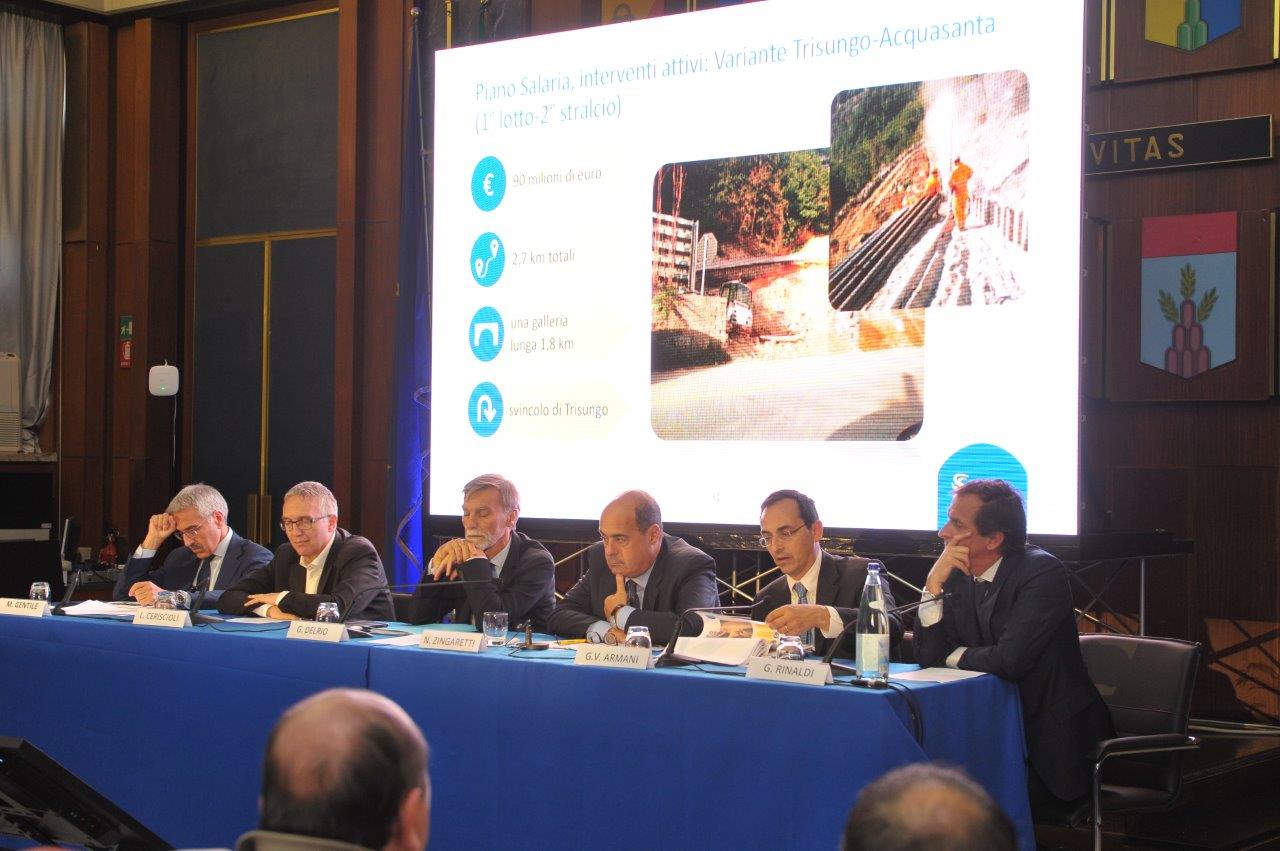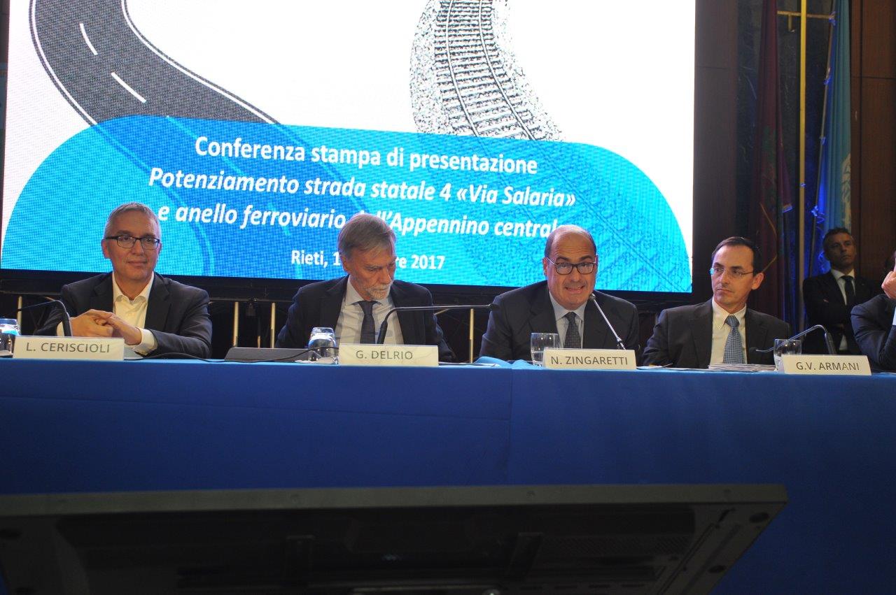 Sono quelli presentati nella mattina del 17 ottobre dal ministro delle Infrastrutture e dei Trasporti, Graziano Delrio, affiancato da Vittorio Armani, presidente e amministratore delegato di Anas, e Maurizio Gentile, amministratore delegato e direttore generale di Rete Ferroviaria Italiana, che hanno rispettivamente approfondito quanto sarà fatto per l’ammodernamento della via Salaria, «da Roma ad Ascoli Piceno», e per la mobilità su rotaia, grazie al potenziamento dell’infrastruttura esistente e alla costruzione di una nuova linea fra Rieti e Passo Corese.