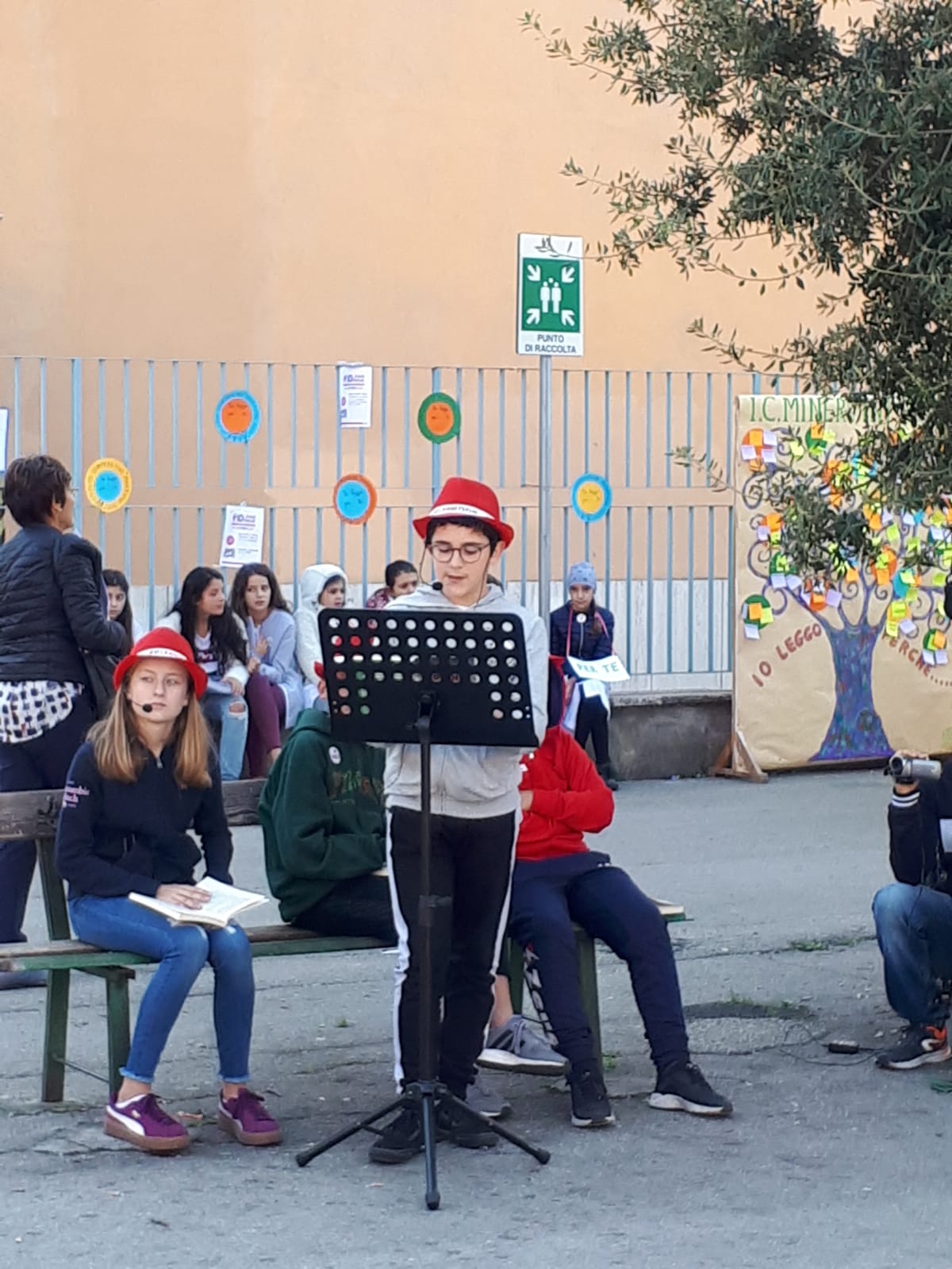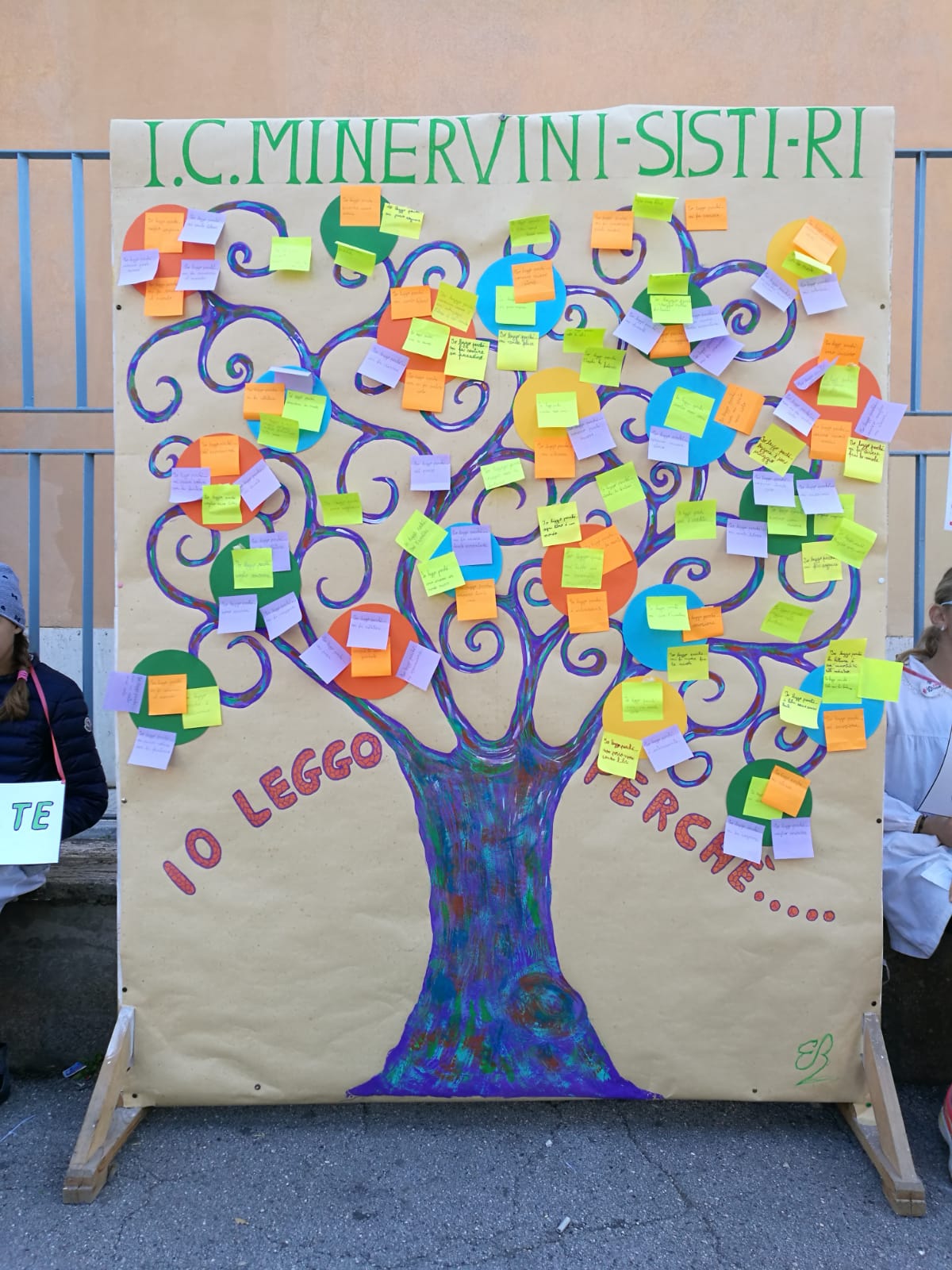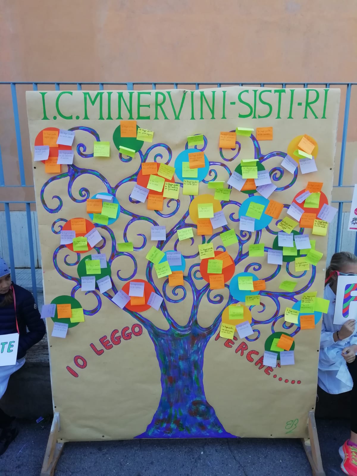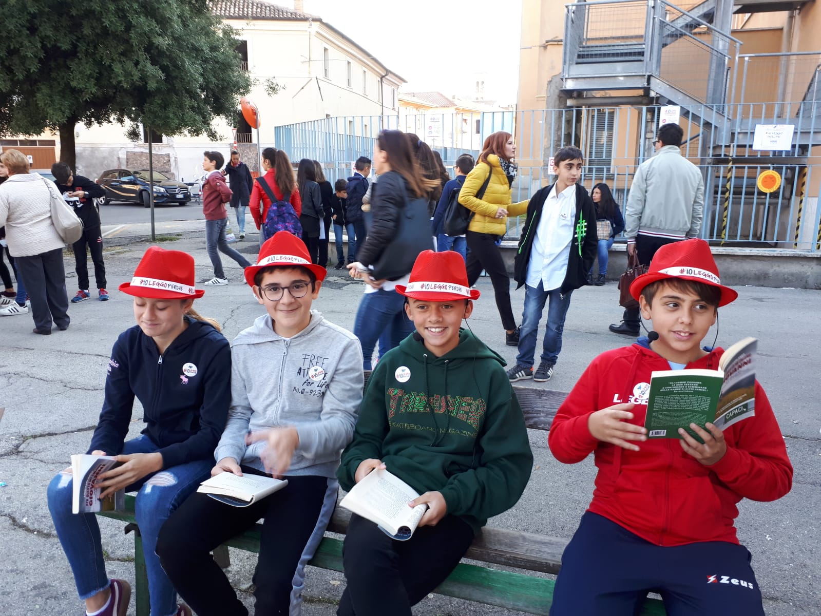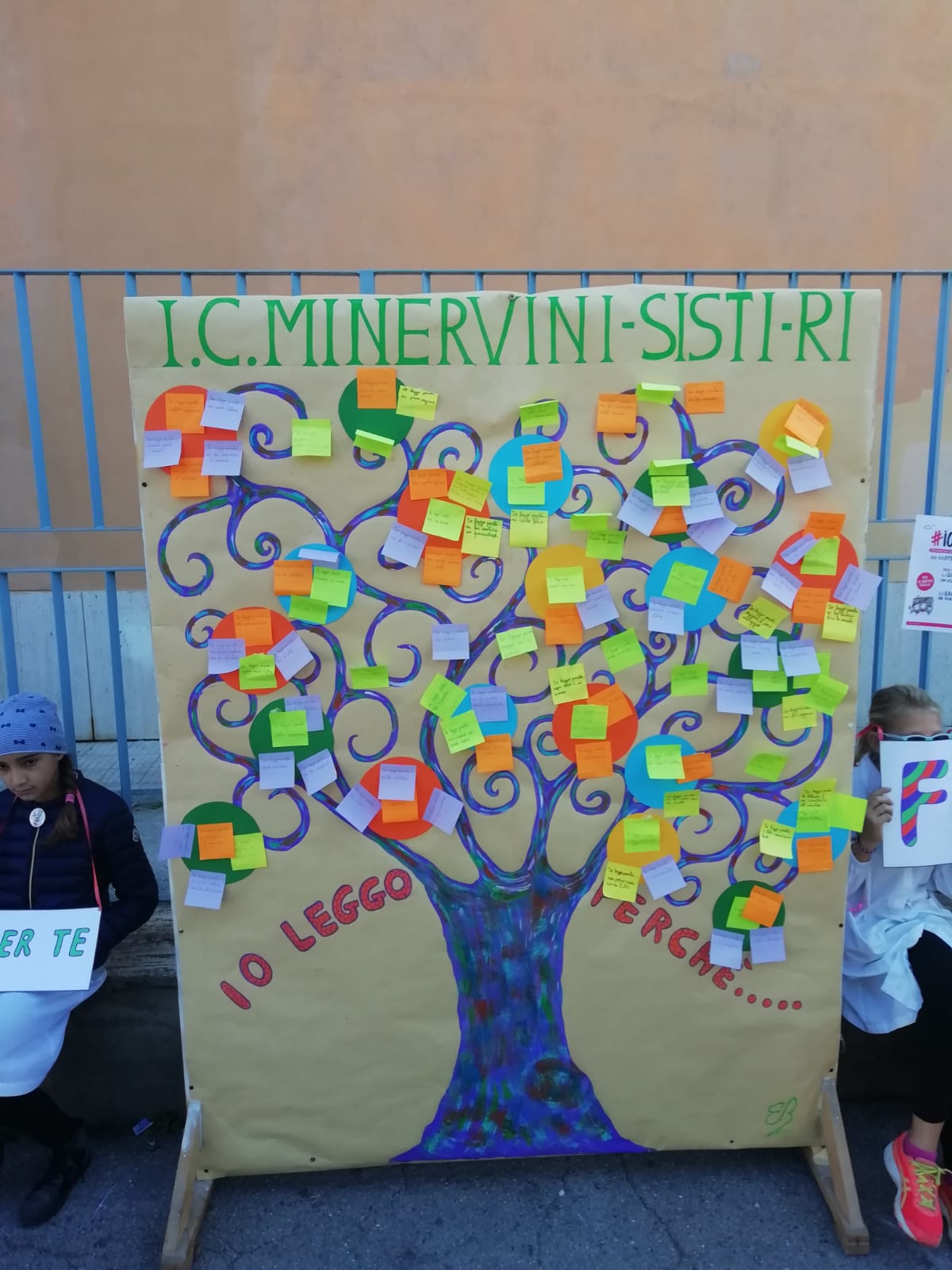 “Io leggo perché…”. Già, perché? Le risposte se le sono date gli alunni dell’Istituto comprensivo Minervini-Sisti. Quelle scritte nei segnalibri preparati dai bambini e distribuiti ai passanti, e quelle scritte nei post-it attaccati sullo speciale “albero” posizionato alla cancellata del cortile della scuola assieme a vari cartelli promozionali dell’iniziativa che invita a donare libri alle biblioteche scolastiche e che ha visto le rappresentanze delle scolaresche dei tre ordini che costituiscono l’istituto di Fiume de’ Nobili (infanzia “Borgo Santa Lucia, primaria “Luigi Minervini” e secondaria di primo grado “Basilio Sisti”) protagoniste, sabato mattina, di un singolare “flash mob letterario”.