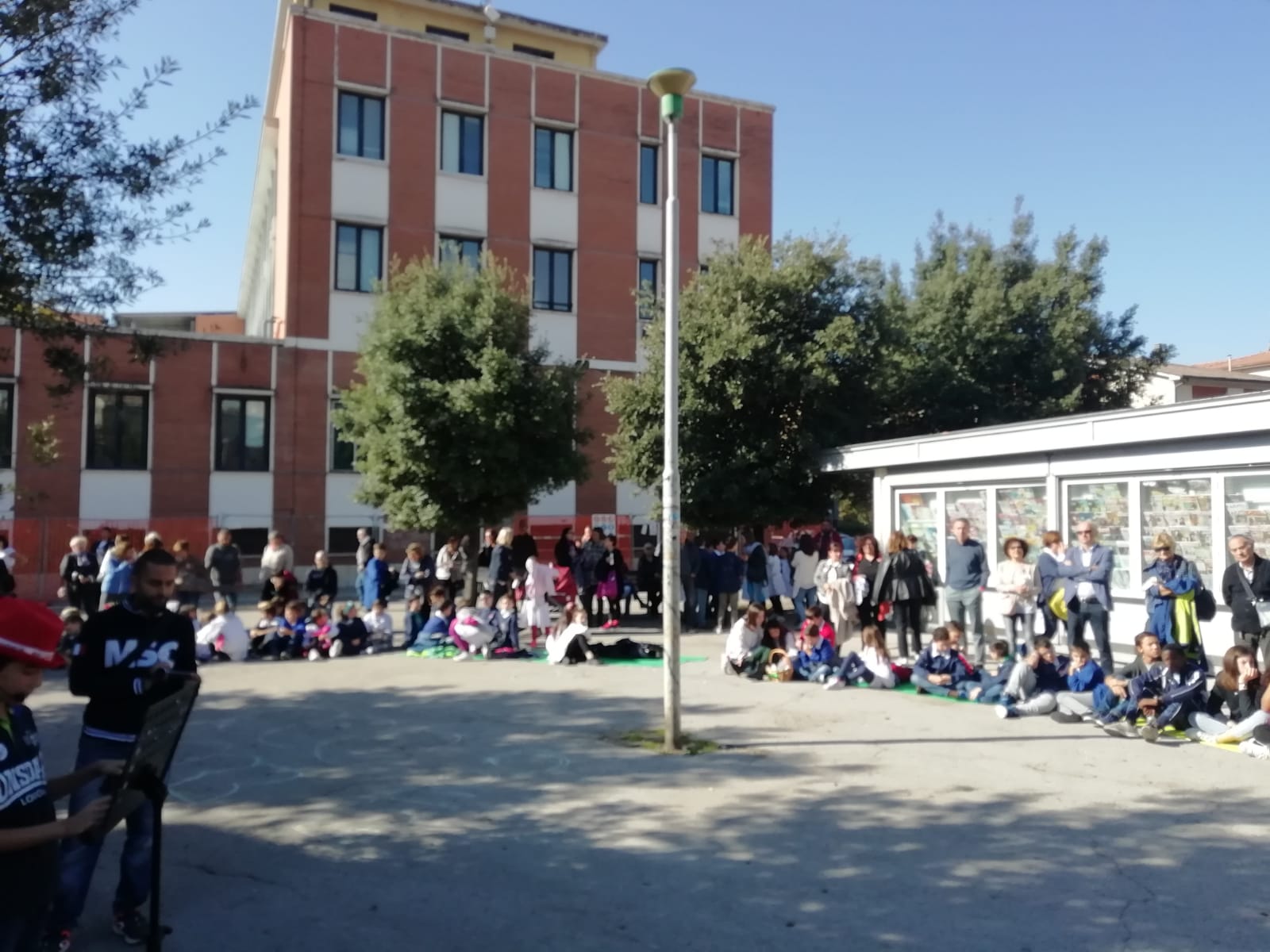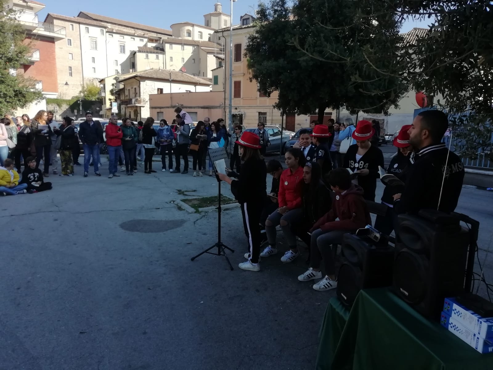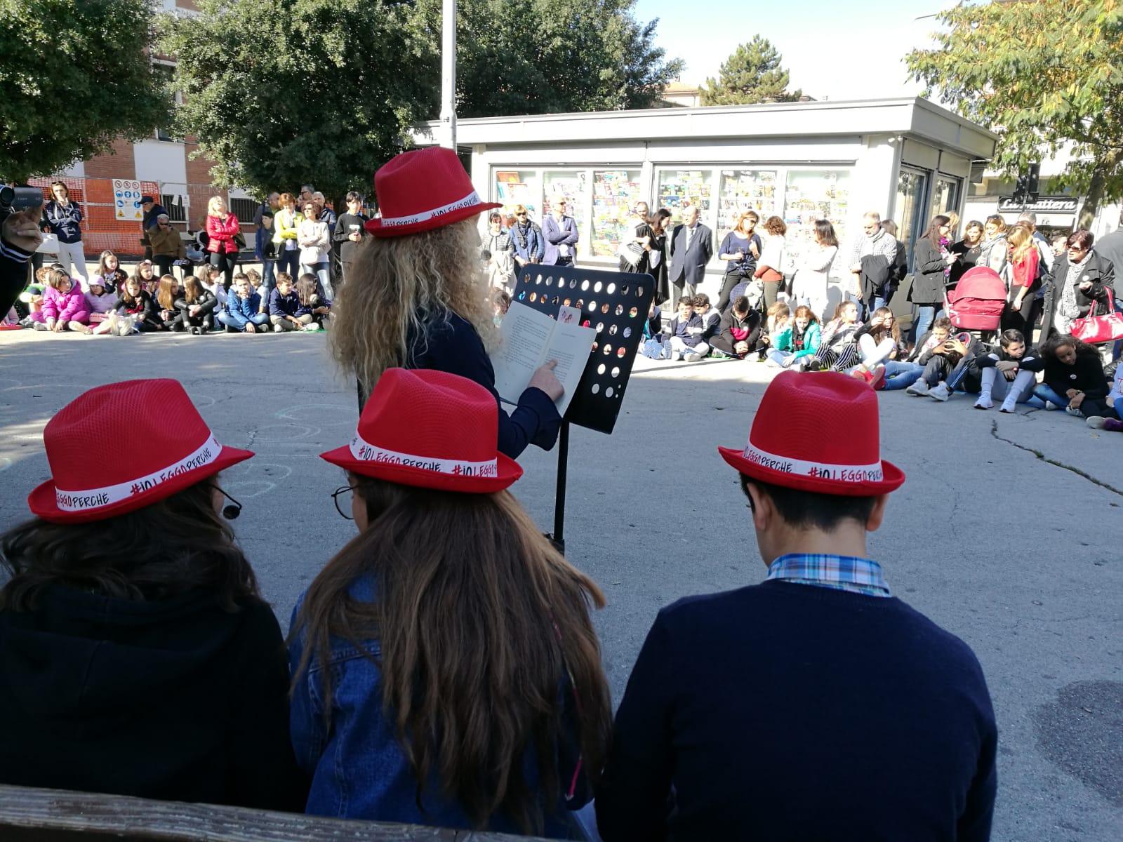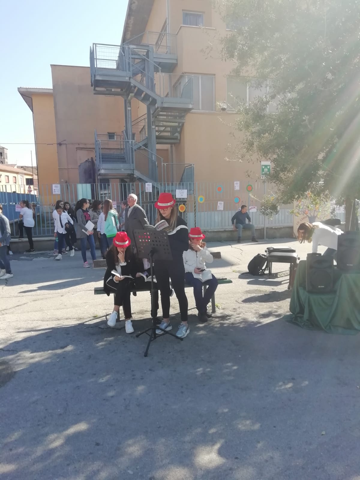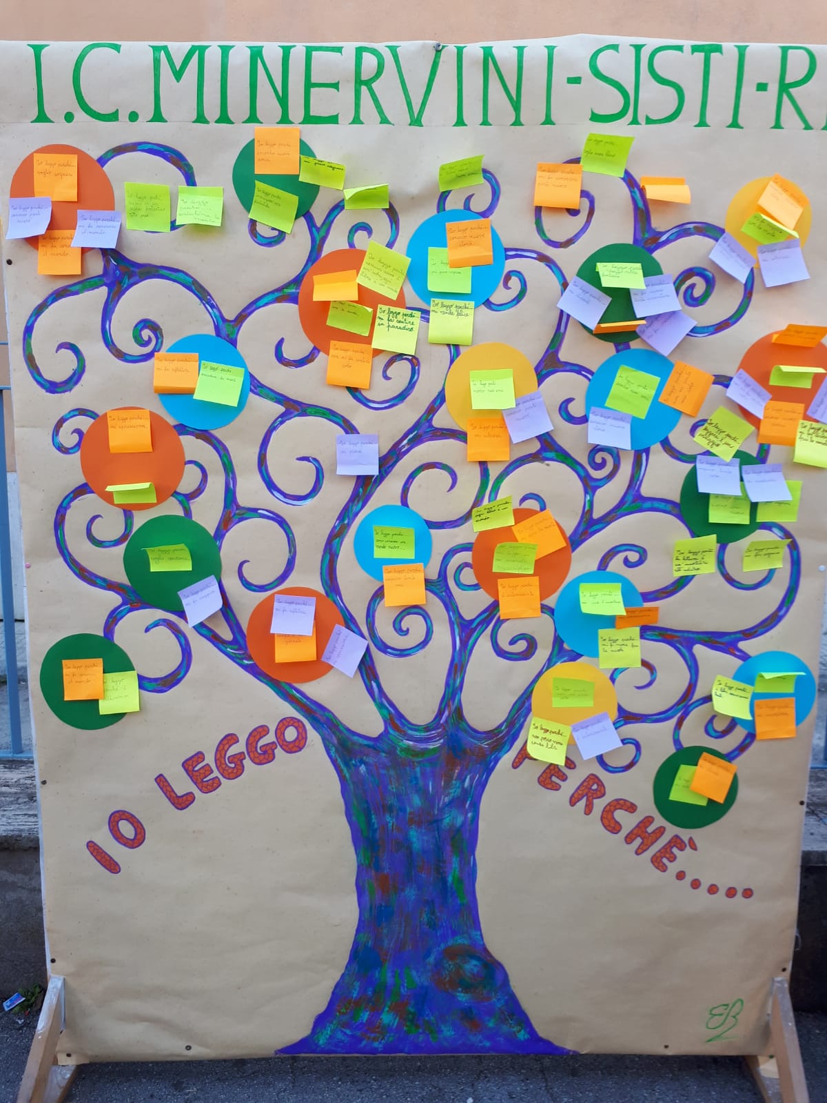 “Io leggo perché…”. Già, perché? Le risposte se le sono date gli alunni dell’Istituto comprensivo Minervini-Sisti. Quelle scritte nei segnalibri preparati dai bambini e distribuiti ai passanti, e quelle scritte nei post-it attaccati sullo speciale “albero” posizionato alla cancellata del cortile della scuola assieme a vari cartelli promozionali dell’iniziativa che invita a donare libri alle biblioteche scolastiche e che ha visto le rappresentanze delle scolaresche dei tre ordini che costituiscono l’istituto di Fiume de’ Nobili (infanzia “Borgo Santa Lucia, primaria “Luigi Minervini” e secondaria di primo grado “Basilio Sisti”) protagoniste, sabato mattina, di un singolare “flash mob letterario”.