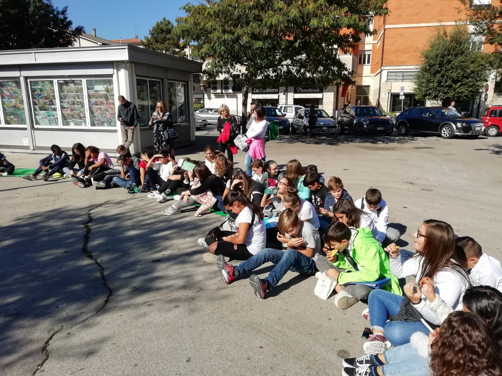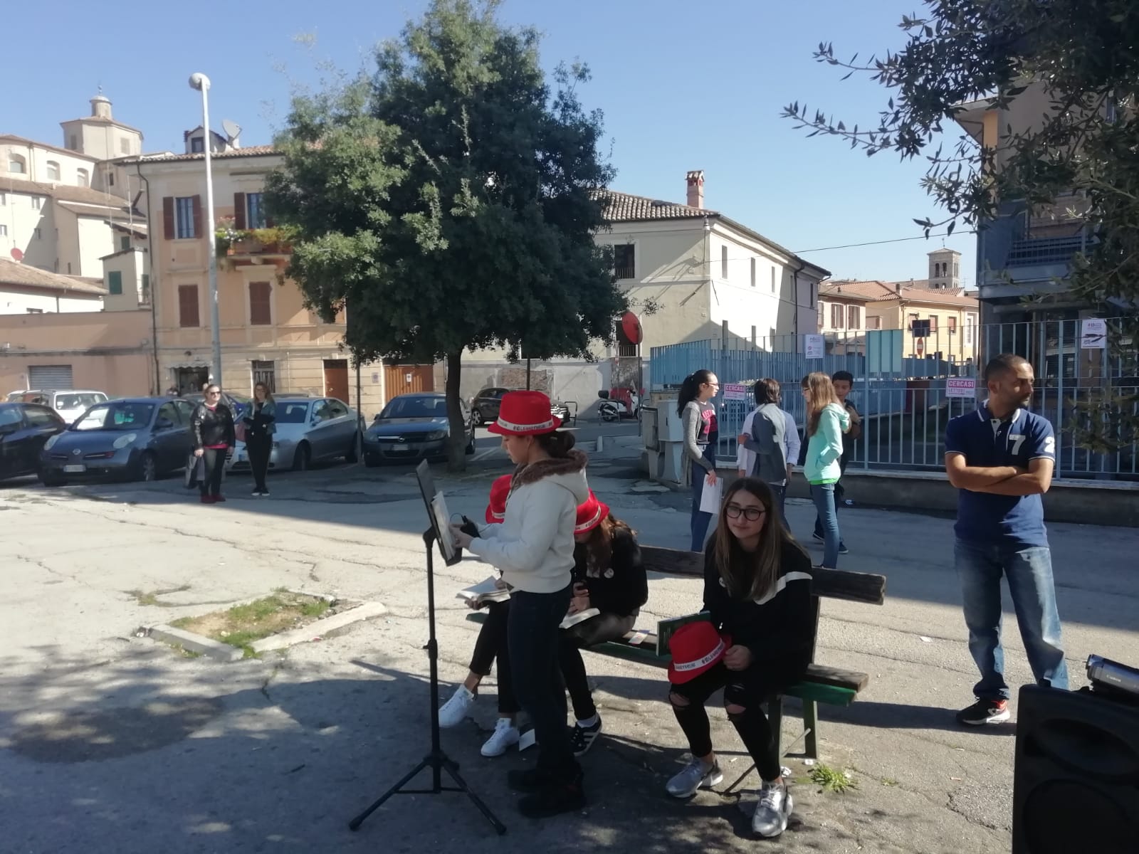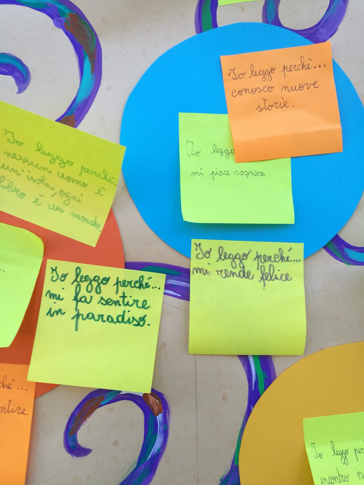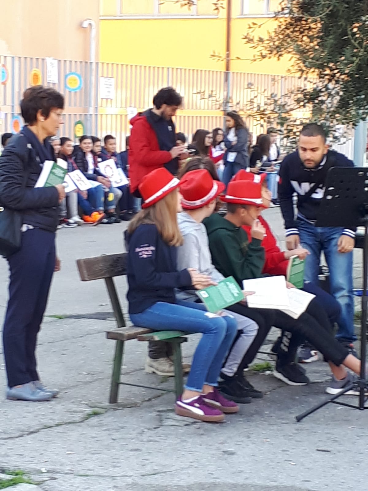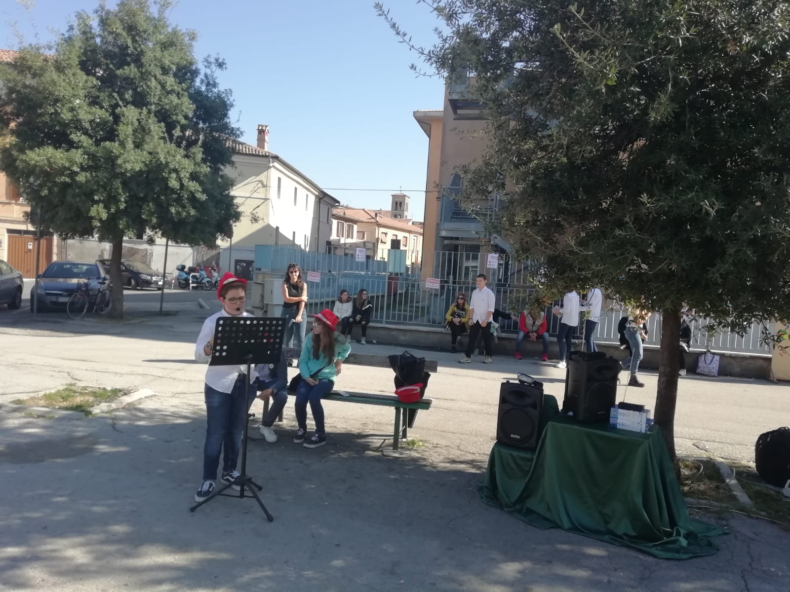 “Io leggo perché…”. Già, perché? Le risposte se le sono date gli alunni dell’Istituto comprensivo Minervini-Sisti. Quelle scritte nei segnalibri preparati dai bambini e distribuiti ai passanti, e quelle scritte nei post-it attaccati sullo speciale “albero” posizionato alla cancellata del cortile della scuola assieme a vari cartelli promozionali dell’iniziativa che invita a donare libri alle biblioteche scolastiche e che ha visto le rappresentanze delle scolaresche dei tre ordini che costituiscono l’istituto di Fiume de’ Nobili (infanzia “Borgo Santa Lucia, primaria “Luigi Minervini” e secondaria di primo grado “Basilio Sisti”) protagoniste, sabato mattina, di un singolare “flash mob letterario”.