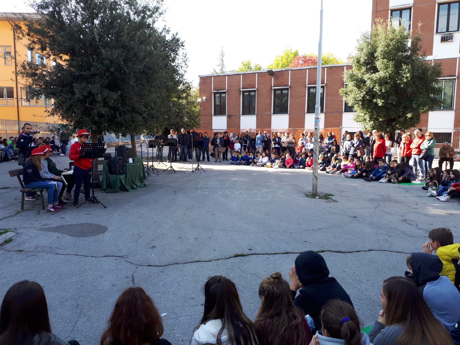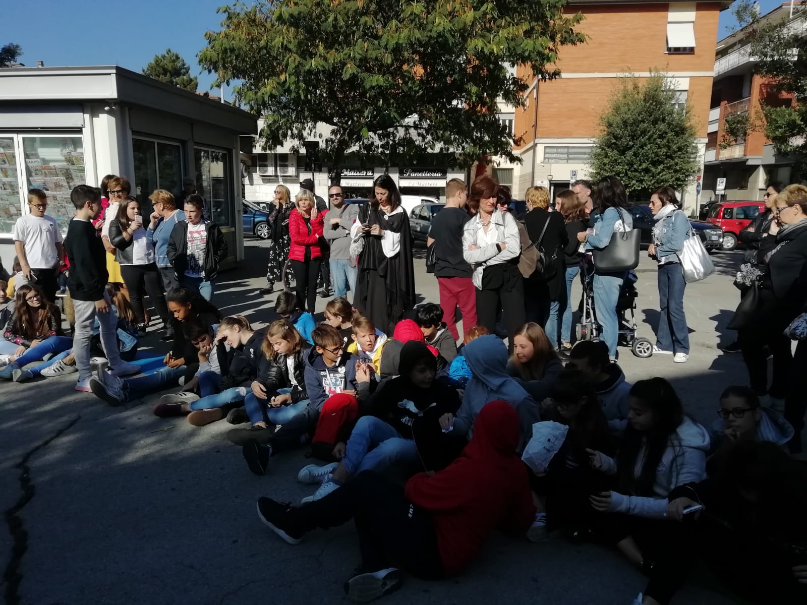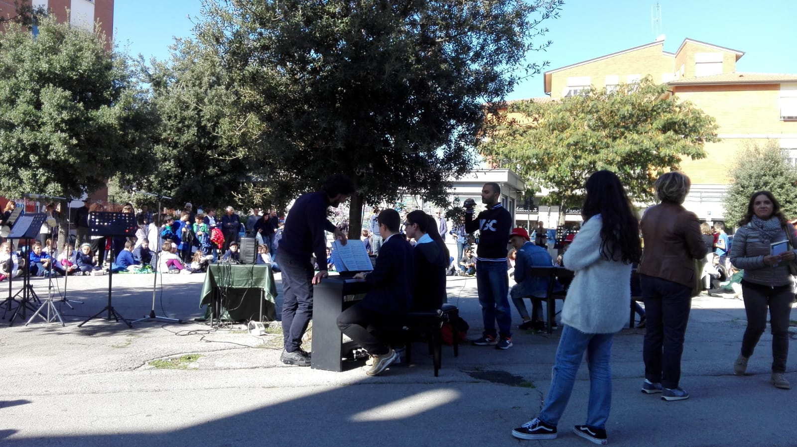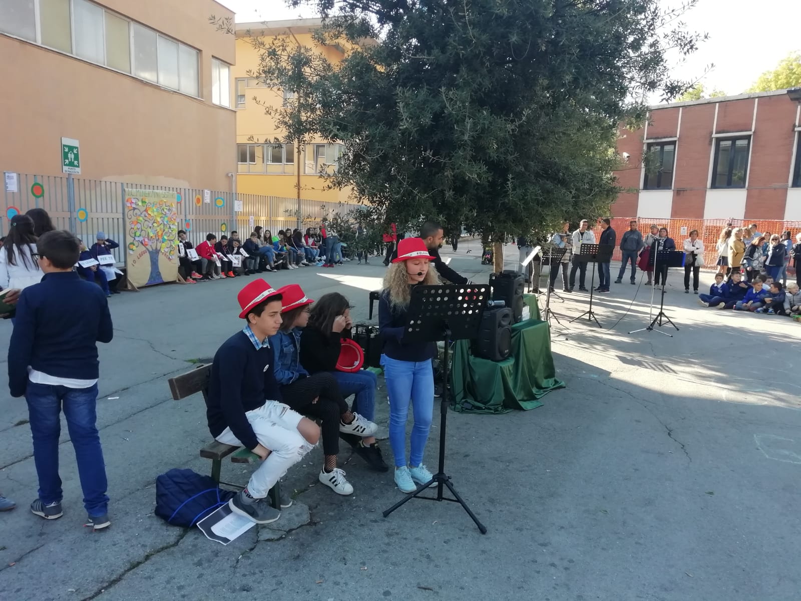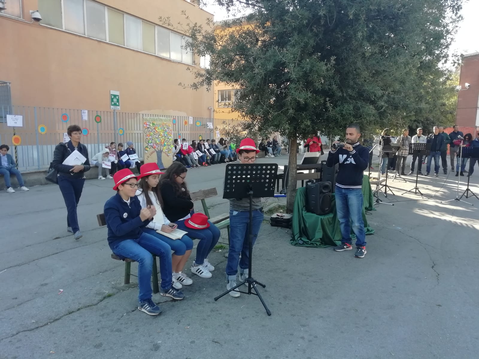 “Io leggo perché…”. Già, perché? Le risposte se le sono date gli alunni dell’Istituto comprensivo Minervini-Sisti. Quelle scritte nei segnalibri preparati dai bambini e distribuiti ai passanti, e quelle scritte nei post-it attaccati sullo speciale “albero” posizionato alla cancellata del cortile della scuola assieme a vari cartelli promozionali dell’iniziativa che invita a donare libri alle biblioteche scolastiche e che ha visto le rappresentanze delle scolaresche dei tre ordini che costituiscono l’istituto di Fiume de’ Nobili (infanzia “Borgo Santa Lucia, primaria “Luigi Minervini” e secondaria di primo grado “Basilio Sisti”) protagoniste, sabato mattina, di un singolare “flash mob letterario”.