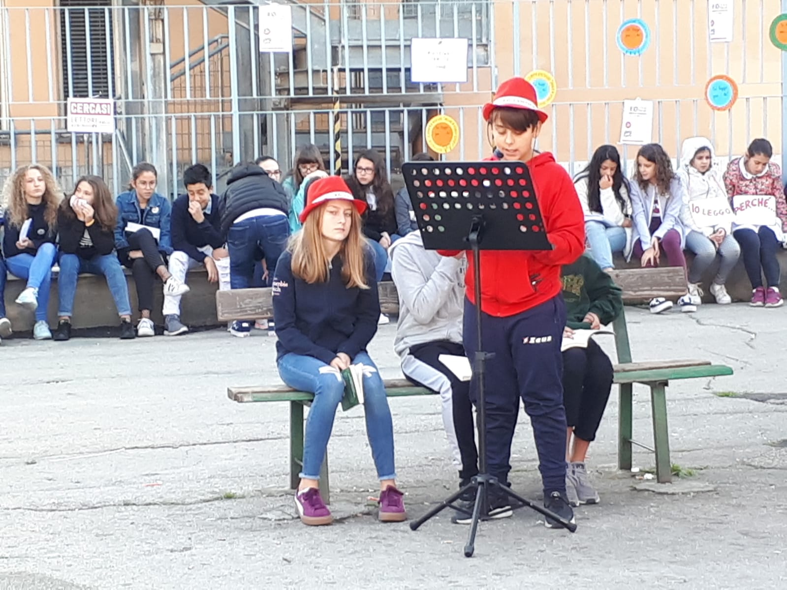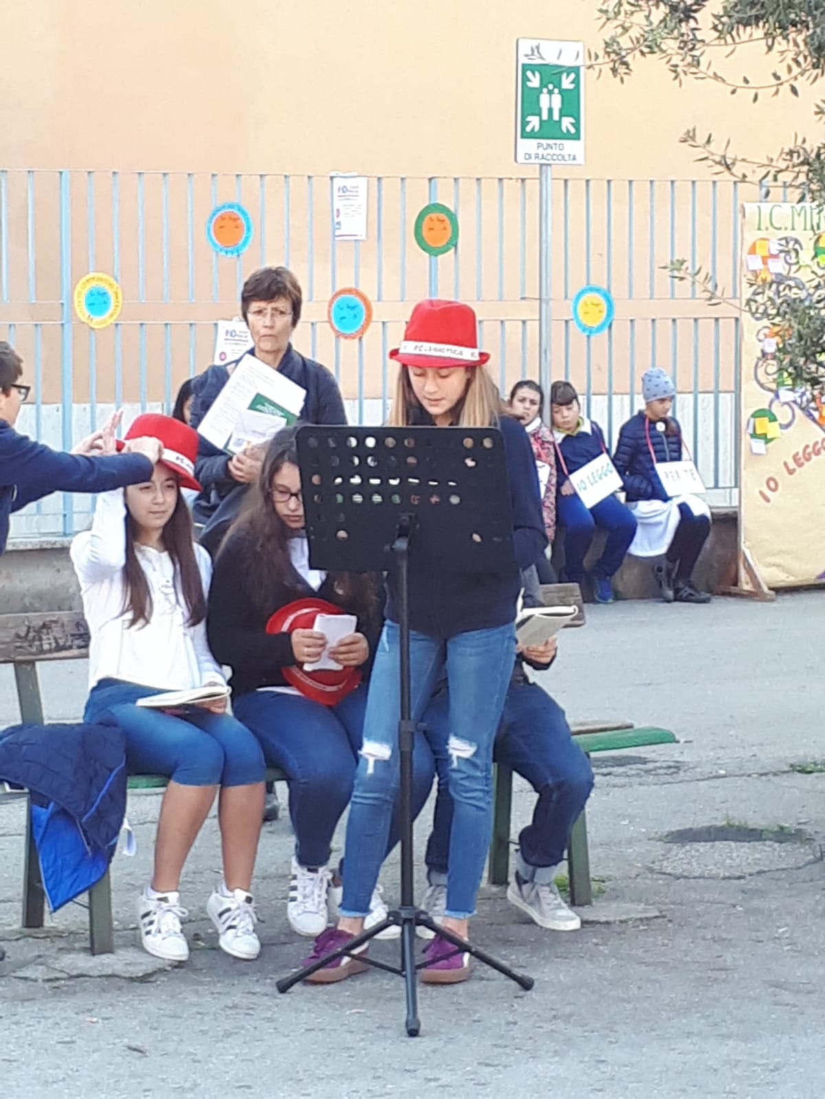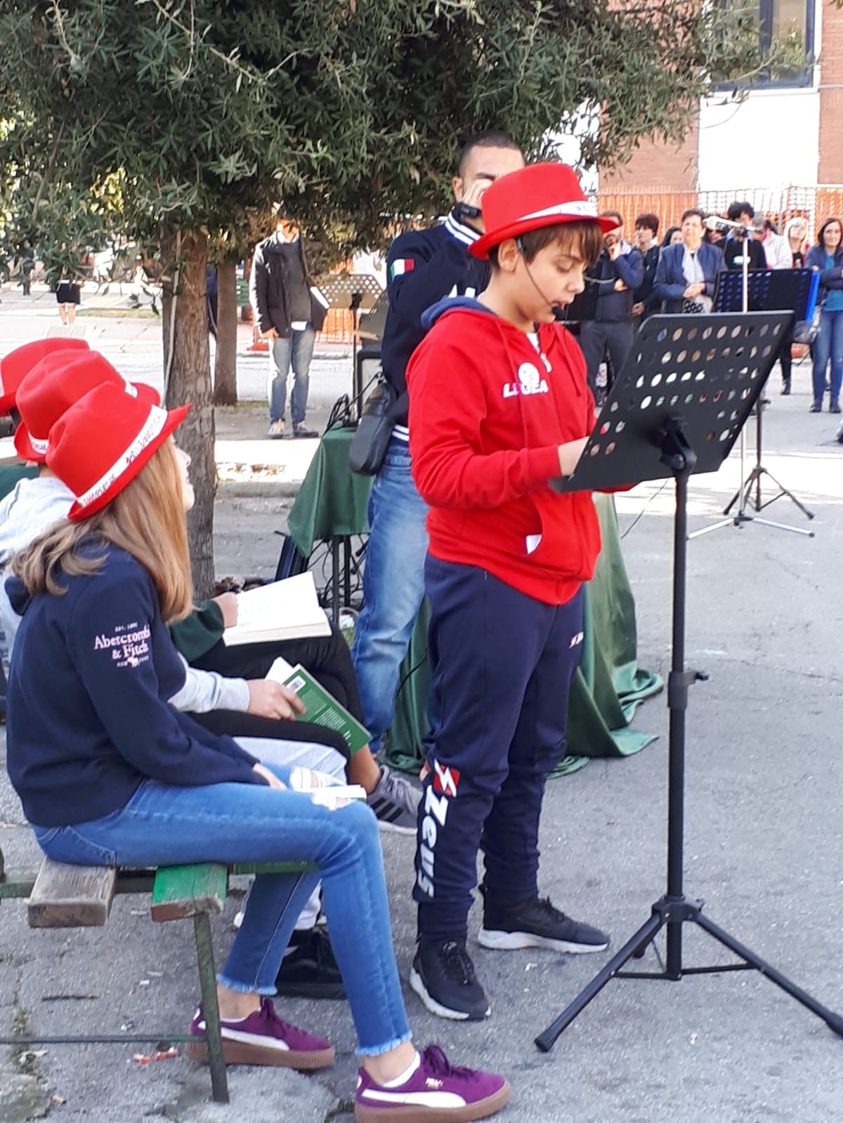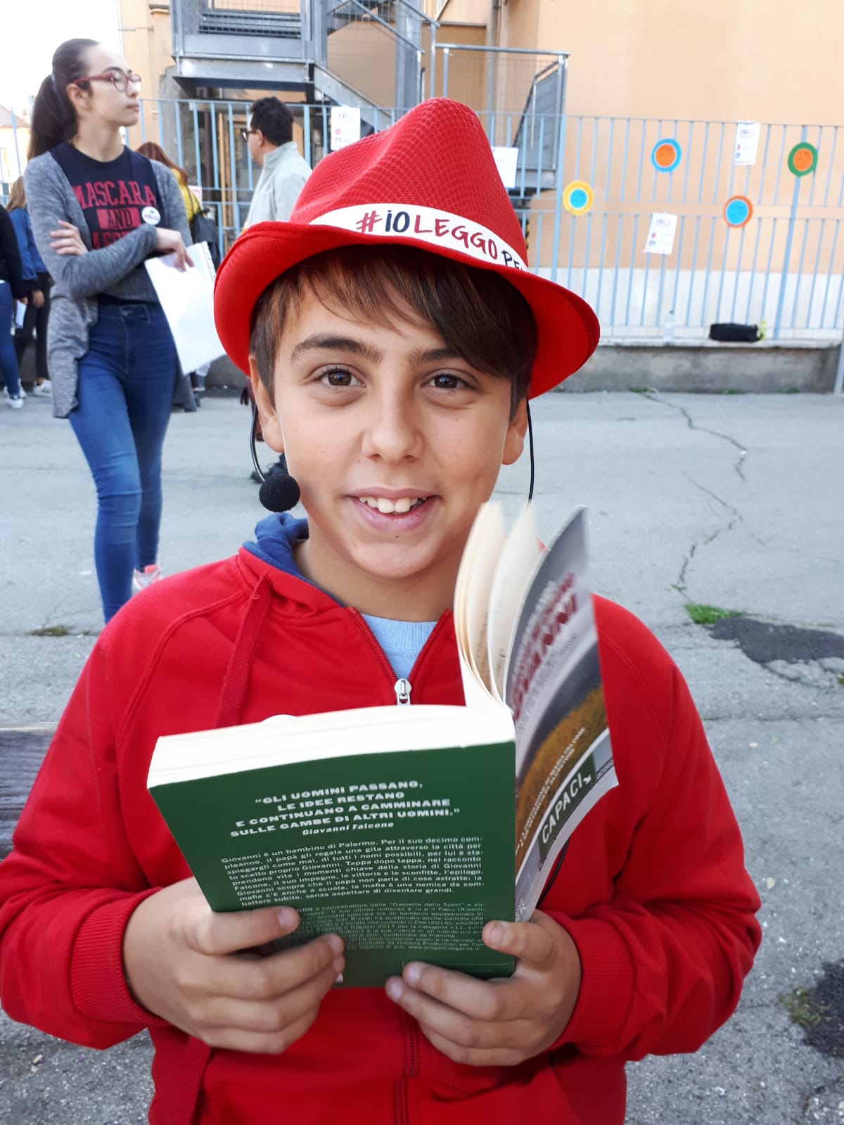 Tanti i motivi per cui, secondo i ragazzi, è bello leggere: perché “mi fa vivere tante avventure”, “mi fa viaggiare con la fantasia”, “conosco nuove storie”, “mi piace sognare”, “è bello”, “metto le ali e…”. Lo hanno condiviso con chi passava in largo Bonfante consegnando i segnalibri e lo hanno “testimoniato” dandosi il turno nel leggere integralmente un libro. Una mattinata di festa e di richiamo per le famiglie e per tutti quelli che si sono incontrati a passare, con gli alunni delle quinte elementari impegnati nell’attaccare i post-it sull’albero e nel distribuire i segnalibri, i bimbi della materna nel proporre una piccola e colorata coreografia di invito alla lettura, i ragazzi di seconda e terza media nella “maratona di lettura” che, voce dopo voce, ha sciorinato tutte le pagine del libro di Luigi Garlando Per questo mi chiamo Giovanni, dedicato alla memoria del giudice martire della mafia Giovanni Falcone. Il tutto allietato, nei momenti di pausa, dai clarinettisti, violinisti, pianisti e flautisti delle sezioni di strumento musicale della scuola secondaria.