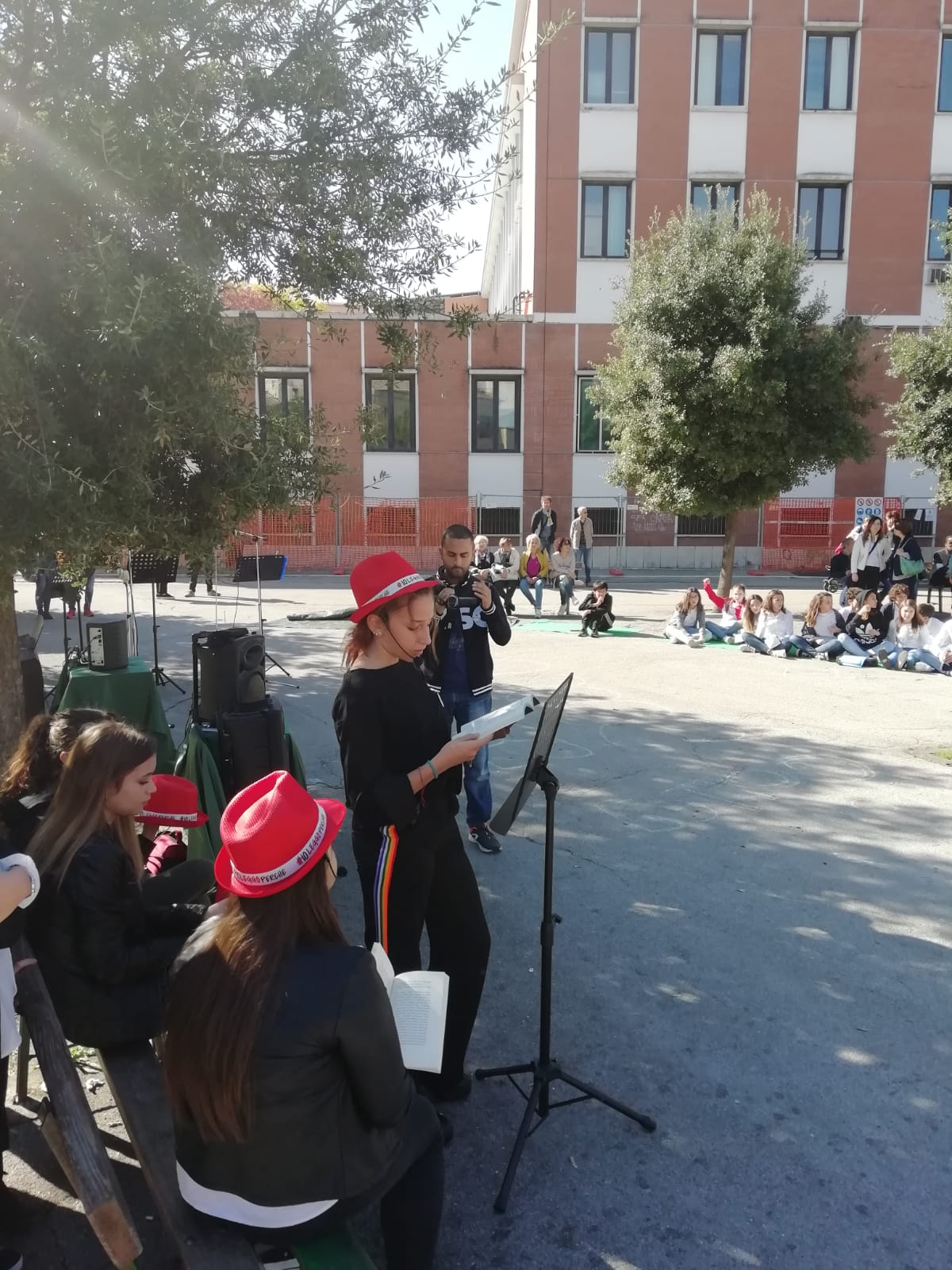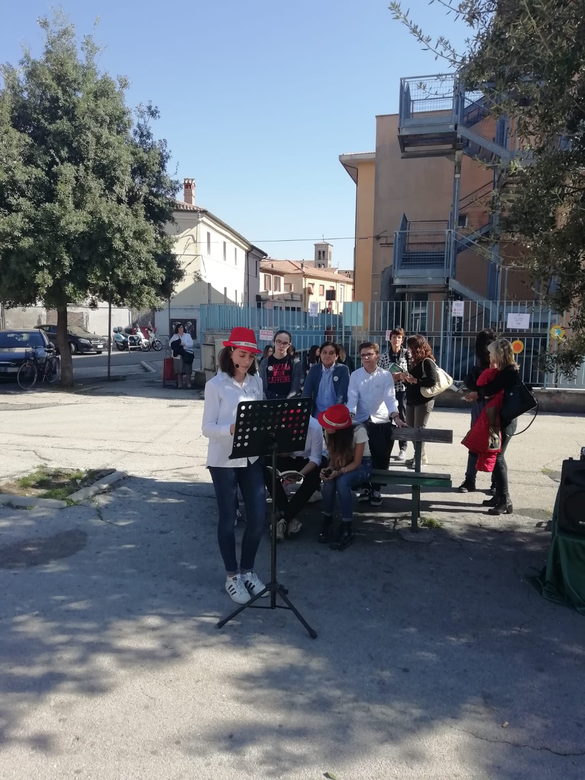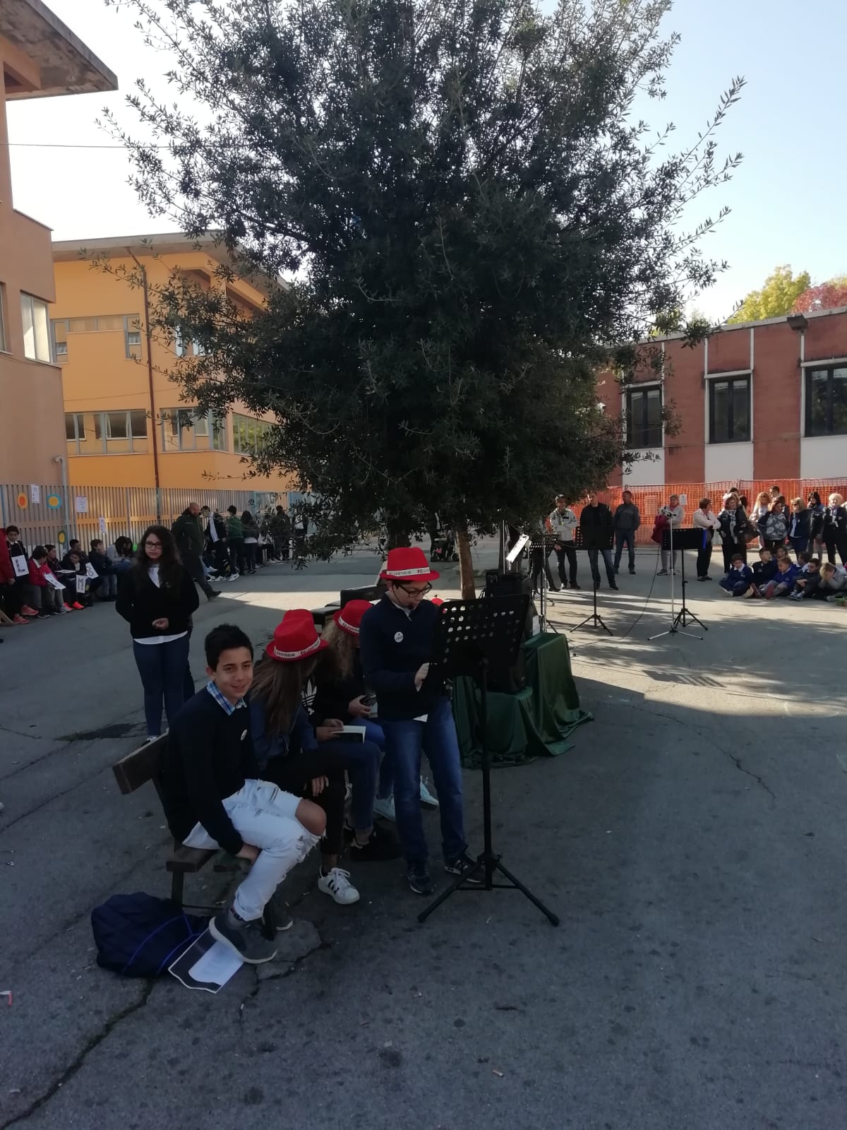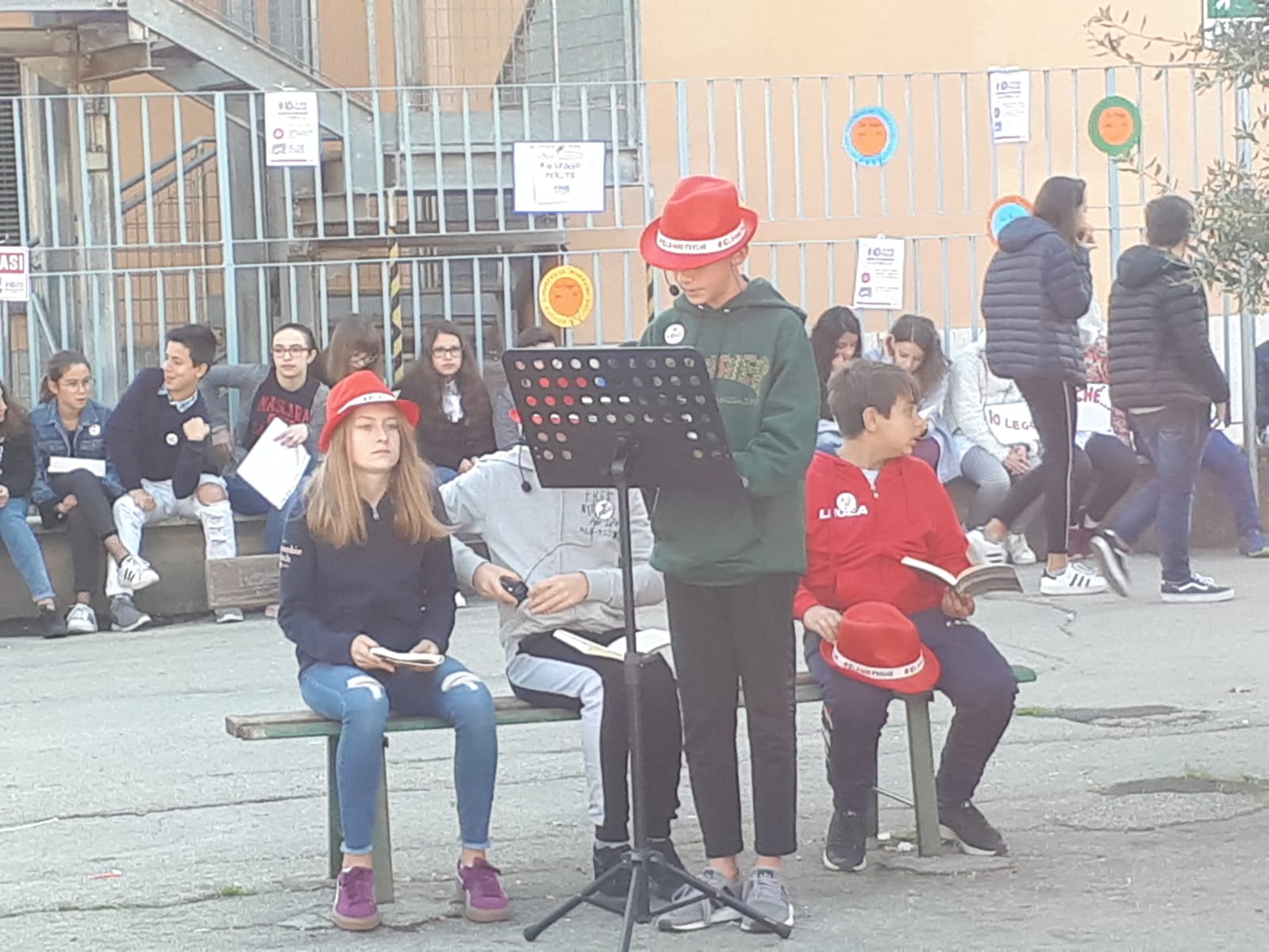 Tanti i motivi per cui, secondo i ragazzi, è bello leggere: perché “mi fa vivere tante avventure”, “mi fa viaggiare con la fantasia”, “conosco nuove storie”, “mi piace sognare”, “è bello”, “metto le ali e…”. Lo hanno condiviso con chi passava in largo Bonfante consegnando i segnalibri e lo hanno “testimoniato” dandosi il turno nel leggere integralmente un libro. Una mattinata di festa e di richiamo per le famiglie e per tutti quelli che si sono incontrati a passare, con gli alunni delle quinte elementari impegnati nell’attaccare i post-it sull’albero e nel distribuire i segnalibri, i bimbi della materna nel proporre una piccola e colorata coreografia di invito alla lettura, i ragazzi di seconda e terza media nella “maratona di lettura” che, voce dopo voce, ha sciorinato tutte le pagine del libro di Luigi Garlando Per questo mi chiamo Giovanni, dedicato alla memoria del giudice martire della mafia Giovanni Falcone. Il tutto allietato, nei momenti di pausa, dai clarinettisti, violinisti, pianisti e flautisti delle sezioni di strumento musicale della scuola secondaria.