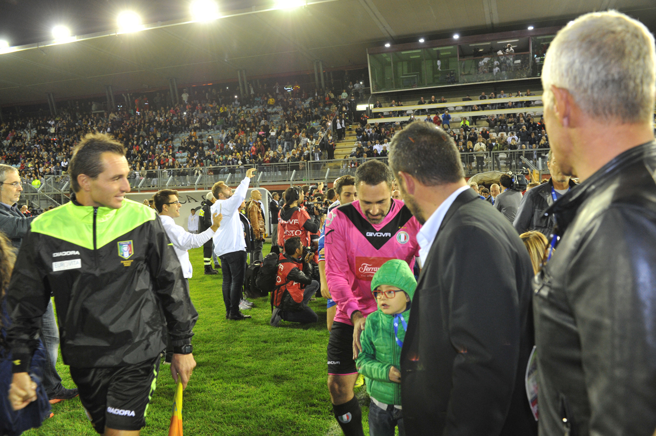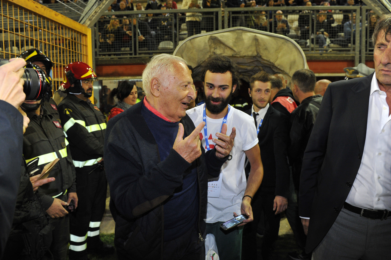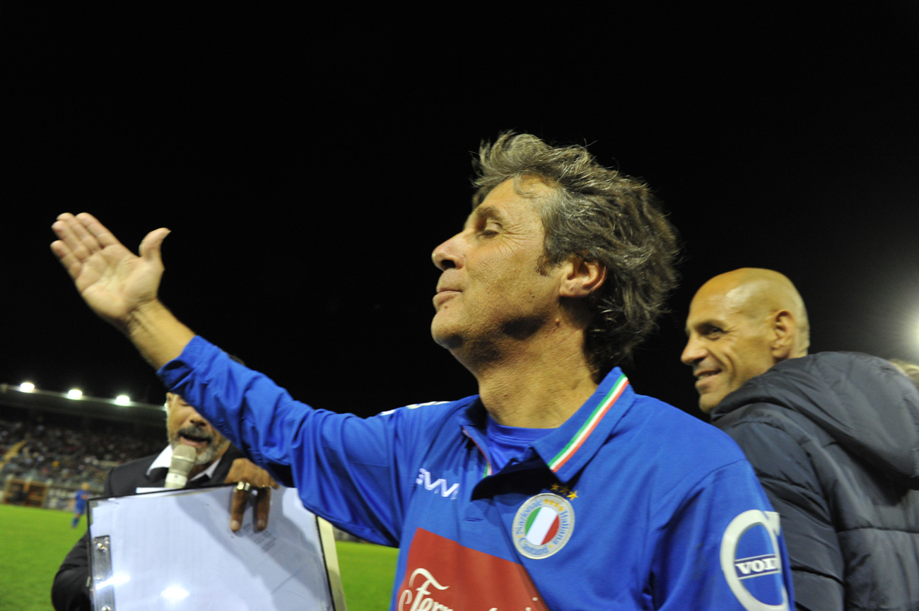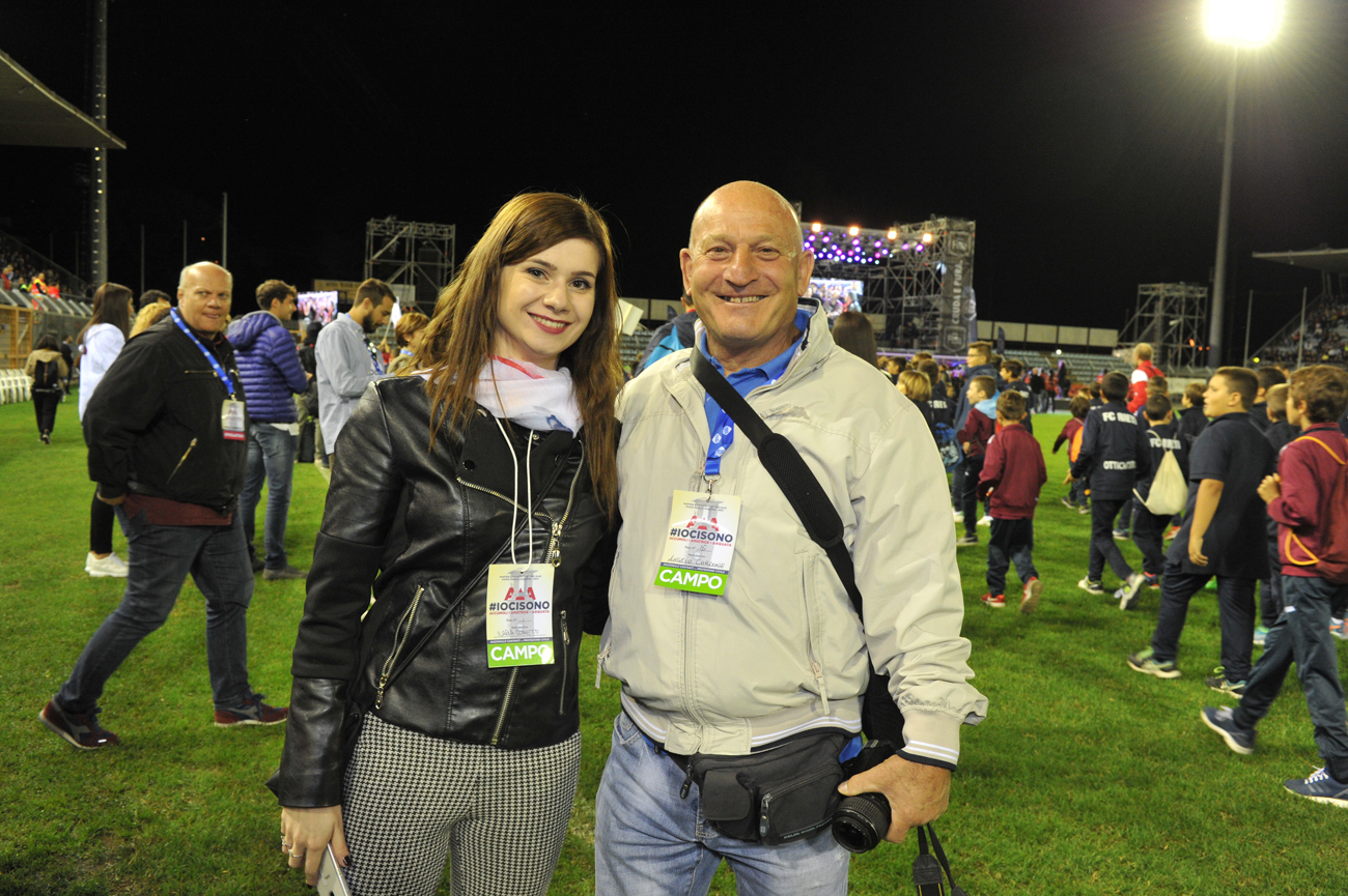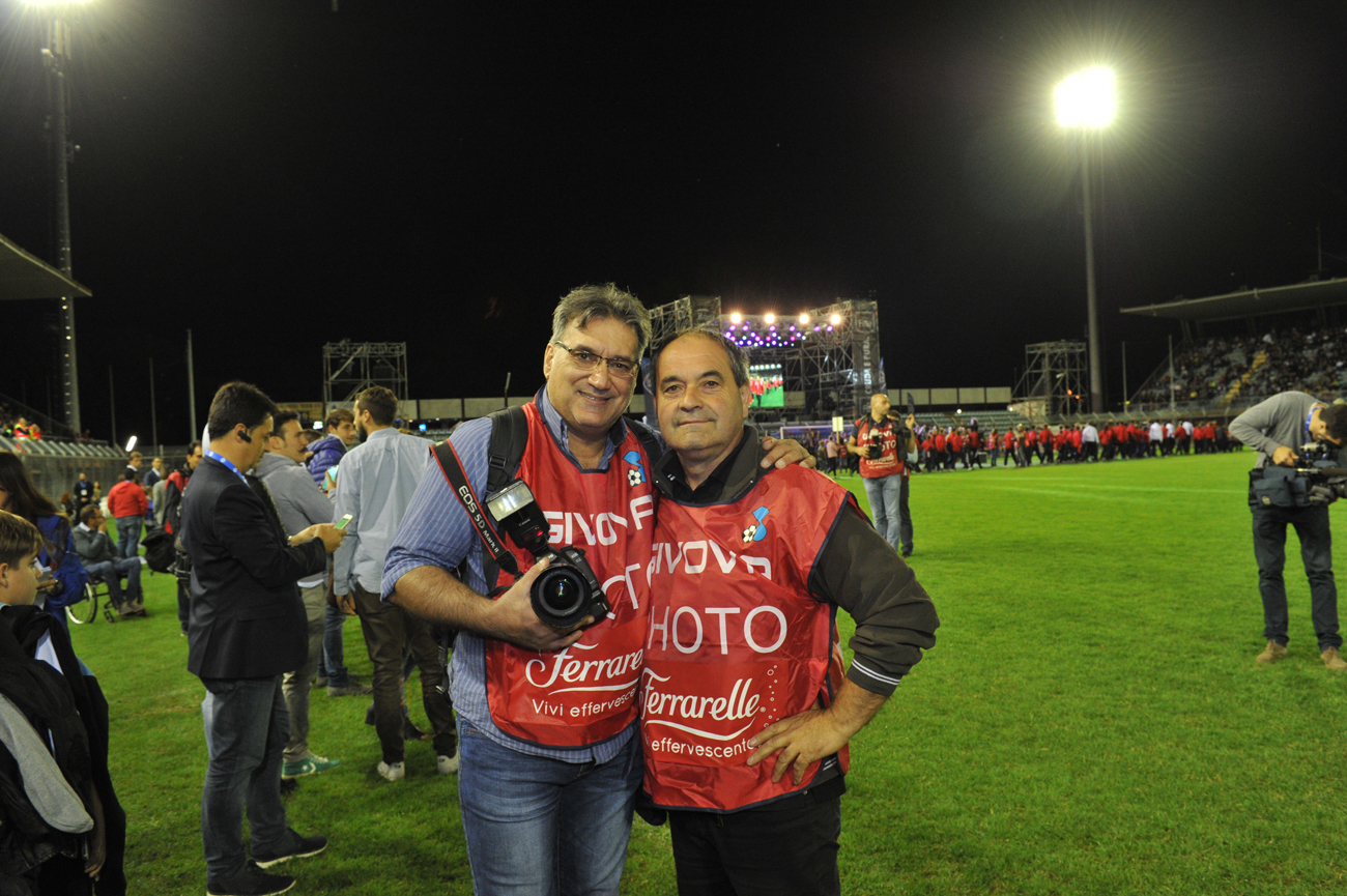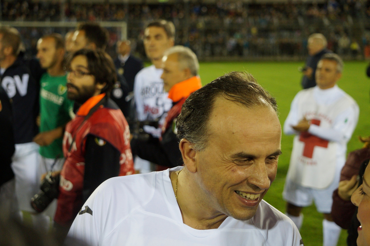 L’appuntamento è stato aperto dal canto di Andrea Bocelli, registrato il giorno prima tra le macerie di Amatrice, in contrappunto al testo francescano letto da Raoul Bova. Poi la discesa in campo delle squadre, con l’inno nazionale suonato dalla banda della Polizia di Stato, il “Sì!” all’unisono del pubblico.