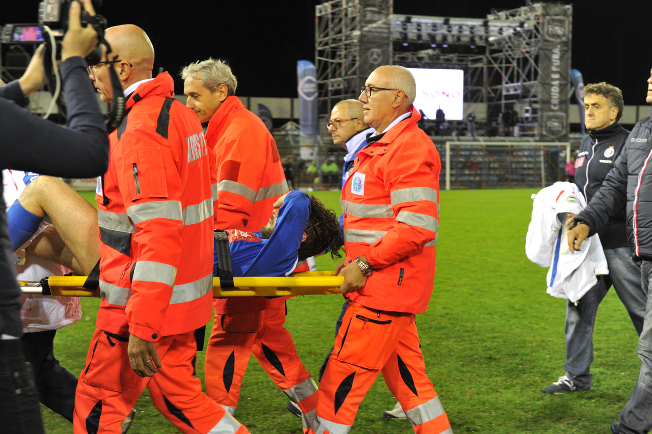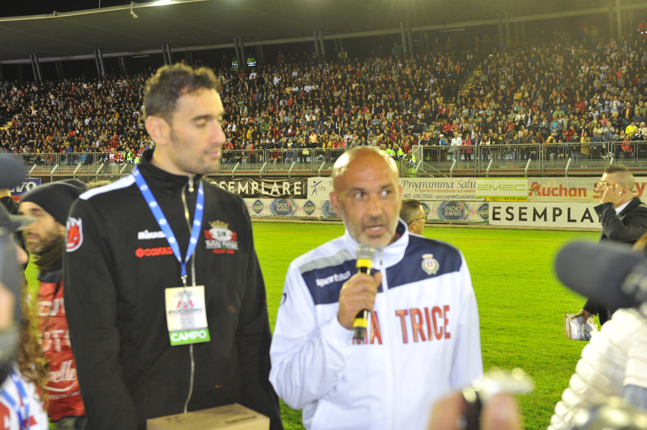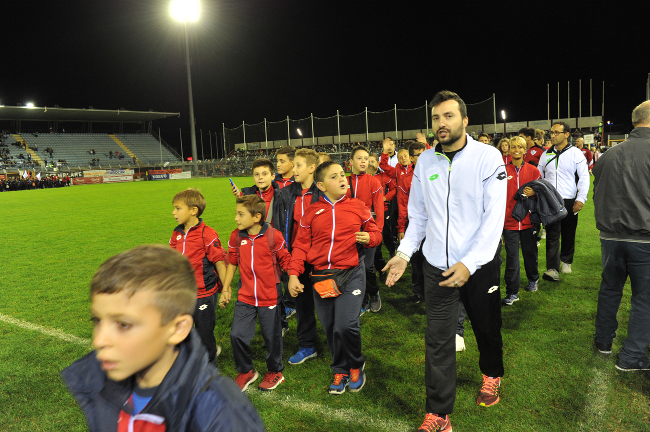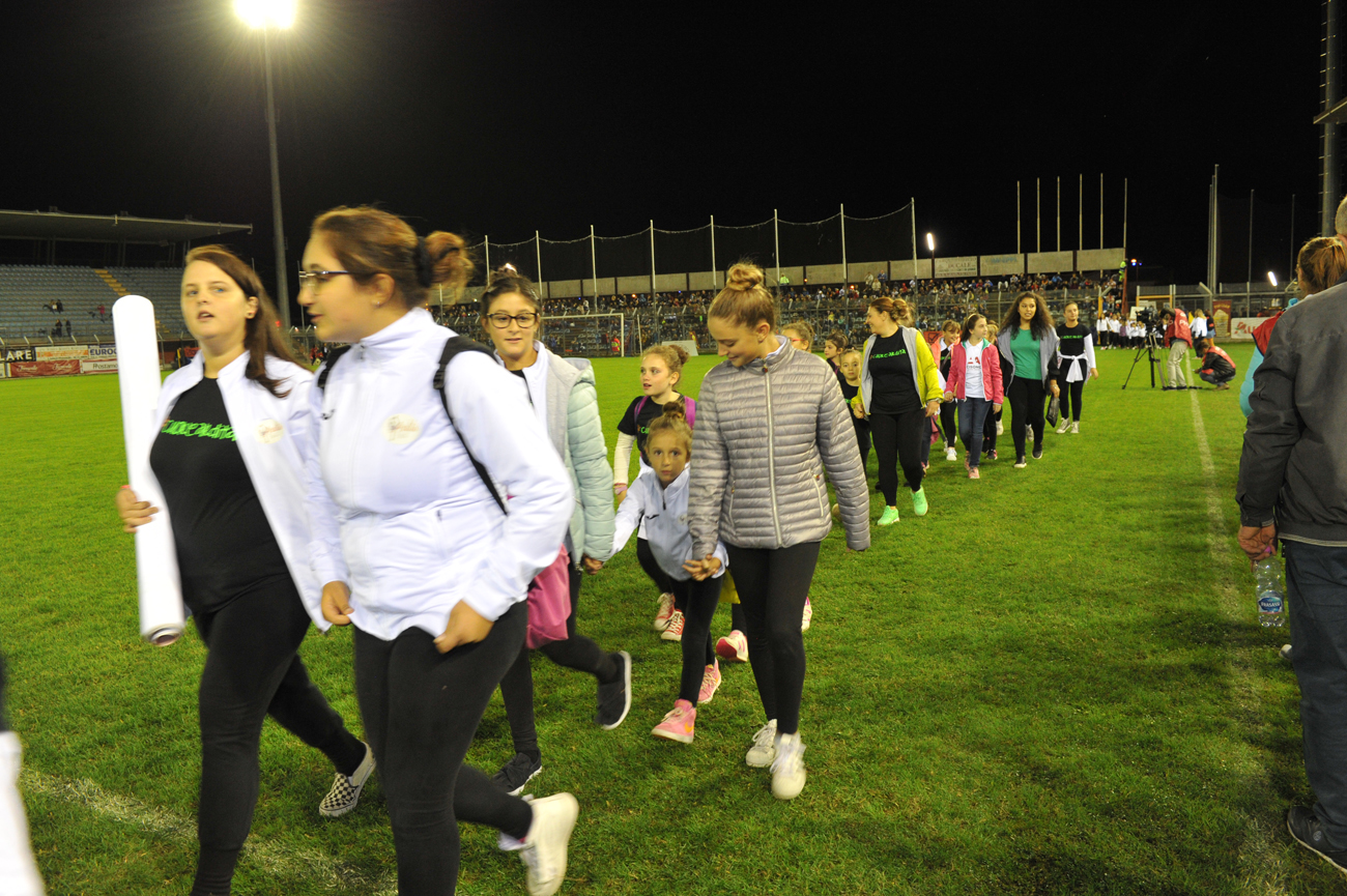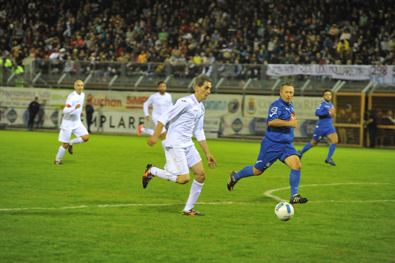 L’appuntamento è stato aperto dal canto di Andrea Bocelli, registrato il giorno prima tra le macerie di Amatrice, in contrappunto al testo francescano letto da Raoul Bova. Poi la discesa in campo delle squadre, con l’inno nazionale suonato dalla banda della Polizia di Stato, il “Sì!” all’unisono del pubblico.