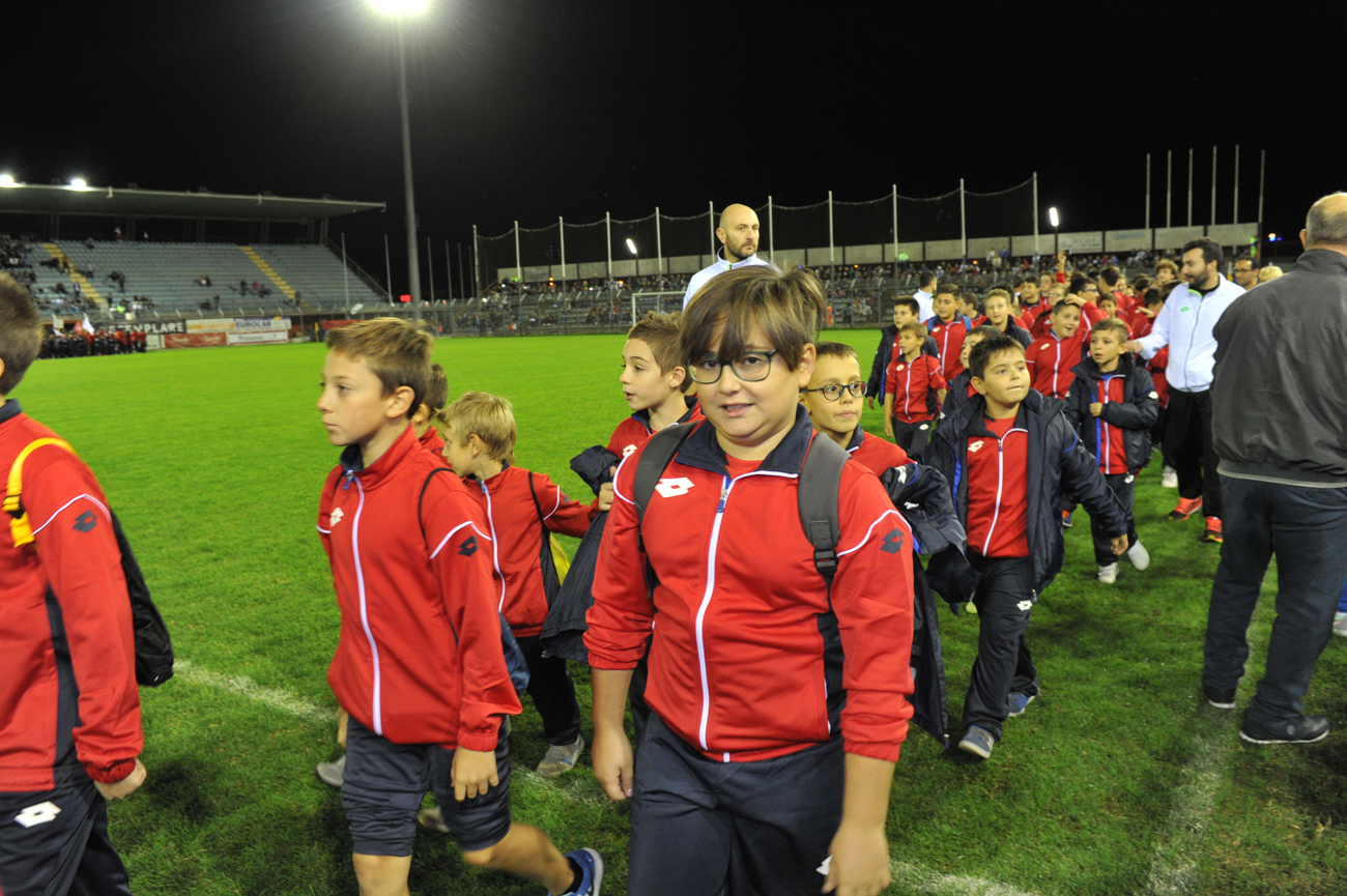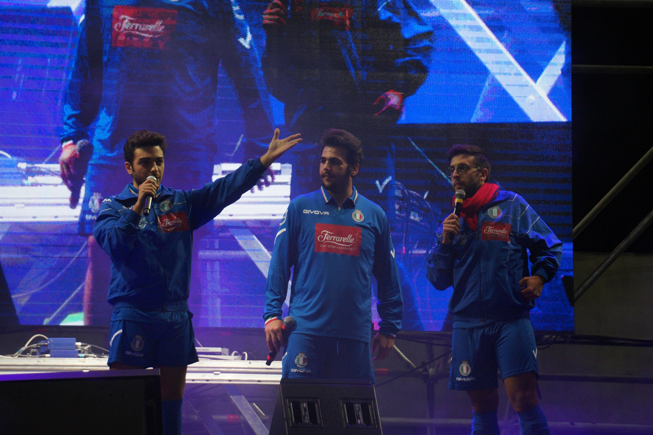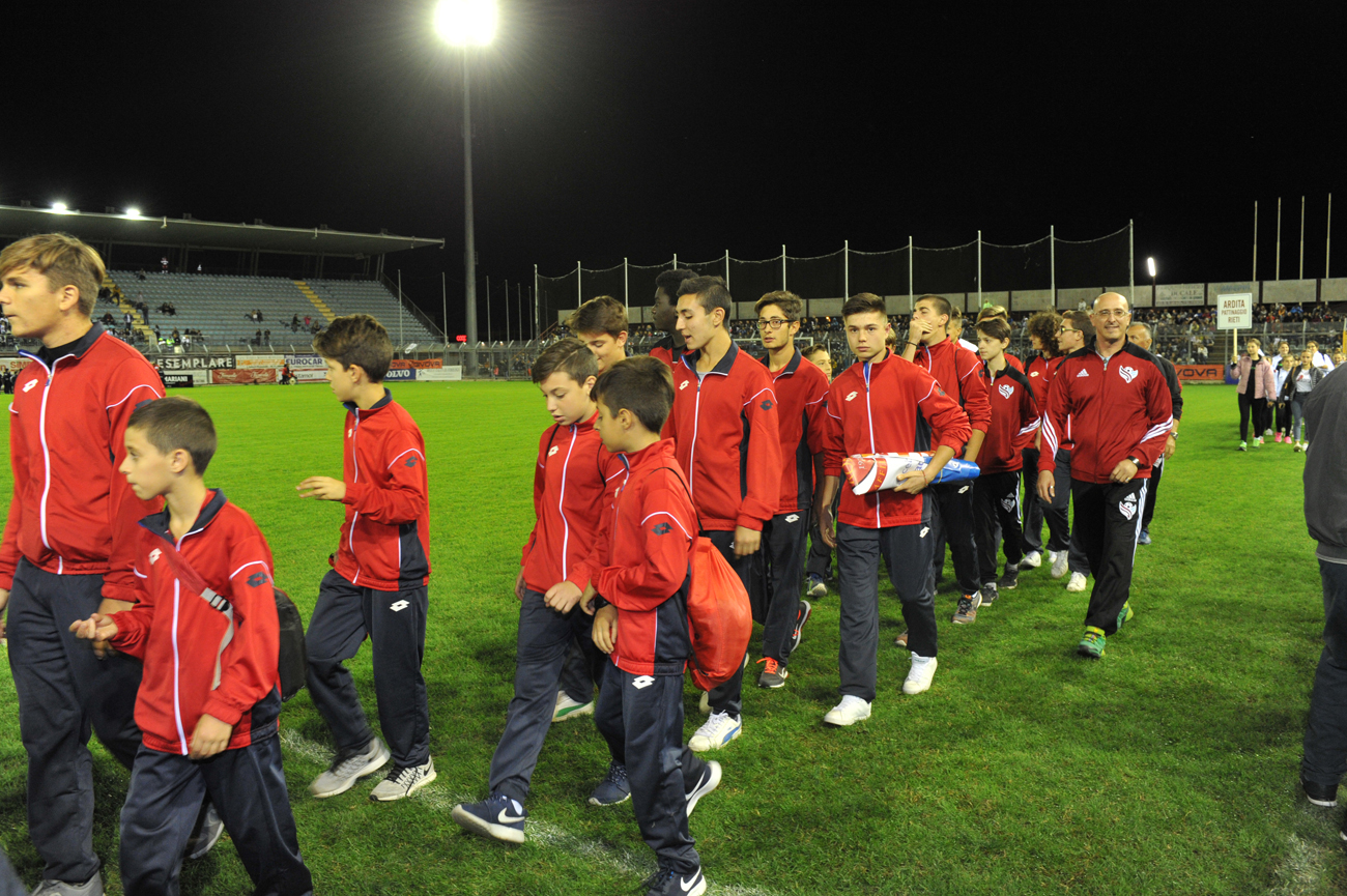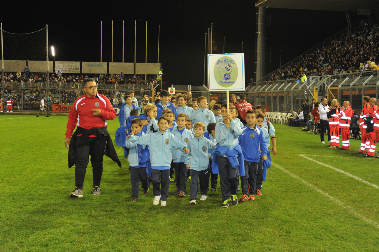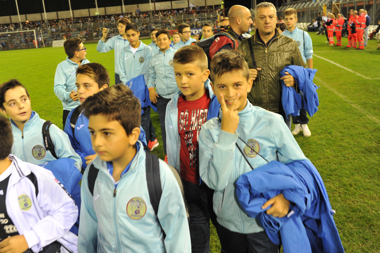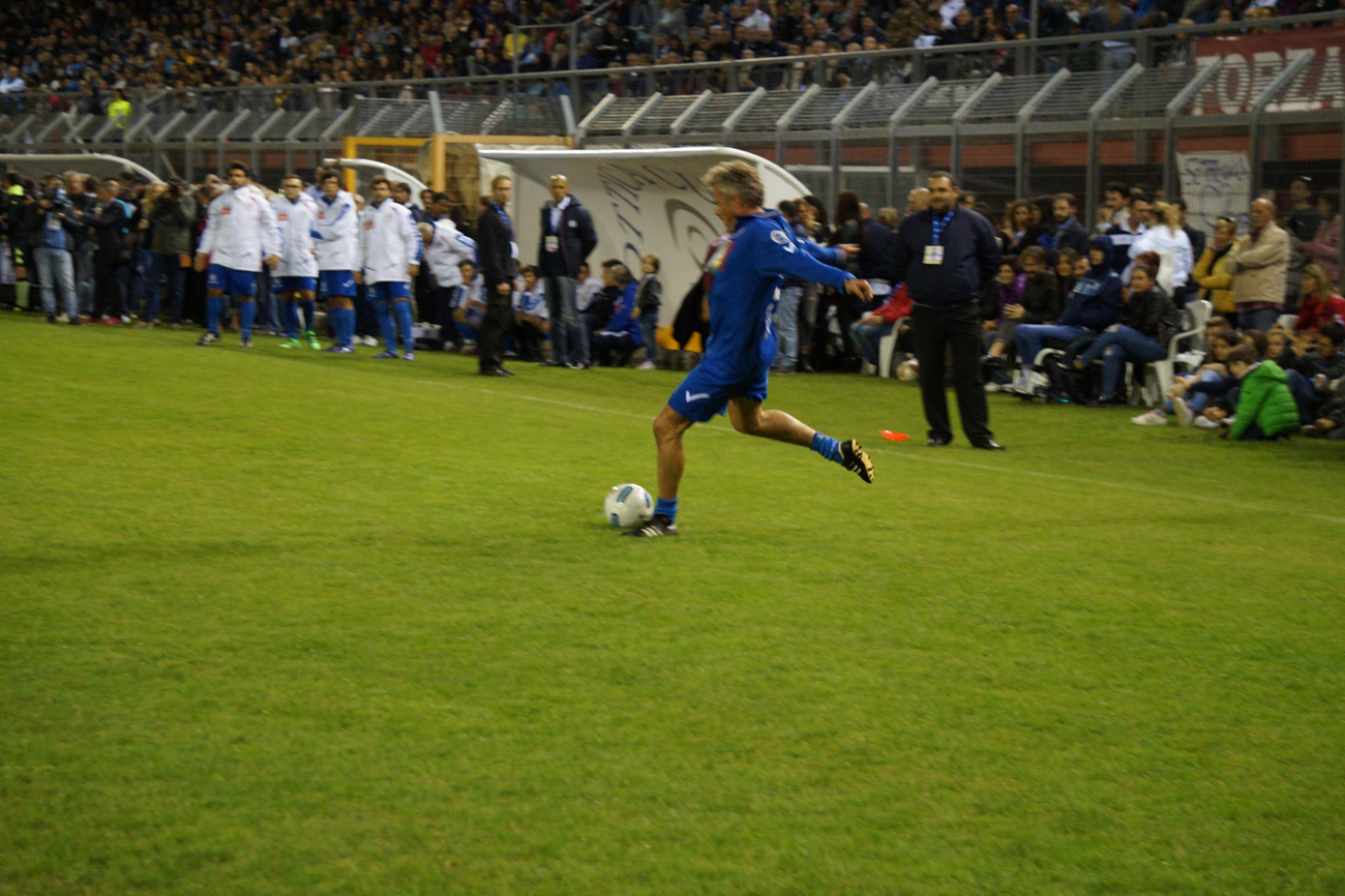 L’appuntamento è stato aperto dal canto di Andrea Bocelli, registrato il giorno prima tra le macerie di Amatrice, in contrappunto al testo francescano letto da Raoul Bova. Poi la discesa in campo delle squadre, con l’inno nazionale suonato dalla banda della Polizia di Stato, il “Sì!” all’unisono del pubblico.