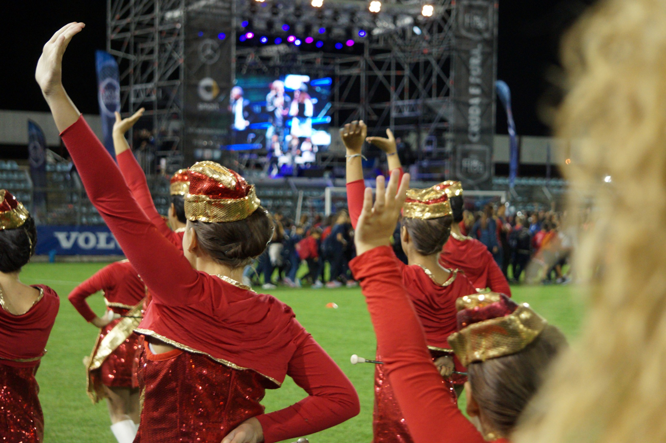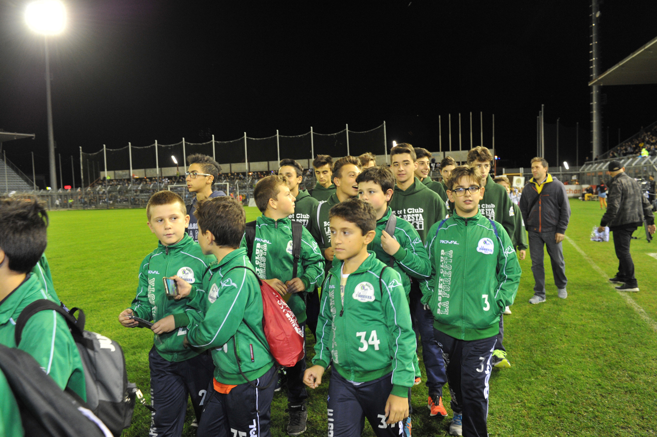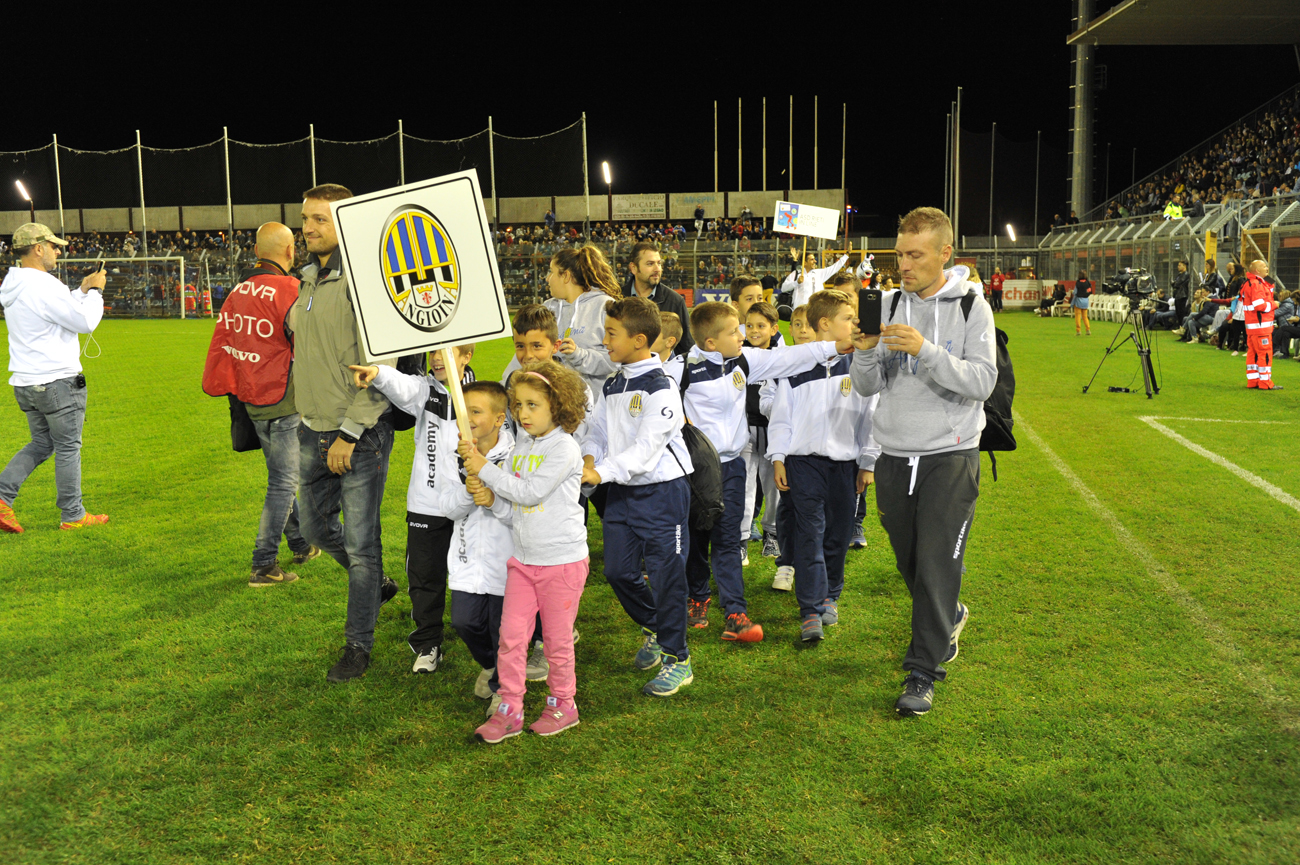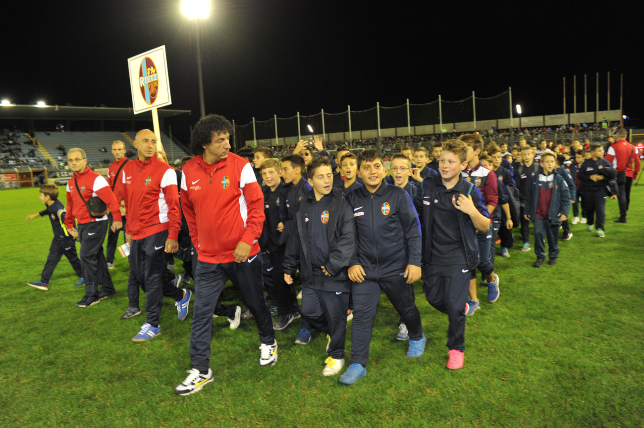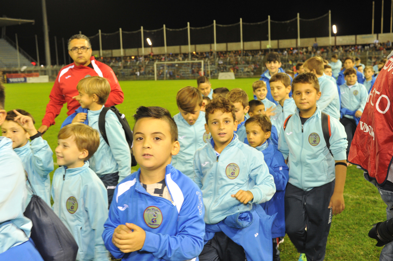 L’appuntamento è stato aperto dal canto di Andrea Bocelli, registrato il giorno prima tra le macerie di Amatrice, in contrappunto al testo francescano letto da Raoul Bova. Poi la discesa in campo delle squadre, con l’inno nazionale suonato dalla banda della Polizia di Stato, il “Sì!” all’unisono del pubblico.