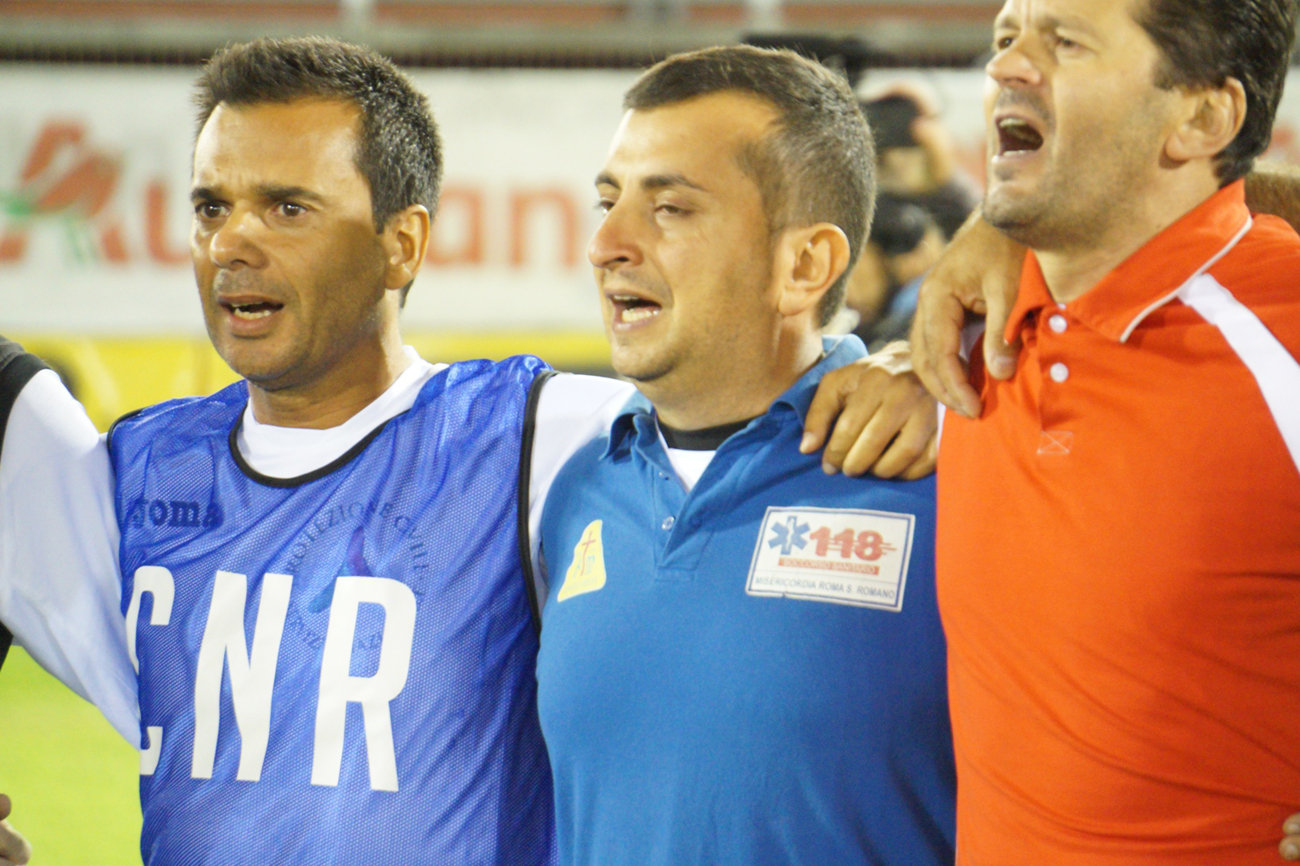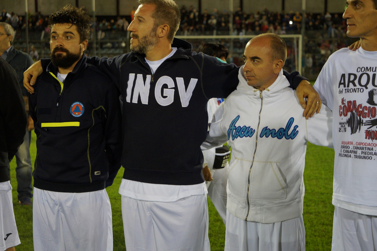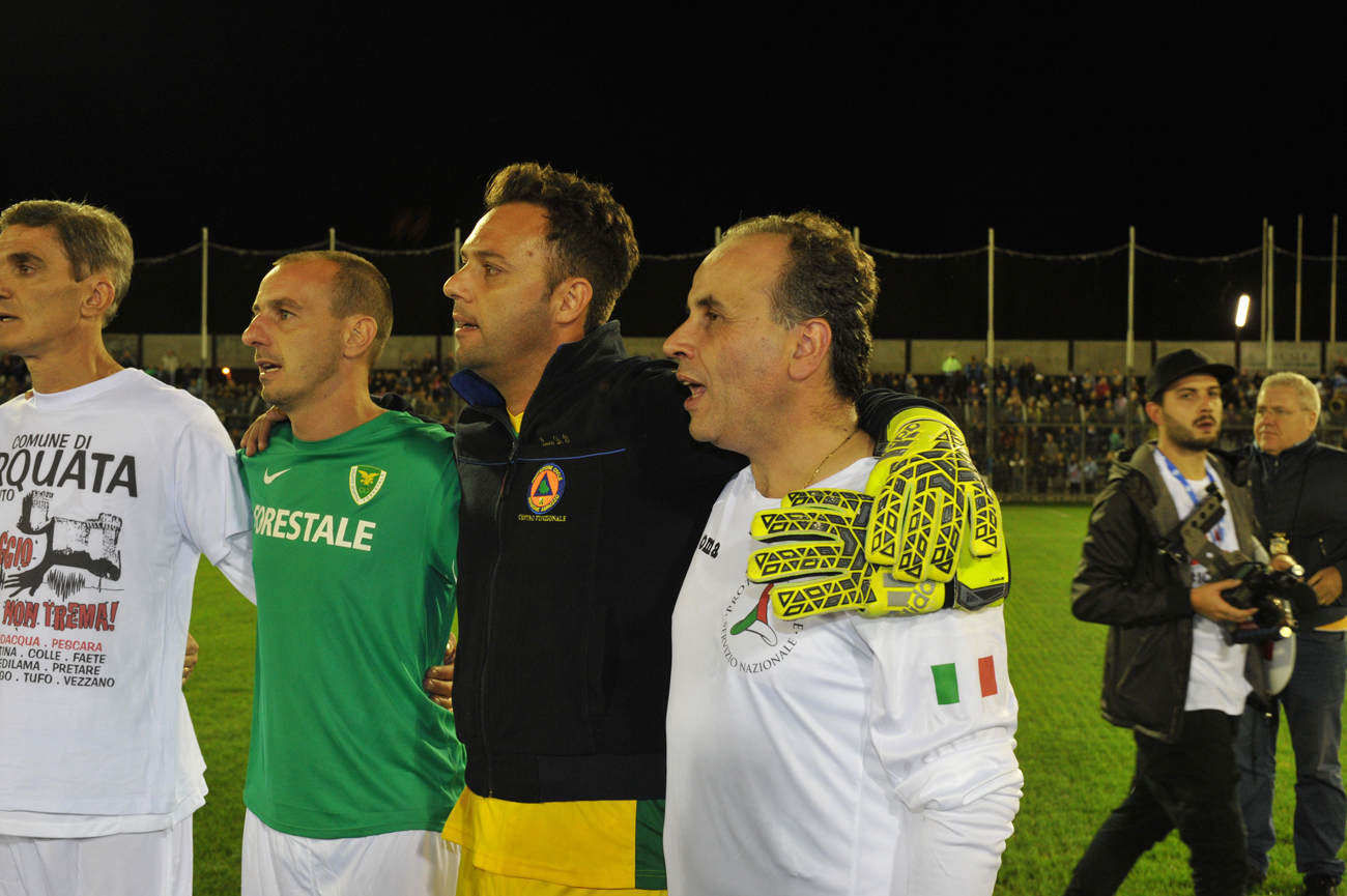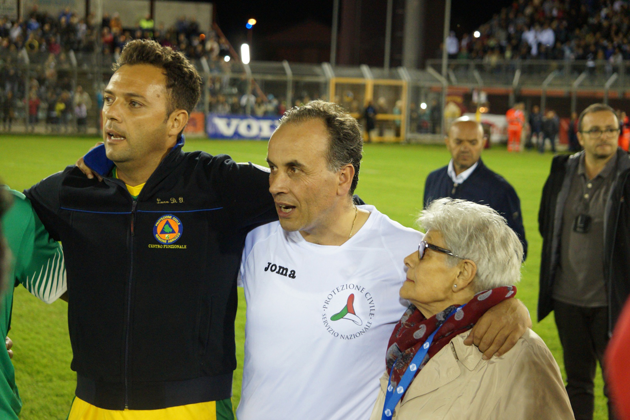 La partita, chiusa 3-2 per la Protezione civile, è stata piacevole, a tratti emozionante. Curioso vedere il vescovo Domenico giocare e sfiorare il gol nella porta presidiata da Raoul Bova. Ad allenare il team è stato il sindaco Pirozzi, mentre la fascia di capitano era al braccio di del capo dipartimento della Protezione Civile, Fabrizio Curcio.
