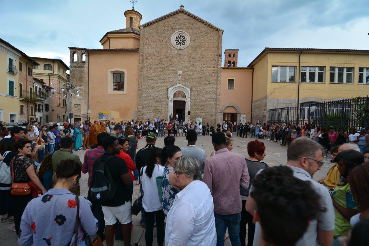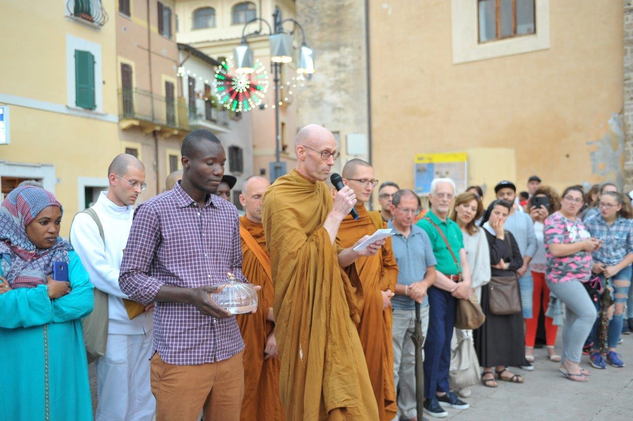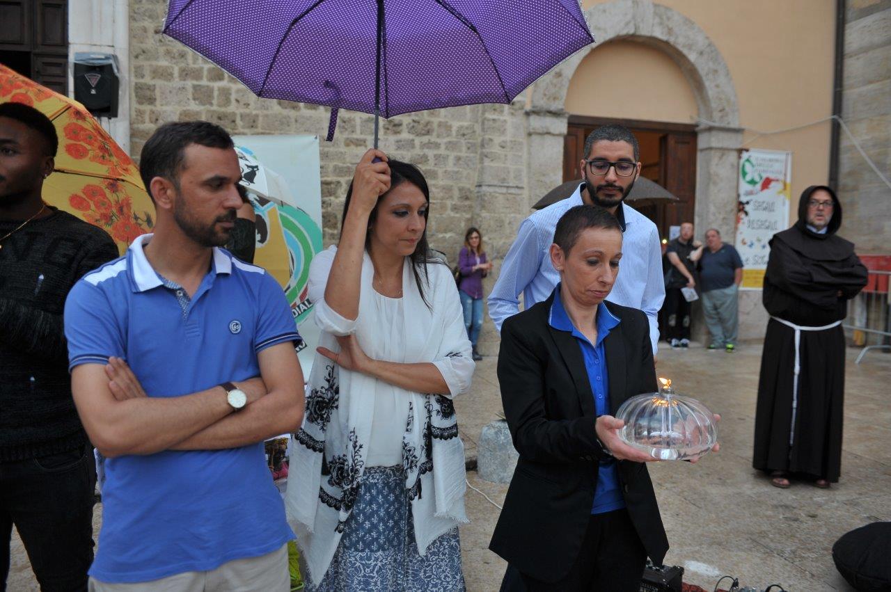 Un passaggio simboleggiato dall’accensione di una lampada tenuta a turno dal vescovo Domenico dall’imam Ahardan, dall’avventista Sabrina Casciola, da padre Gabriel degli ortodossi ucraini, da padre Kingsley della Glorius Gospel di Cristo, dai monaci buddisti di Santacittarama di Poggio Nativo, e dai buddisti di Soka Gakkai.