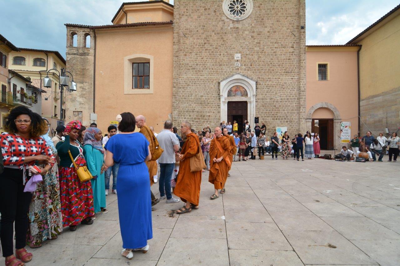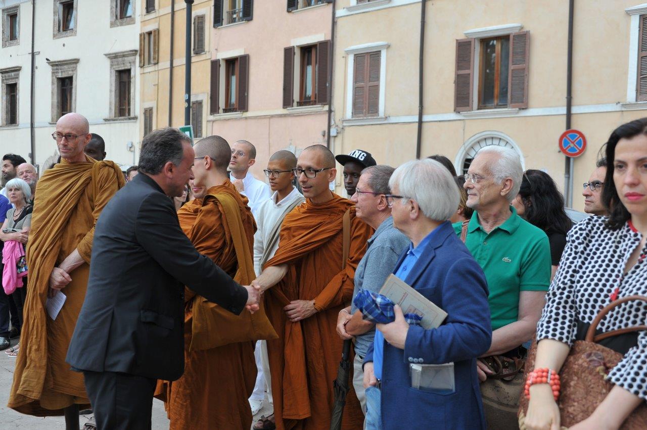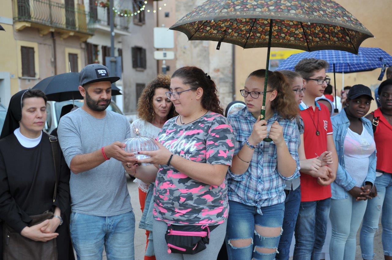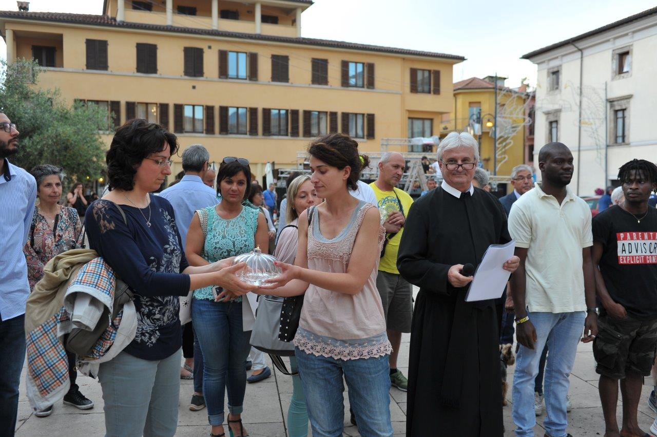 Un passaggio simboleggiato dall’accensione di una lampada tenuta a turno dal vescovo Domenico dall’imam Ahardan, dall’avventista Sabrina Casciola, da padre Gabriel degli ortodossi ucraini, da padre Kingsley della Glorius Gospel di Cristo, dai monaci buddisti di Santacittarama di Poggio Nativo, e dai buddisti di Soka Gakkai.