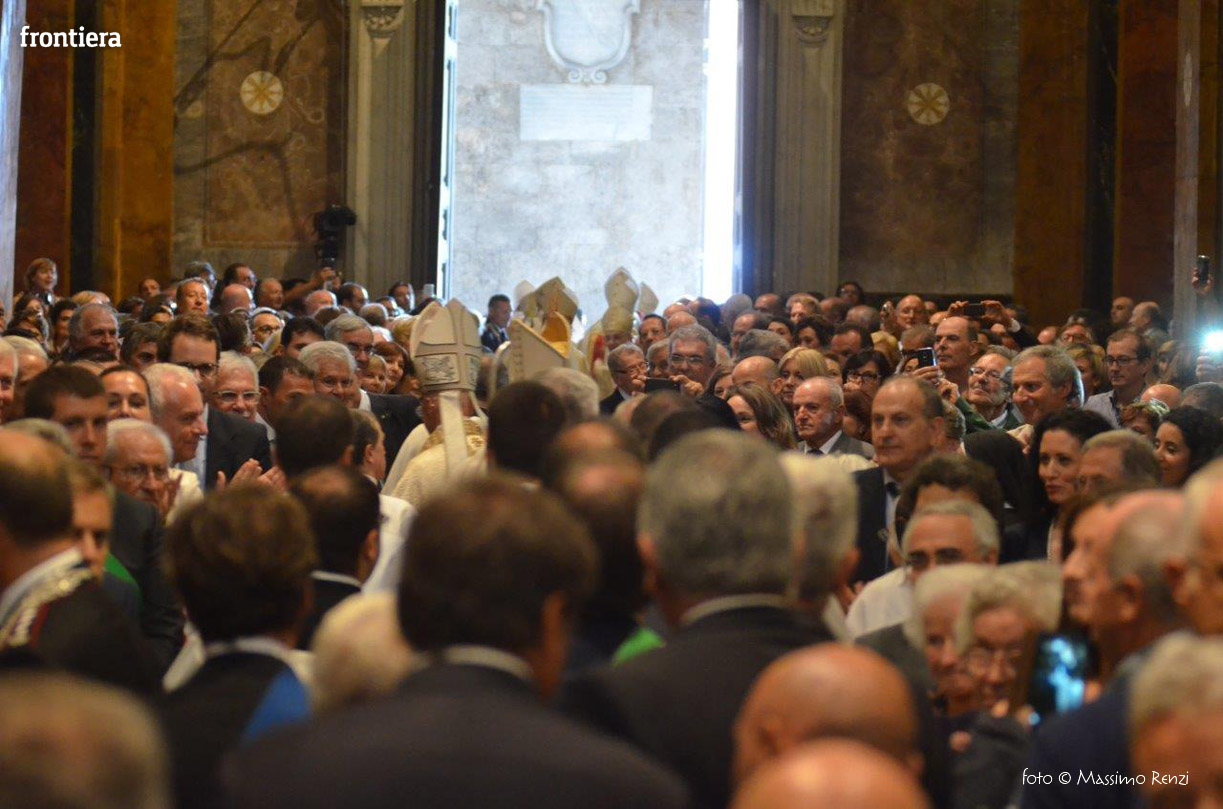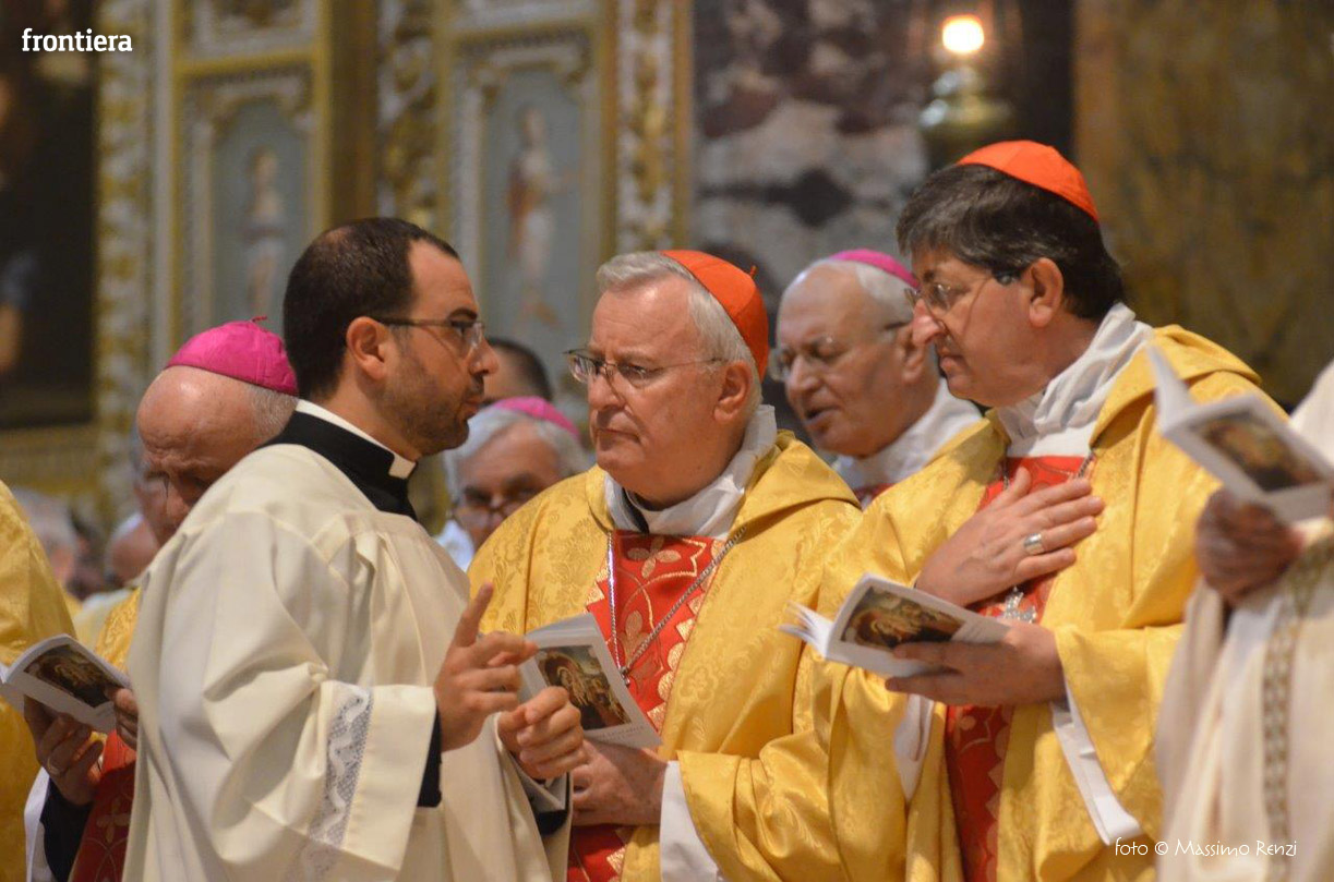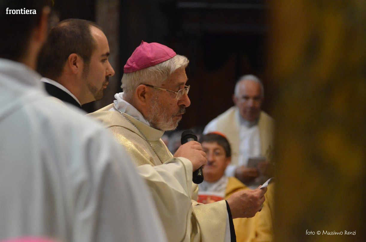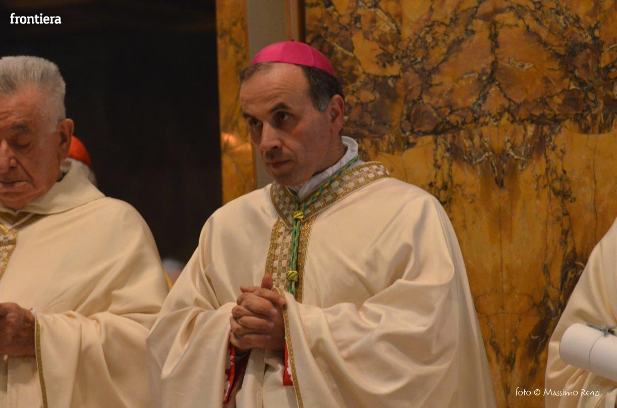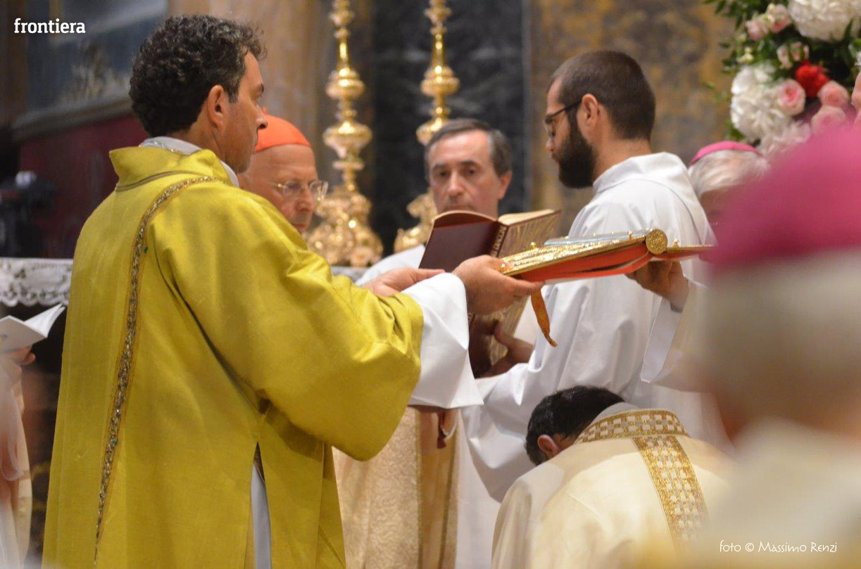 La liturgia festosa e solenne dell’ordinazione di monsignor Pompili si è compiuta senza soluzione di continuità con l’insediamento sulla cattedra, che insieme con il pastorale è simbolo del mandato episcopale che si manifesta nella guida e l’insegnamento dottrinale.