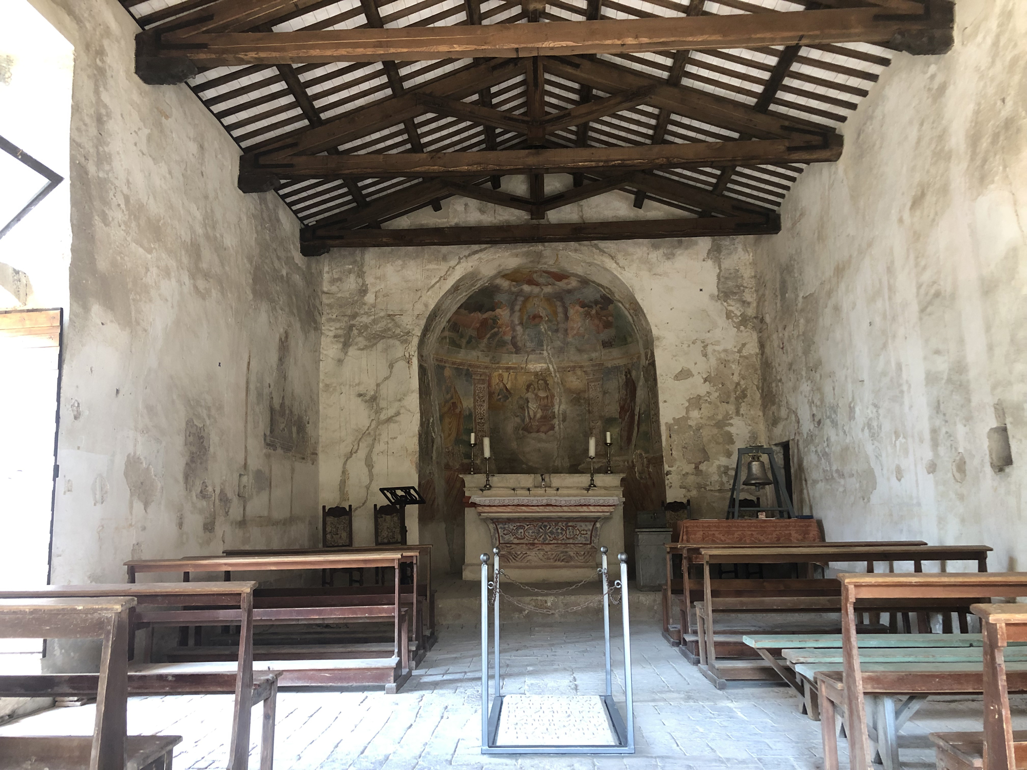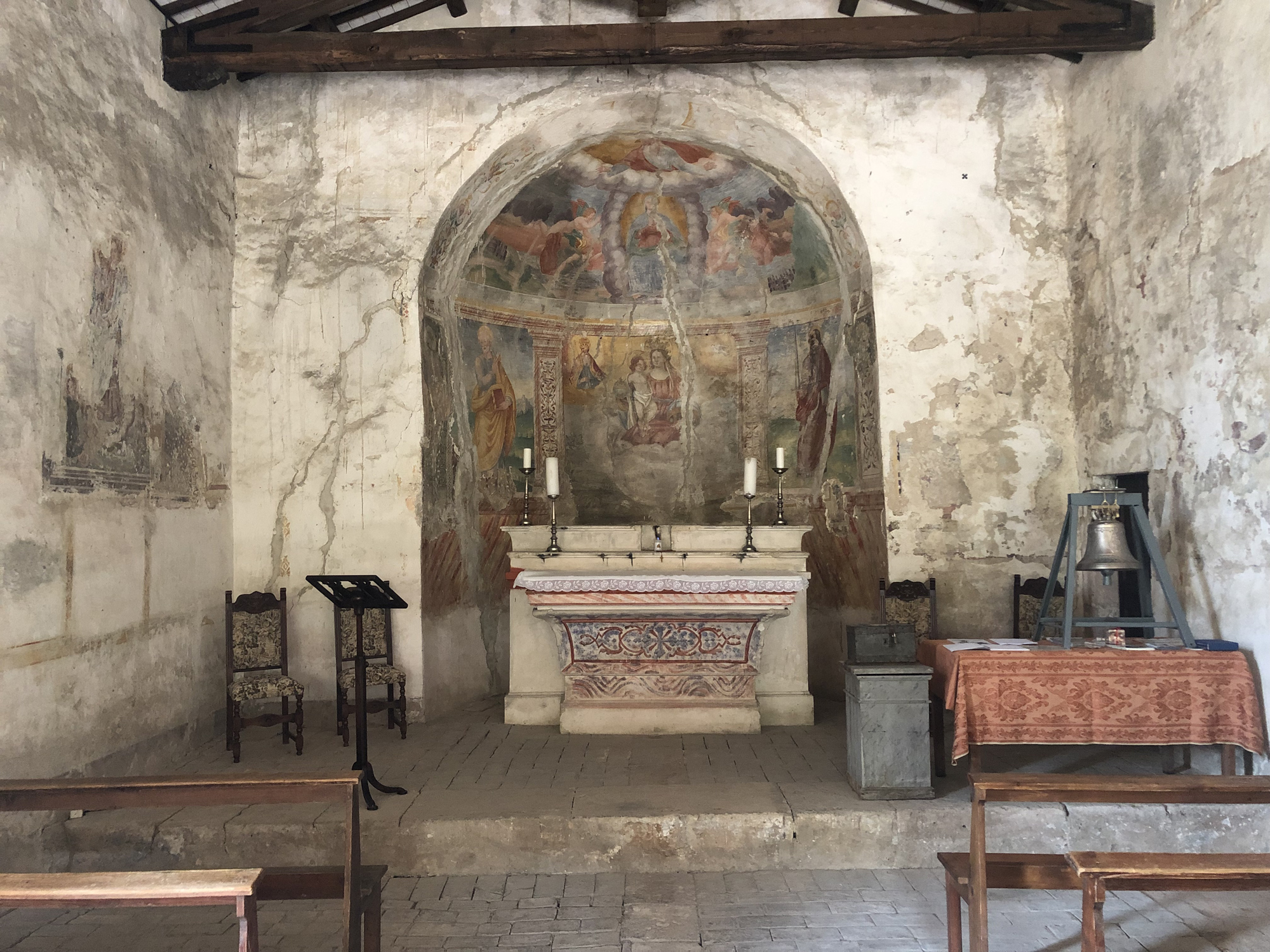 Ma cosa rende questa chiesa davvero importante? La risposta va senz’altro rintracciata al suo interno. Oltre ai bellissimi affreschi che sorgono a ridosso dell’altare e al tetto di recente riedificazione, a colpire l’attenzione è una lapide del 1620 posta al centro della navata dal vescovo Pietro Paoli Quintavalle in occasione dei lavori di ristrutturazione.
