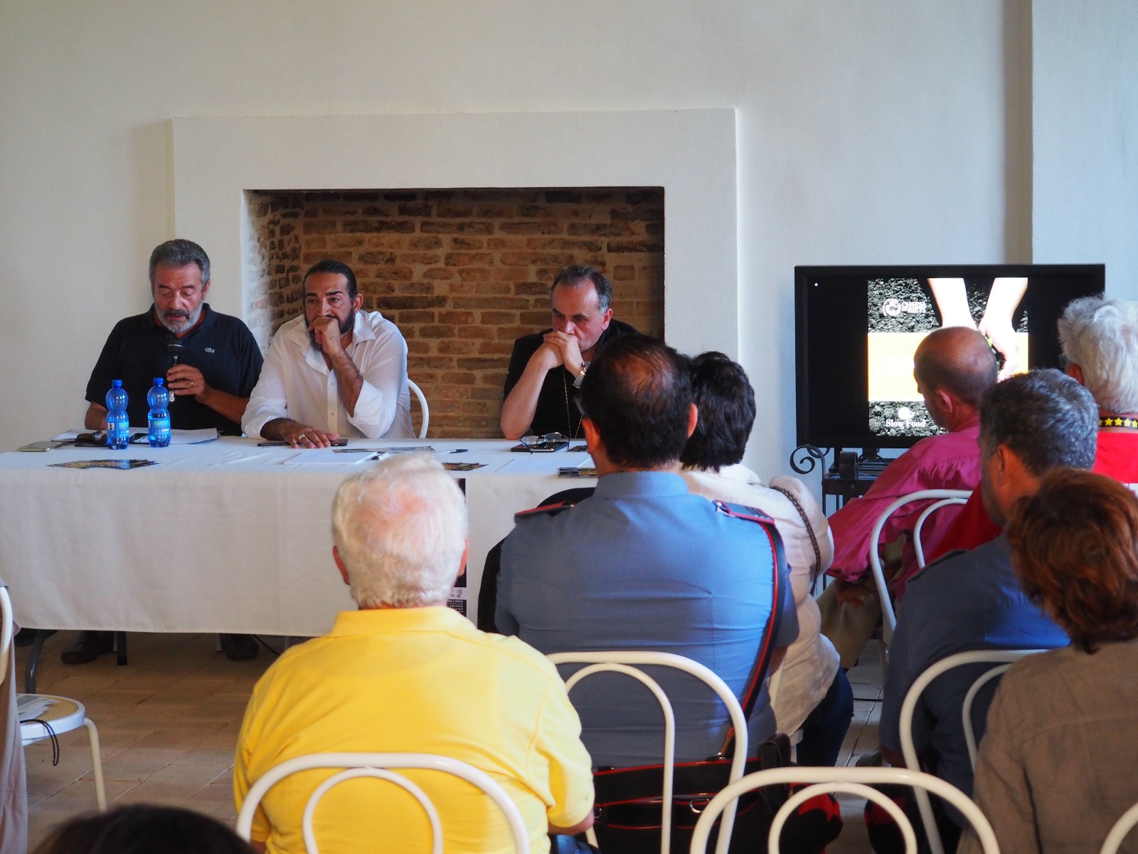 Monsignor Pompili ha illustrato il progetto delle Comunità, partendo da una riflessione globale sull’argomento. «Vorrei fare tre premesse che individuano altrettanti punti. Il primo ha a che fare con un concetto che appare quasi aristocratico, mentre è invece molto popolare, le minoranze creative. Ogni qualvolta si da’ l’avvio a un percorso nuovo che intercetta istanze vere c’è sempre da fare i conti con gruppi che dal punto di vista della quantità sono minoritari ma che hanno la capacità di individuare quello di cui c’è veramente bisogno. Le minoranze creative non sono dunque elitarie o portatrici di chissà quale missione, ma hanno la realistica consapevolezza che anche intorno al tema dell’ecologia la cosiddetta massa popolare segue “a rimorchio” , nel senso che questa sensibilità non è così diffusa come crediamo. La stessa enciclica a tre anni dalla pubblicazione non ha avuto chissà quale riscontro, è per questo che è necessario che si siano persone che avvertite dell’importanza del tema si facciano carico di tenerlo sempre vivo: c’è dunque bisogno di minoranze creative che si inventino sempre cose nuove tenere alta l’attenzione su questi temi. Il secondo punto guarda al rapporto tra ecologia ed economia, correlazione che qualche decennio fa non era così chiara, anzi i due argomenti apparivano inconciliabili, e apparivano come due rette parallele senza intersecarsi. Sono invece strettamente legati. Oggi, chiunque voglia farsi carico di Paesi economicamente svantaggiati, o ridistribuire meglio la ricchezza, non può non tener conto della variabile ecologica. Ecologia ed economia oggi vanno considerate congiuntamente, e questo sottolinea la rilevanza sociale del tema. Il terzo punto non può non illustrare l’idea delle Comunità Laudato si’, concepita insieme a Slow Food e il suo fondatore Carlo Petrini. Tutto è nato da un fatto concreto come il terremoto, rispetto al quale ci si chiedeva cosa si sarebbe potuto fare di fattivo. Essendo il terremoto una manifestazione catastrofica che lega uomo e ambiente si è pensato alle Comunità: proprio perché il concetto di comunità evoca un qualcosa che ha come collante quella dimensione affettiva che è un impasto di relazioni, condivisioni, persuasioni che è la forza trainante oggi in una società molto asfittica e individualistica, e che può trovare attraverso una comunità concreta quell’energia anche affettiva per perseguire un obiettivo comune. Una parola dunque non scelta a caso quella di “Comunità”, a sottolineare come la dimensione affettiva sia il propellente necessario a smuovere le persone, in questo caso per agire localmente, facendo cose piccole ma pensate in grande, anche nei nostri territori piccoli in termini di dimensioni».