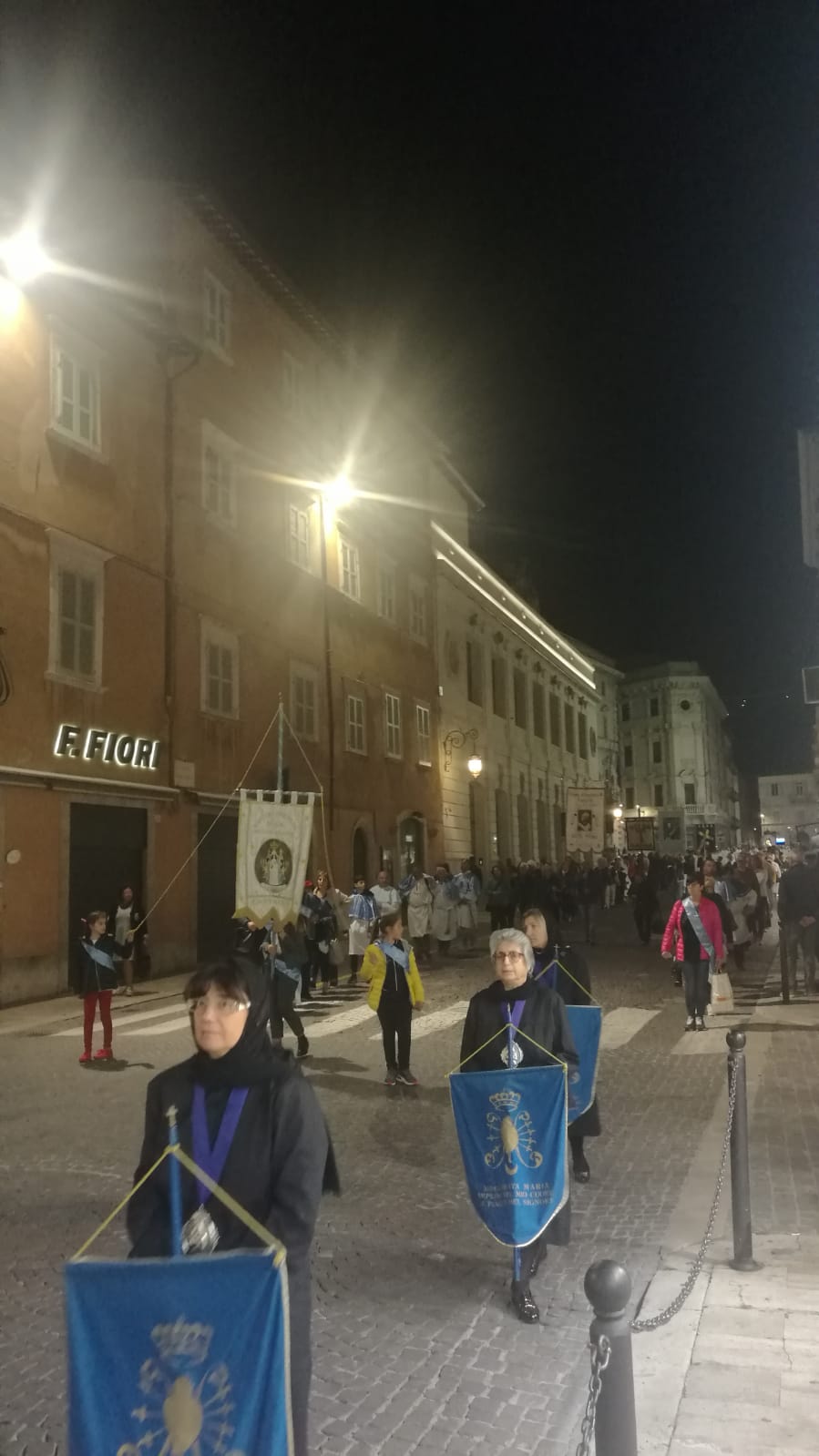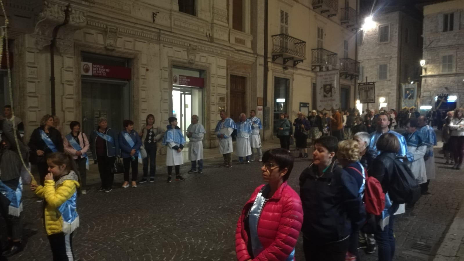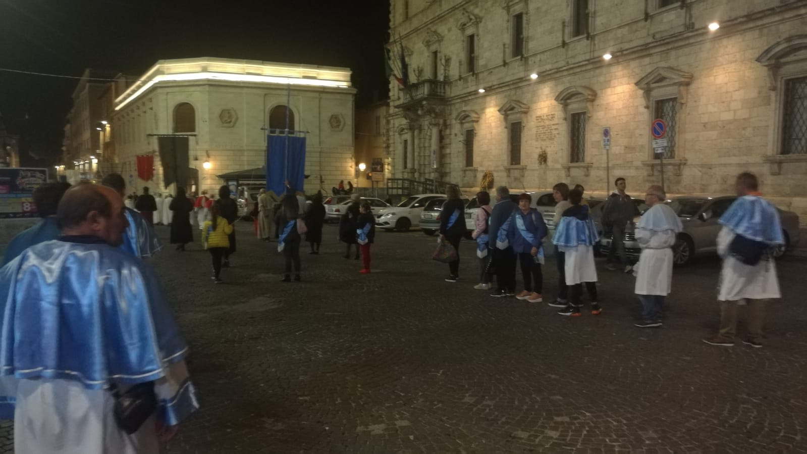 A seguire, i confratelli della Madonna delle Grazie di Cantalice hanno indossato l’amatissimo saio bianco con mantellina azzurra e sfilato insieme ai colleghi ascolani per le vie dello splendido centro storico, ancor più suggestivo al calar della notte.