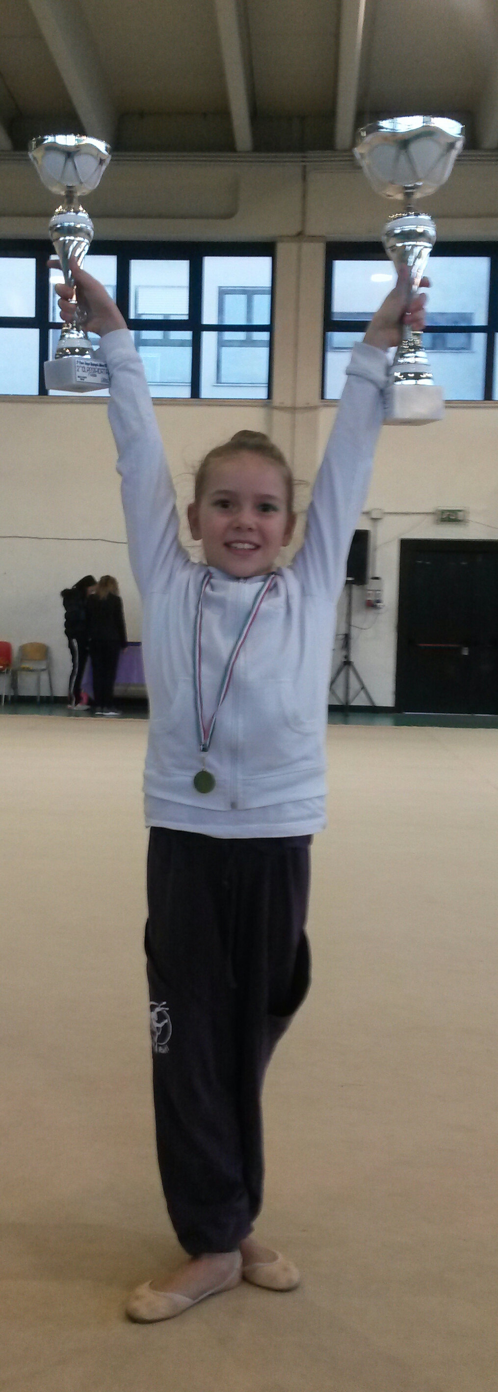 È stata una splendida giornata piena di emozioni per le ginnaste della Eos, la prima competizione agonistica federale alla quale hanno preso parte si è verificata subito vincente. Silvia ha eseguito prima l’esercizio con la palla, che è stato apprezzato dalla giuria di gara per la bellissima coreografia, con il maneggio d’attrezzo molto complesso e difficile nonostante la giovane età di Silvia, ottenendo un ottimo punteggio di 11.800.