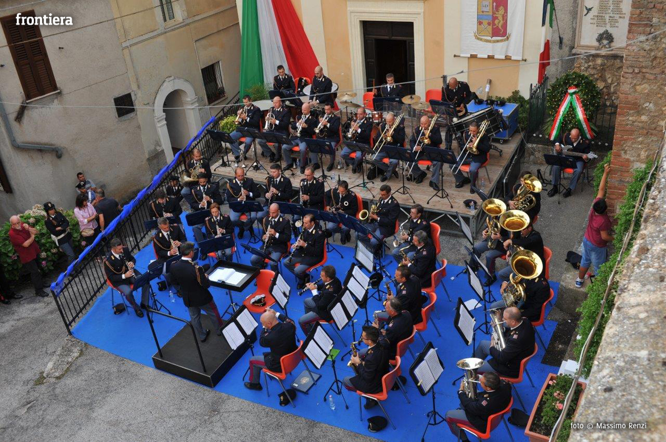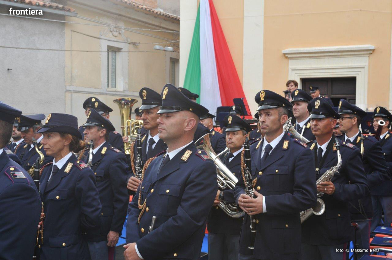 La cerimonia, aperta dalla Banda dei “padroni di casa”, ha compreso la deposizione di una corona d’alloro ai caduti delle due guerre mondiali alla presenza di autorità civili e militari. Poi la Fanfara della Polizia ha entusiasmato la piazza entrando nel vivo di un repertorio che va dall’Opera alle musiche per il cinema di Ennio Morricone, per poi spingersi ai confini della musica leggera italiana. Al termine la marcia d’ordinanza e l’Inno d’Italia.