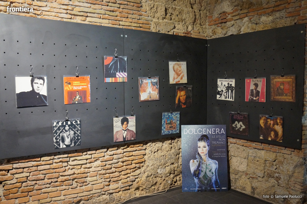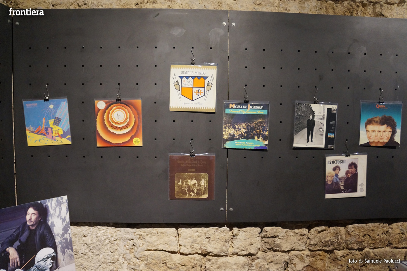 Alle pareti dello spazio espositivo un piccolo campionario, che speriamo venga ulteriormente arricchito, nel quale vengono presentate pietre miliari della storia del rock (Pink Floyd, John Lennon, Stevie Wonder), ma anche affiancate registrazioni poco comuni come The Theatre Of Eternal Music di La Monte Young a edizioni particolari di icone della pop music. Di Sting, ad esempio, è presente una stampa in 12 pollici (ma ne esiste anche una in 10 pollici) dell’Ep …Nada como el sol, sul quale sono incise le versioni in portoghese e spagnolo di cinque tracce estratte dall’album capolavoro …Nothing Like the Sun.