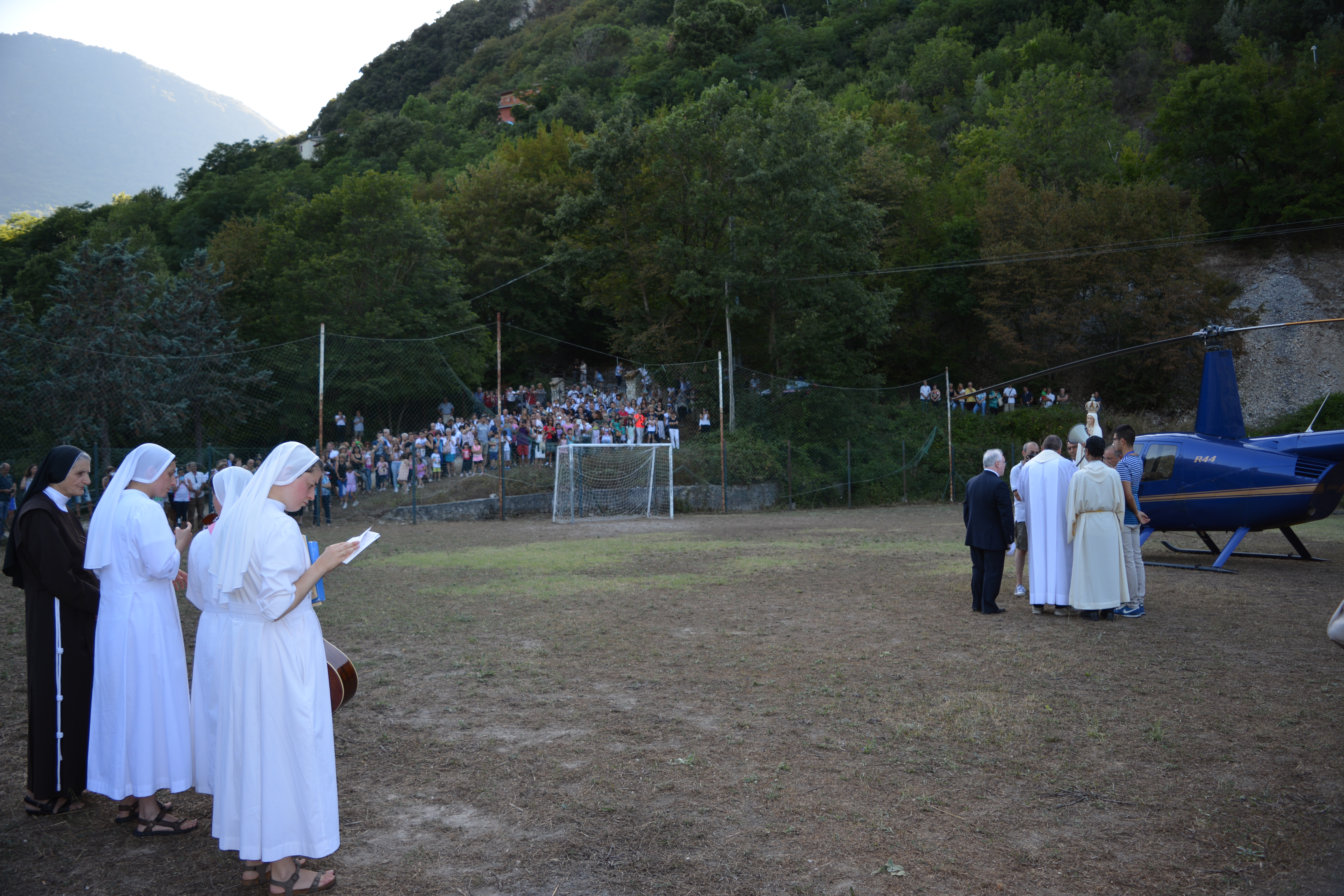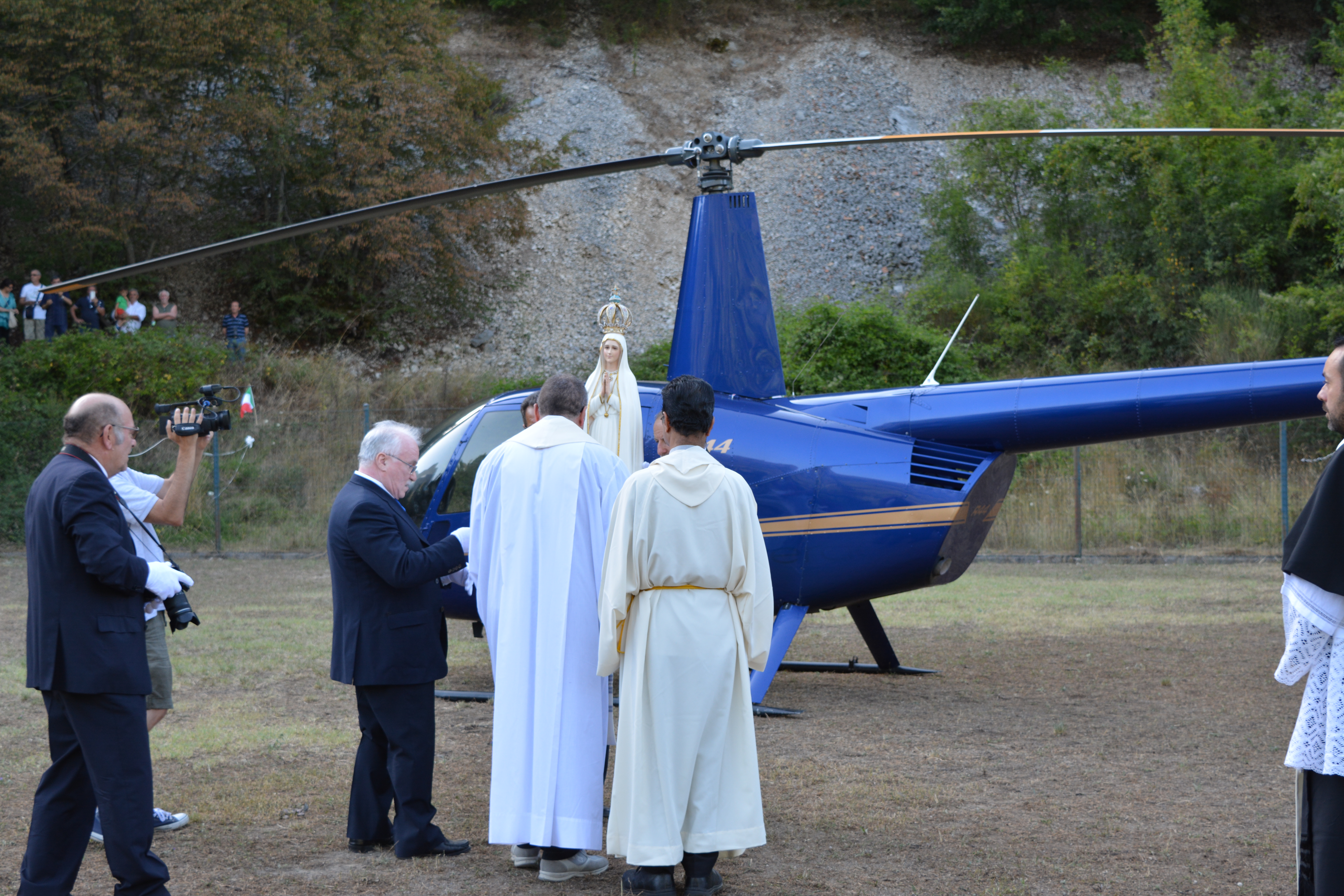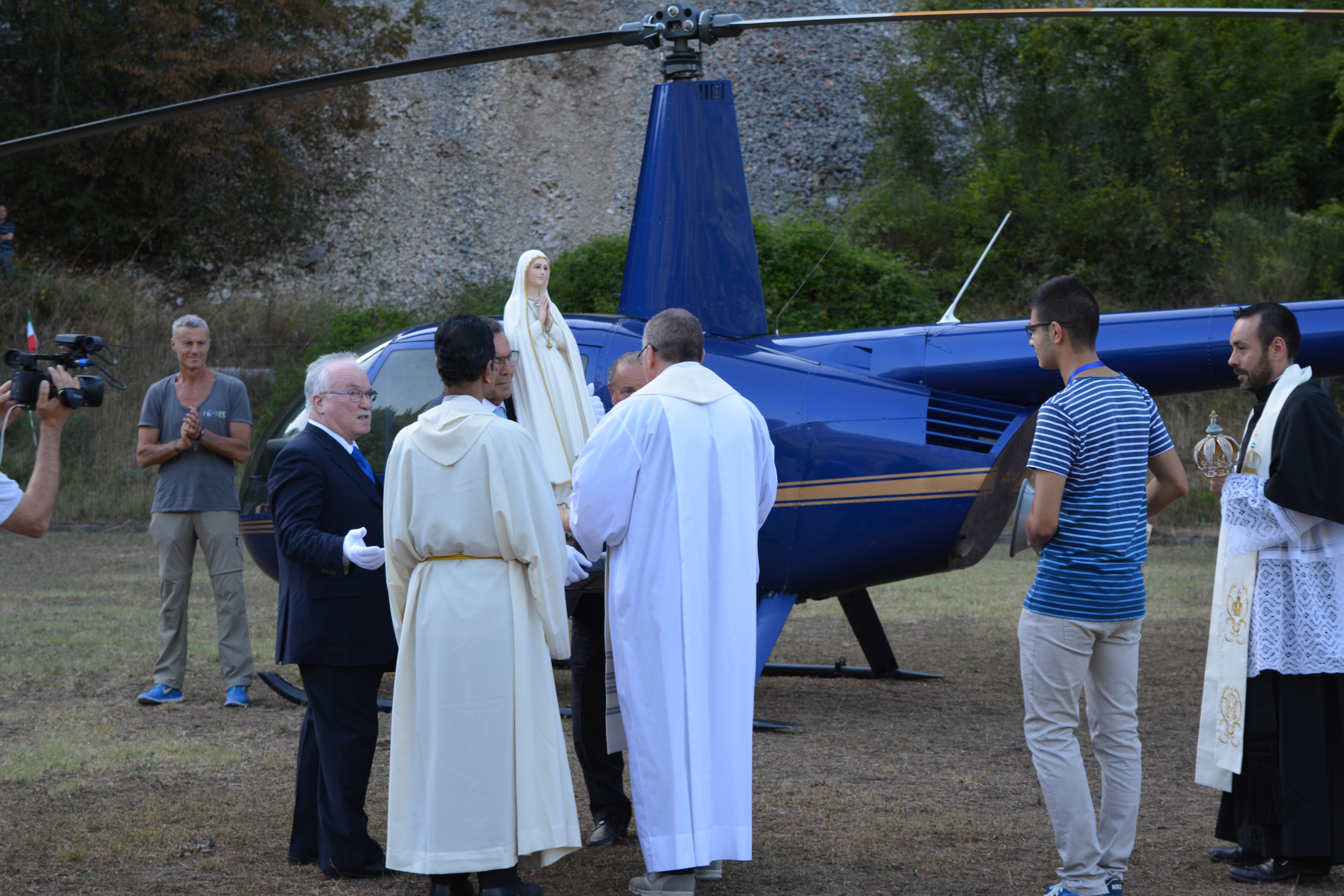 È arrivata in volo a Varco Sabino nel pomeriggio di martedì 9 agosto la Madonna di Fatima, per essere ospitata nella parrocchia di San Girolamo, dove rimarrà fino a sabato 13 agosto. Ad accogliere la Bianca Signora, oltre ai varcolani con il parroco e il sindaco, ai pellegrini, e alle autorità militari, c’era anche don Franco Angelucci, quale delegato del vescovo Domenico.