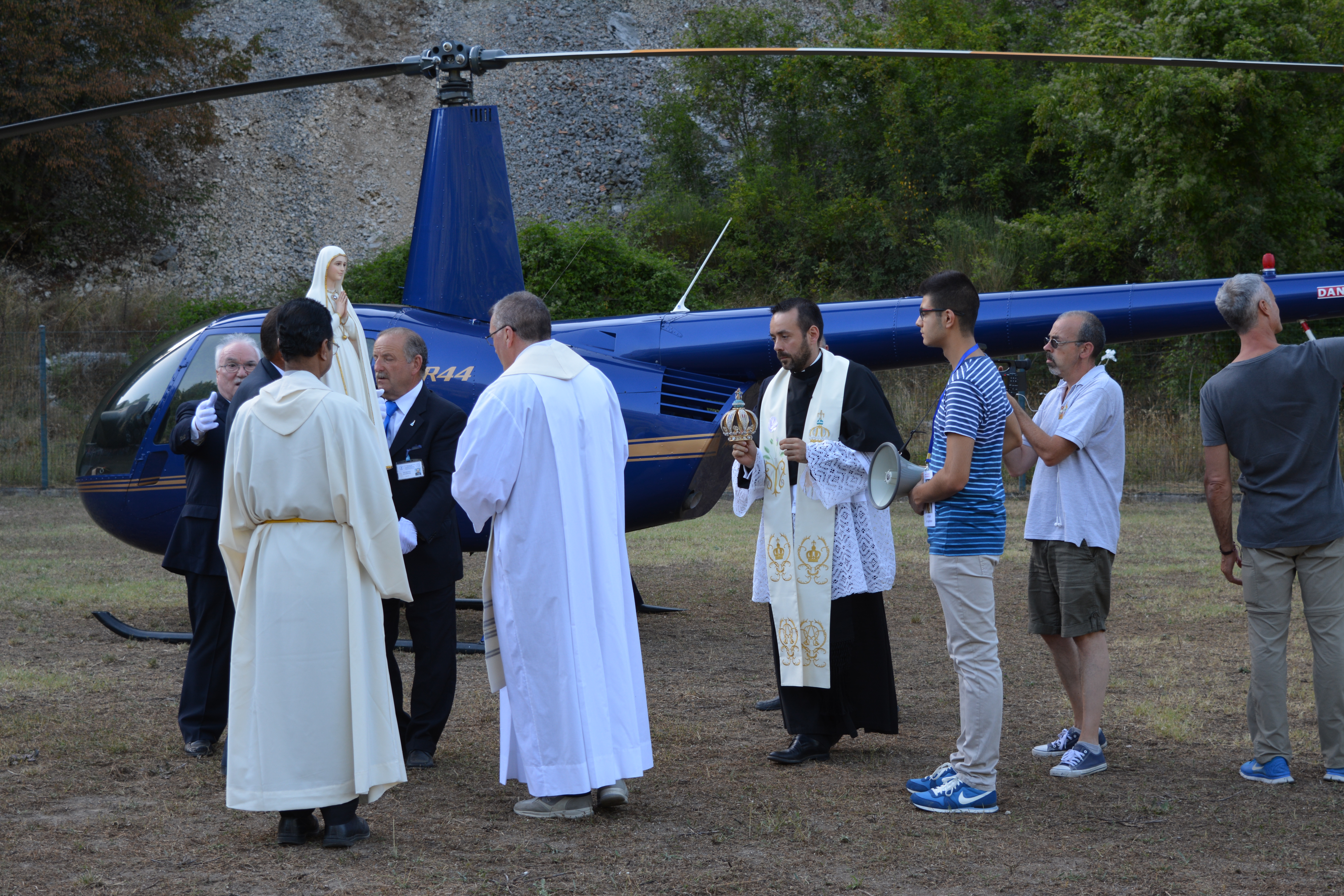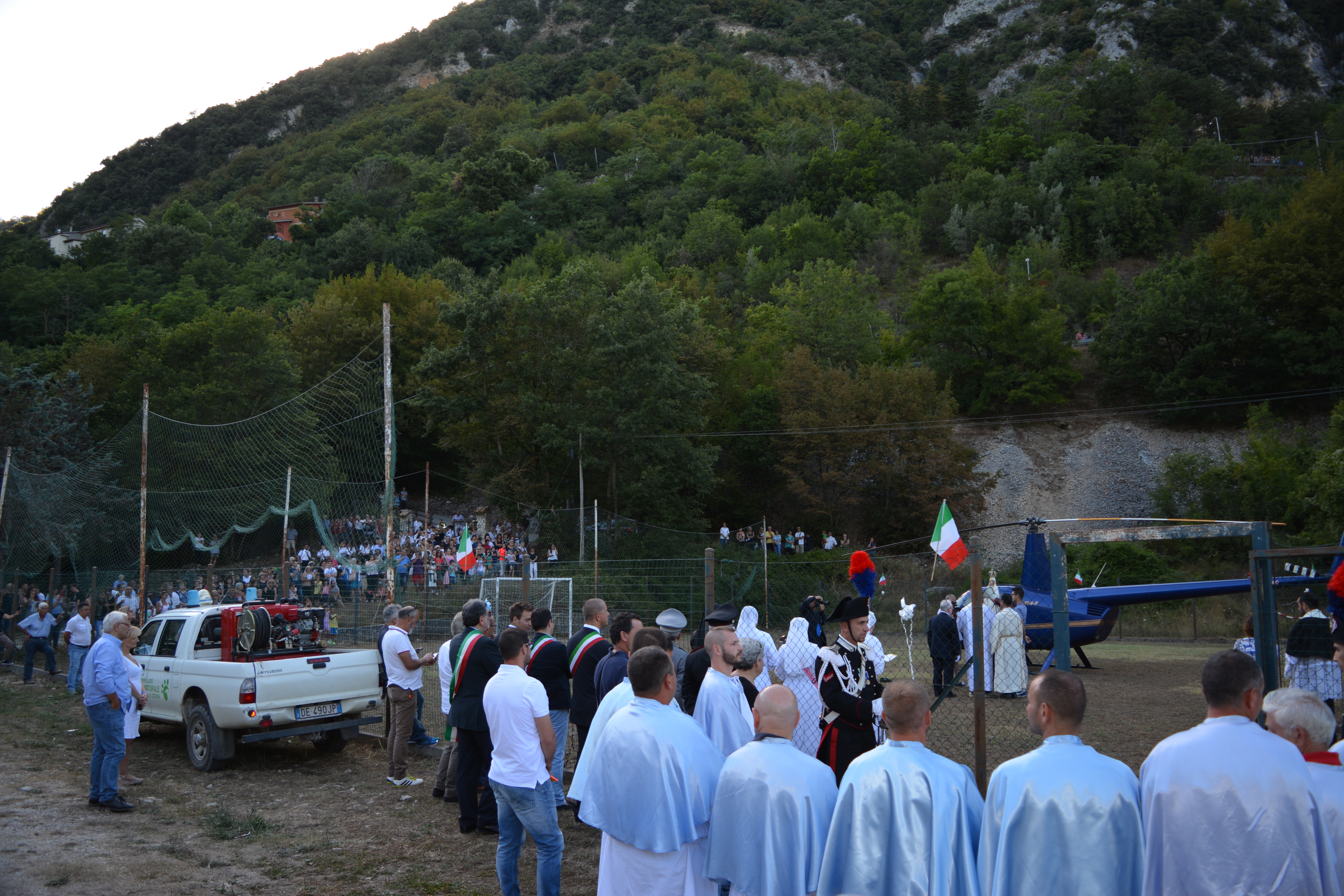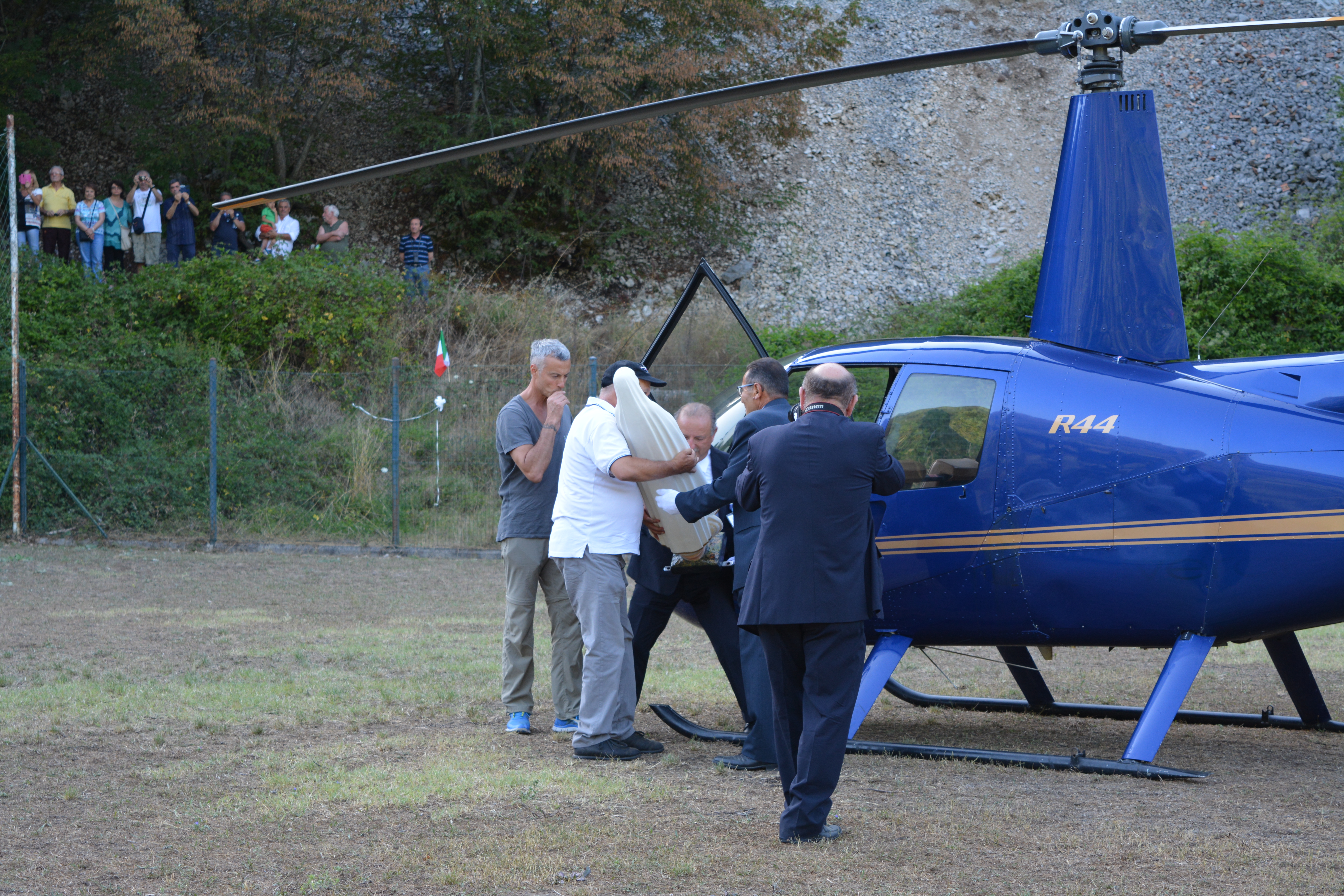 È arrivata in volo a Varco Sabino nel pomeriggio di martedì 9 agosto la Madonna di Fatima, per essere ospitata nella parrocchia di San Girolamo, dove rimarrà fino a sabato 13 agosto. Ad accogliere la Bianca Signora, oltre ai varcolani con il parroco e il sindaco, ai pellegrini, e alle autorità militari, c’era anche don Franco Angelucci, quale delegato del vescovo Domenico.
