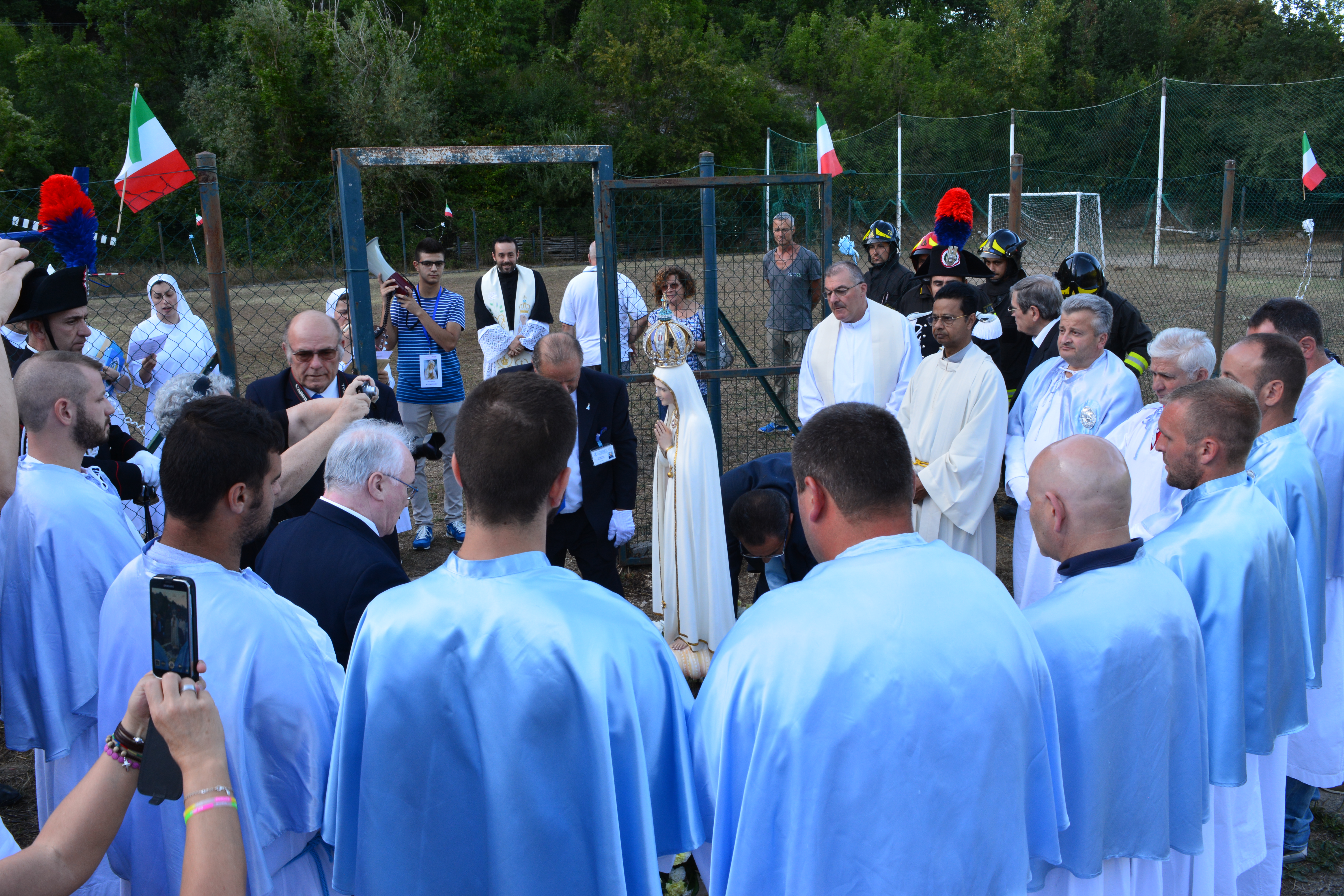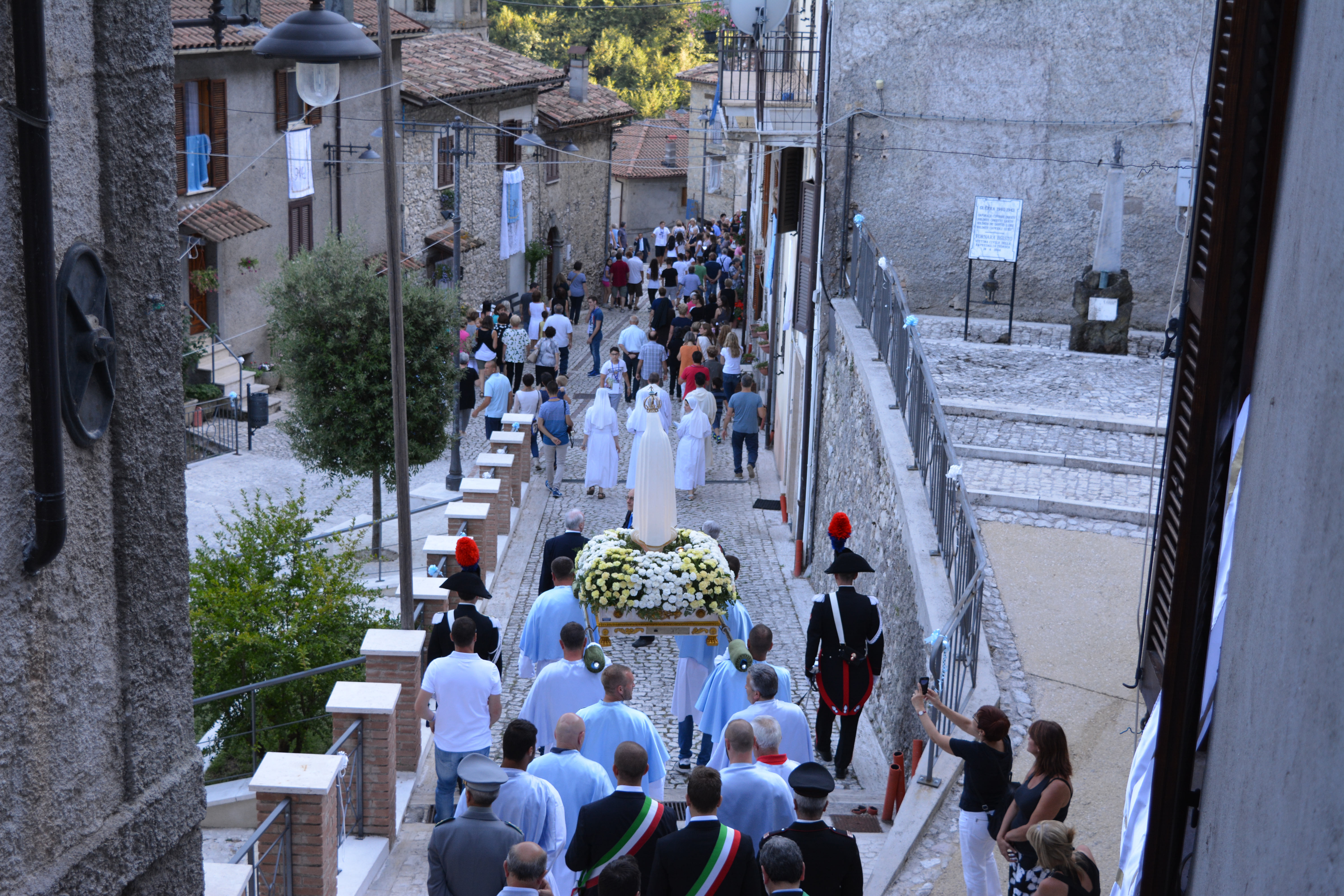 Da Varco Sabino, le Madonna pellegrina di Fatima verrà salutata da tanti pellegrini con il tradizionale gesto dei fazzoletti bianchi e al termine della solenne celebrazione e l’Atto di affidamento il giorno 13 agosto ripartirà per Longone Sabino, dove rimarrà dal 13 al 17 agosto.