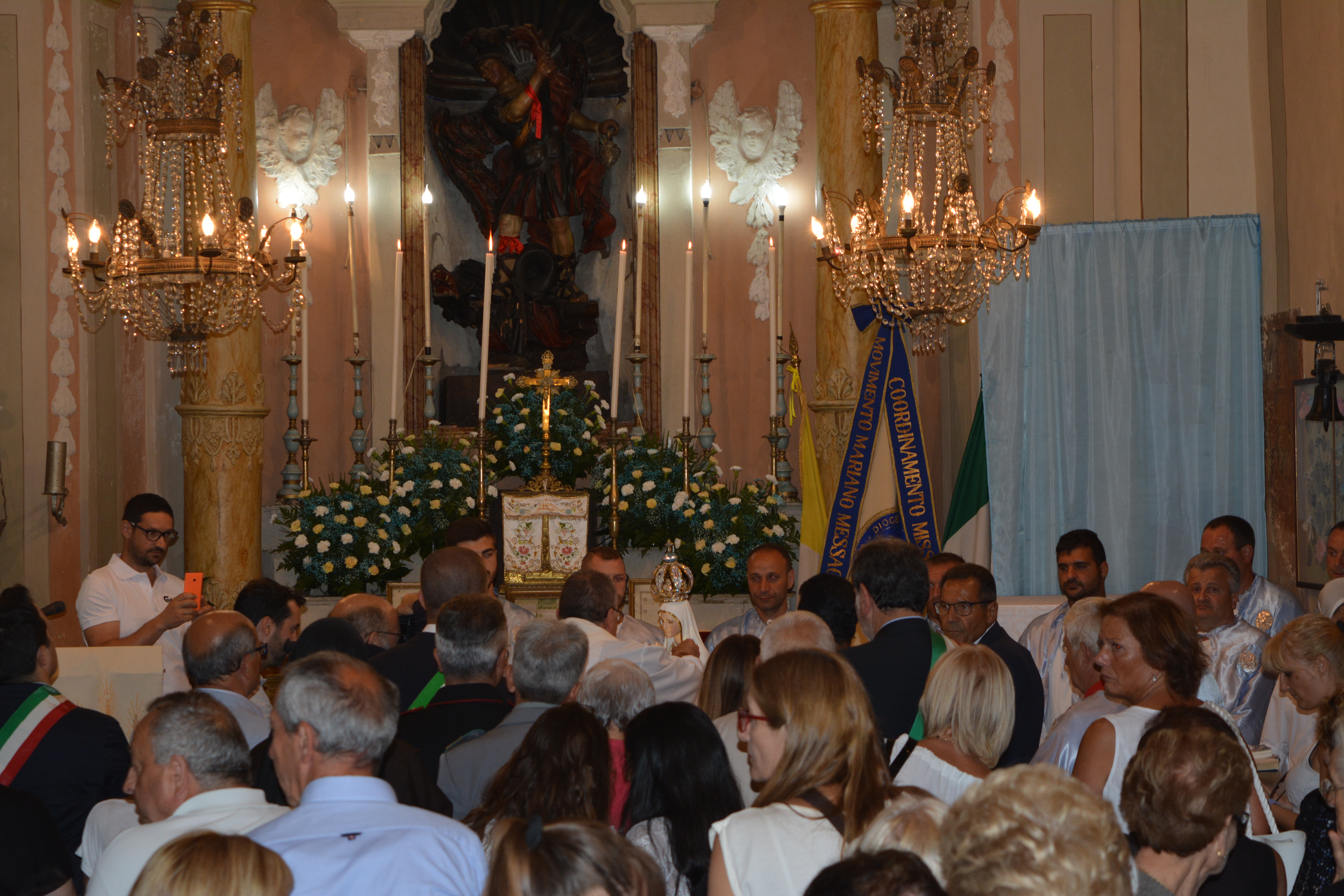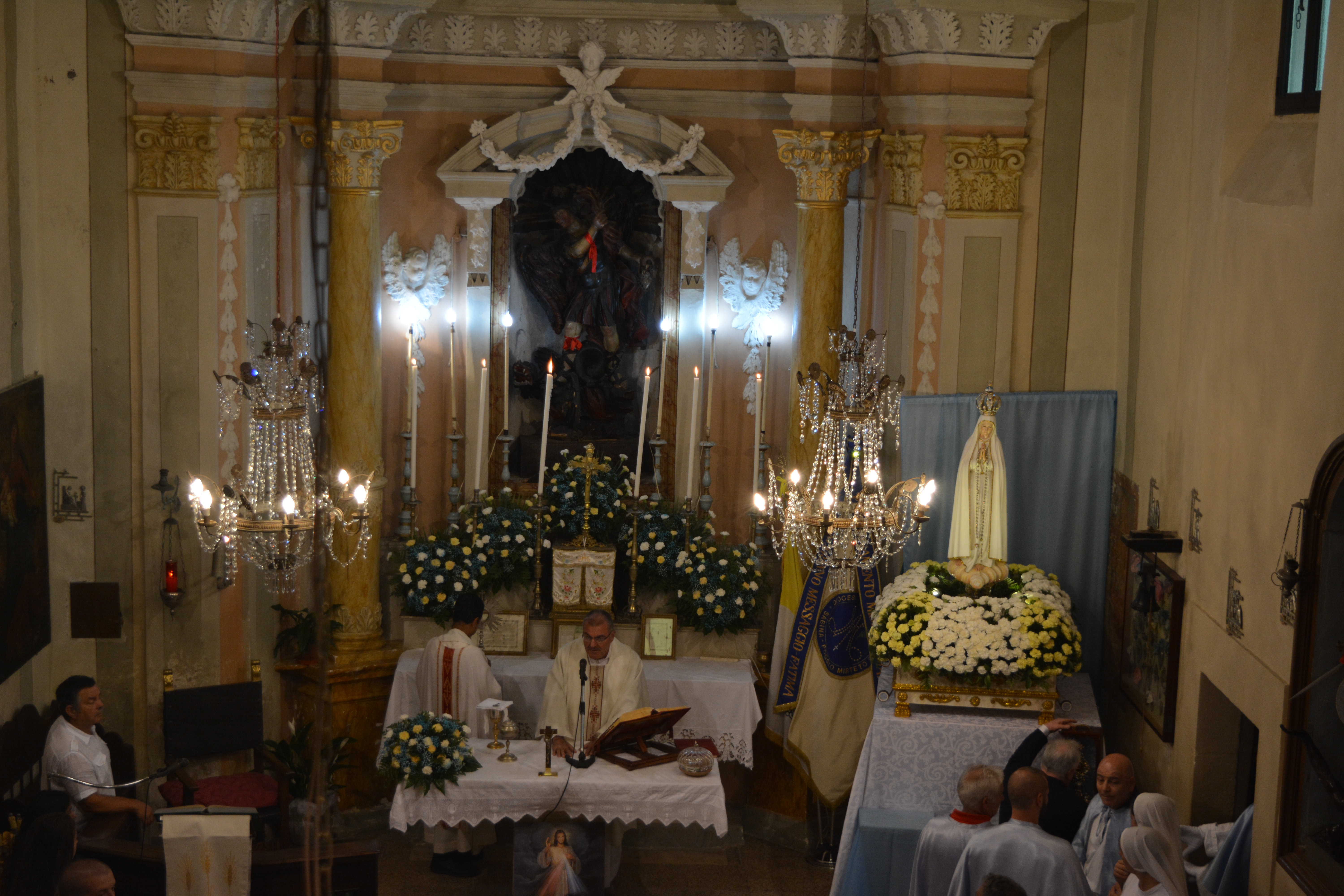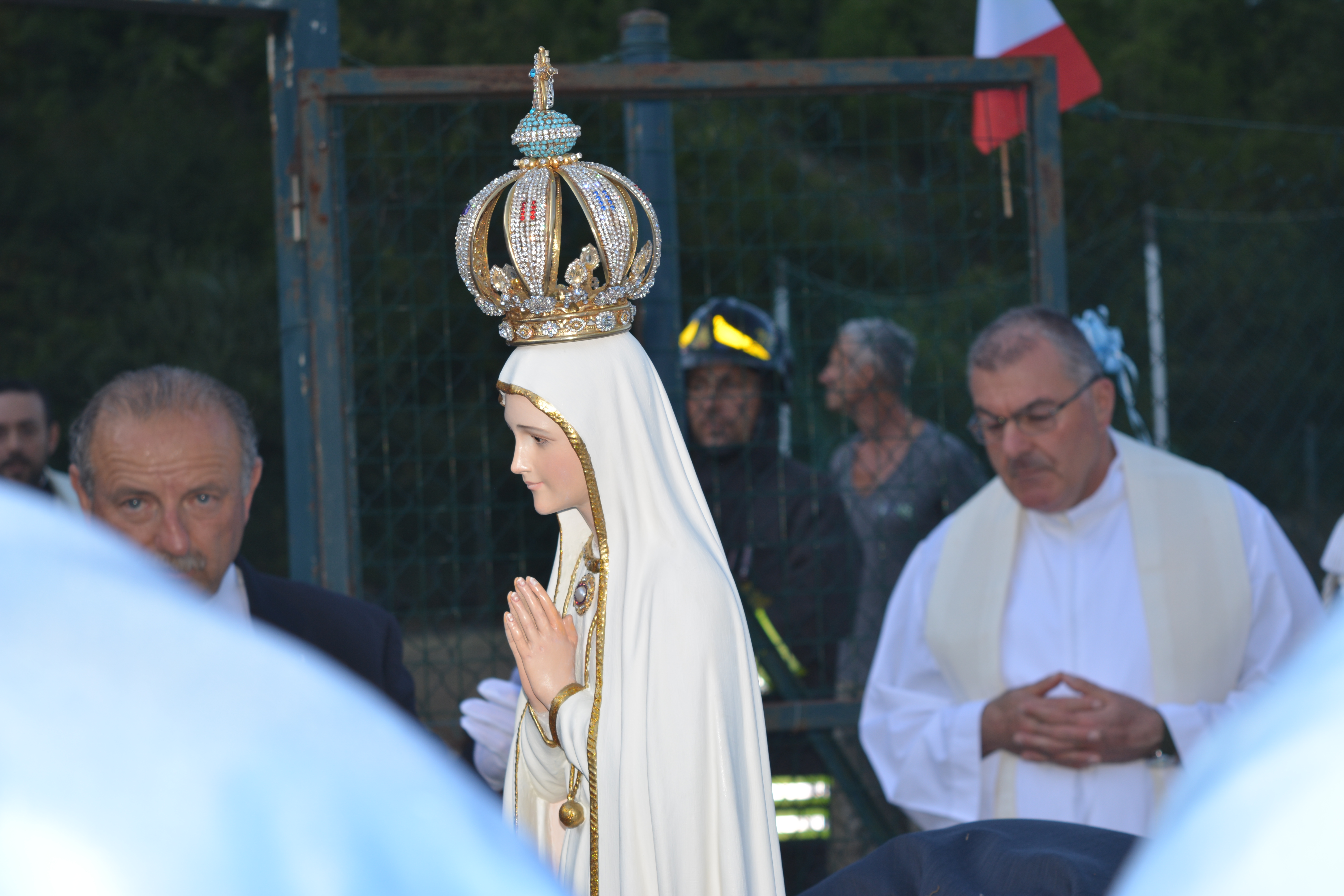 Giunta in piazzale Santa Maria Maddalena, la sacra immagine è stata accompagnata processionalmente presso la Chiesa parrocchiale dedicata a San Girolamo, nella quale è stata celebrata la messa, cui ha fatto seguito l’accensione della lampada e l’incensazione delle Sacre reliquie dei Beati Pastorelli Francesco e Giacinta Marto.