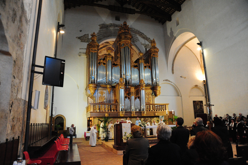 «Ci troviamo in questa chiesa grande, bella e ricca di storia, con le sue sofferenze del passato e il suo splendore nel presente. La chiesa di San Domenico: era un sogno di mons. Rinaldi concludere il suo servizio episcopale nella Chiesa di Rieti restituendo alla comunità cristiana la chiesa di San Domenico, che allora era in cattivissime condizioni. Era una scelta che contrastava con la volontà di qualcuno di cancellare questo monumento, questa chiesa in cui la comunità cristiana, dal 1200 in poi, ha vissuto, operato, annunciato la parola del Signore. Viviamo questo anniversario della morte di mons. Rinaldi, in questa chiesa recuperata e restituita al culto, sapendo che questo edificio materiale serve per costruire una Chiesa spirituale, che in qualche modo faccia di ciascuno di noi tempio vivo del Signore».