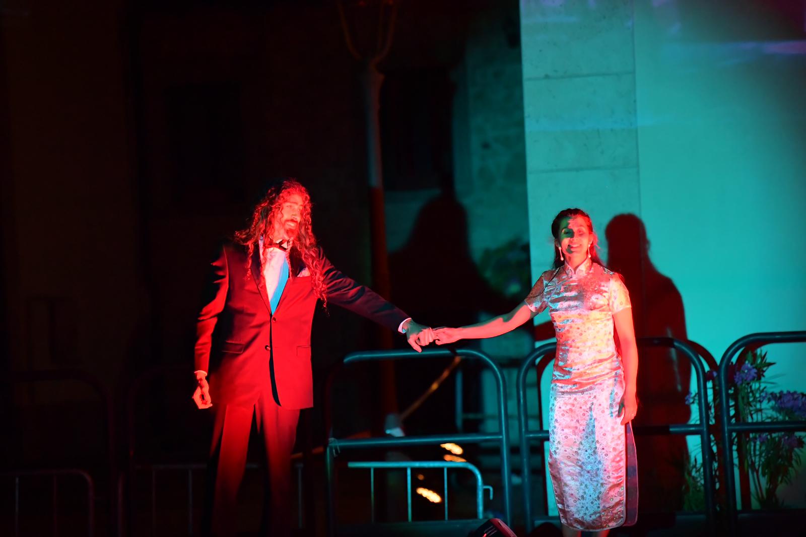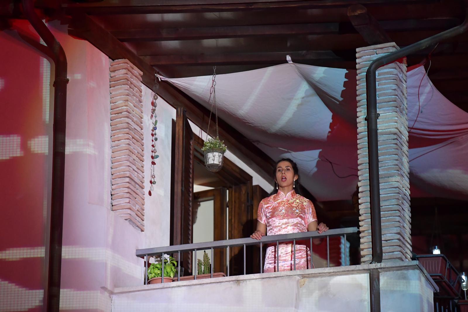 La vita e le opere di Mozart e Haendel, Verdi e Donizetti, Puccini e Bellini sono scivolate via tra la narrazione di Zsofia Guly e Irene Rossi e le immagini danzanti sui palazzi, mentre Natalia Quiroga Romero e Gustavo Vita duettavano sulle arie più celebri dei compositori fino all’apparizione della soprano da un balcone della piazza, per l’emozionante esecuzione della Casta diva di Bellini.