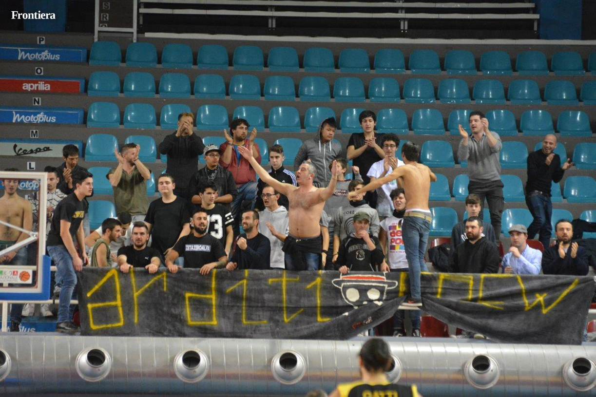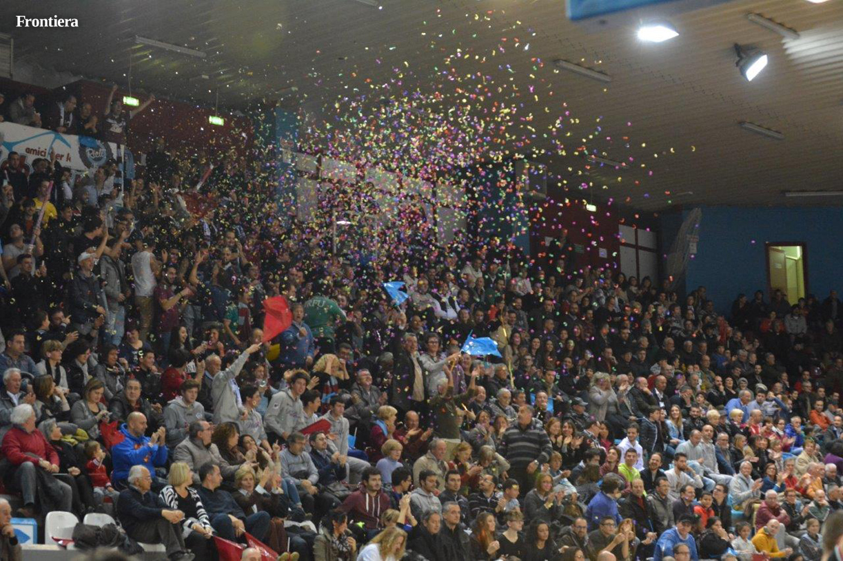 Le tifoserie organizzate hanno predisposto una coloratissima coreografia con bandierine amarantocelesti che il pubblico ha potuto sventolare fin dalla presentazione, riempendo il palas di una coinvolgente atmosfera.