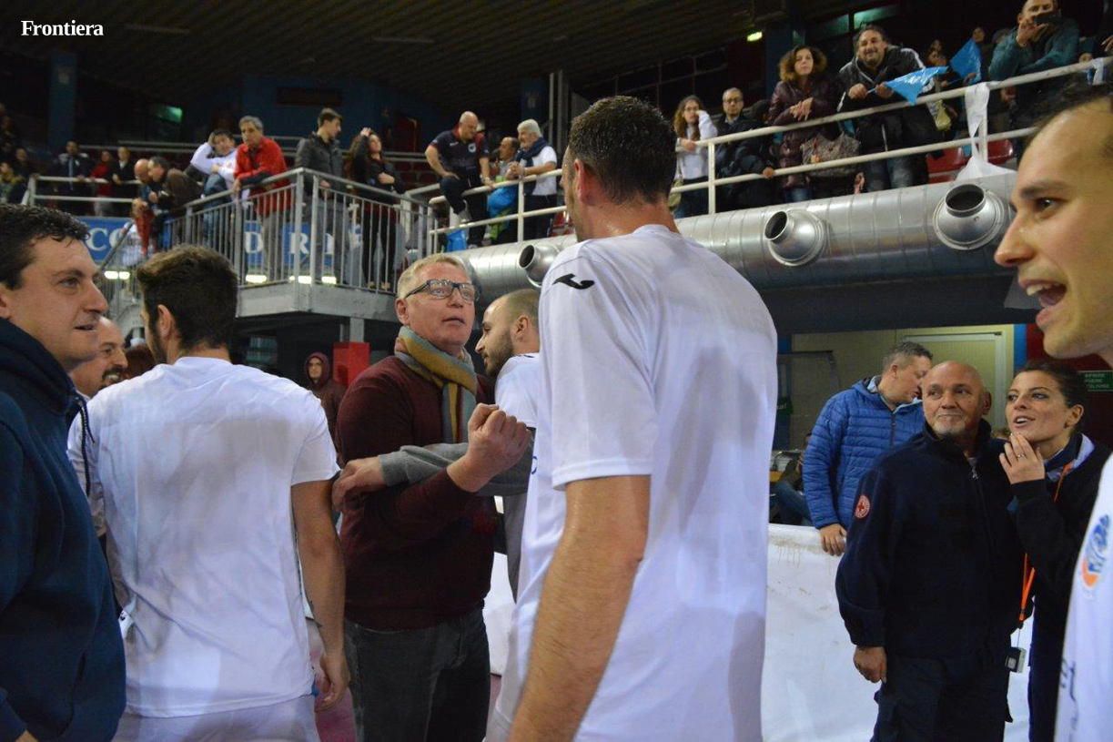 All’ingresso in sala stampa di coach Nunzi, gli addetti ai lavori, convinti dalla prova della squadra amarantoceleste, gli tributano un applauso spontaneo.