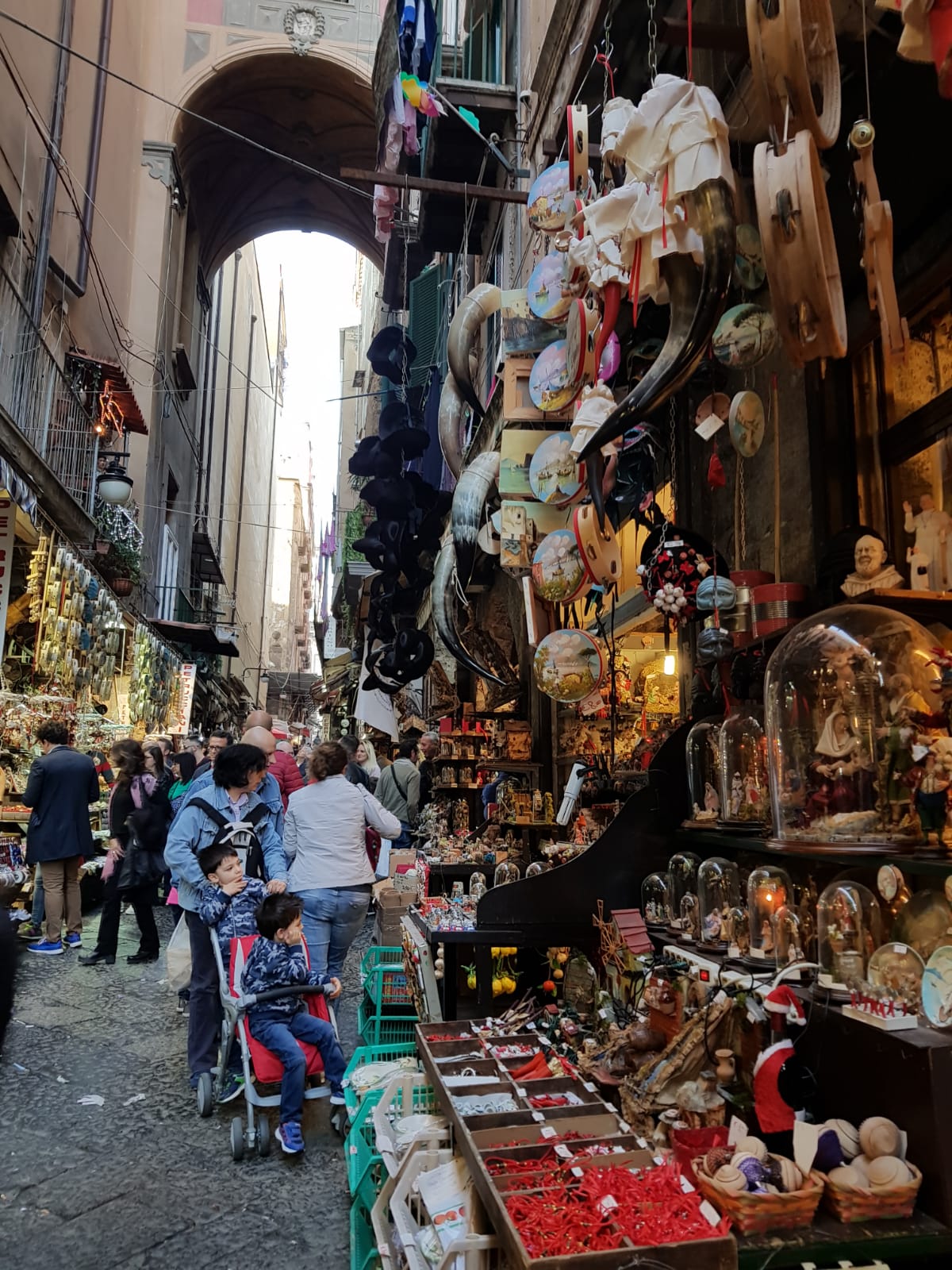 Dopo la celebrazione liturgica, immancabile la visita all’adiacente via San Gregorio Armeno, caratteristica stradina che ospita le botteghe artigianali dei presepisti napoletani che realizzano interamente a mano i pastori del settecento napoletano.